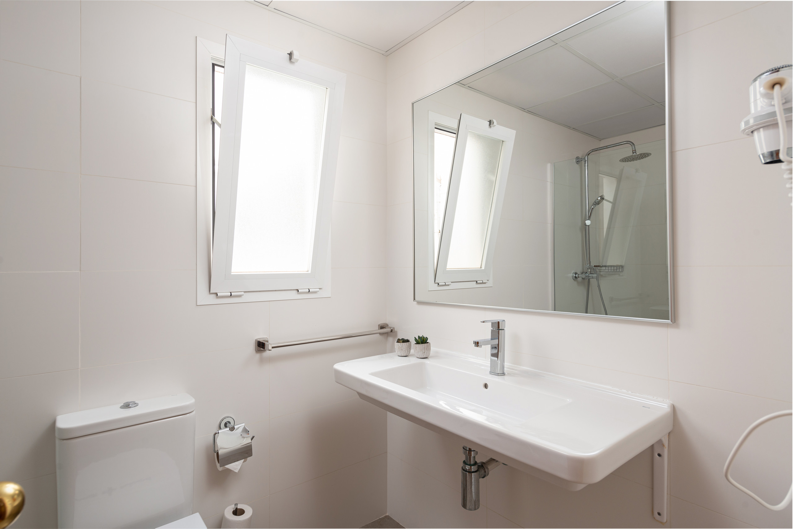 The apartment has 1 bedroom with 2 single beds and a living/dining room with 2 sofa beds, ideal for families or friends looking for quiet accommodation. There is also a private bathroom with shower, a kitchen with fridge, microwave and kitchen accessories, TV, as well as heating and air conditioning. It features views of the city