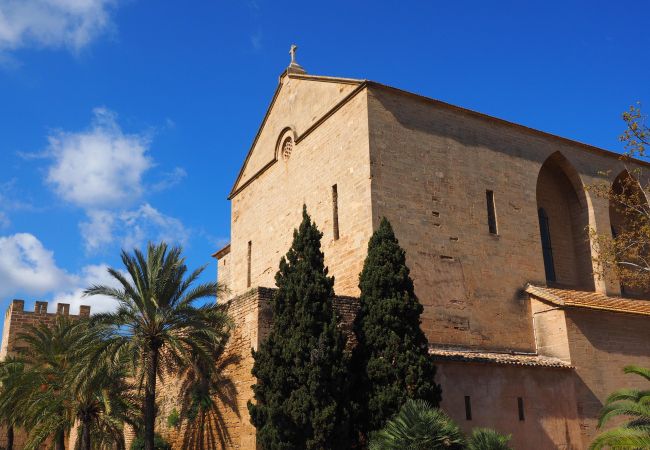 The apartment is located in a building in the heart of the medieval town of Alcudia. The beach of Puerto de Alcudia is 5 minutes away by car.