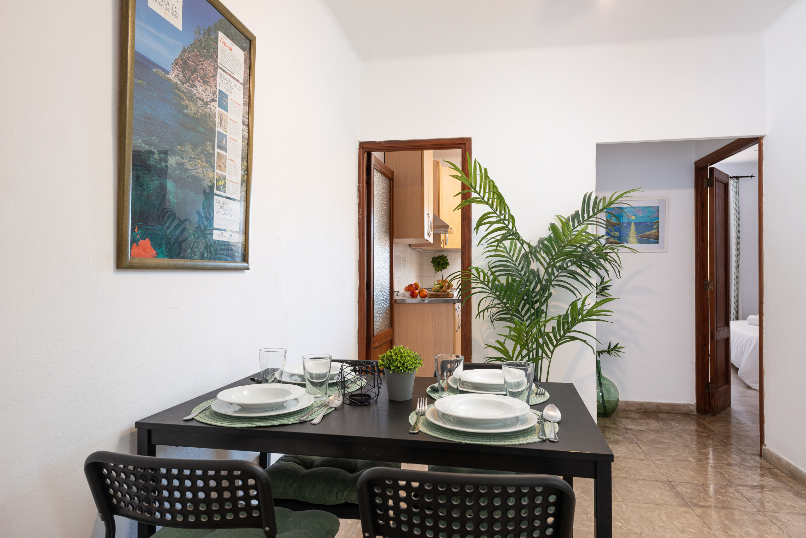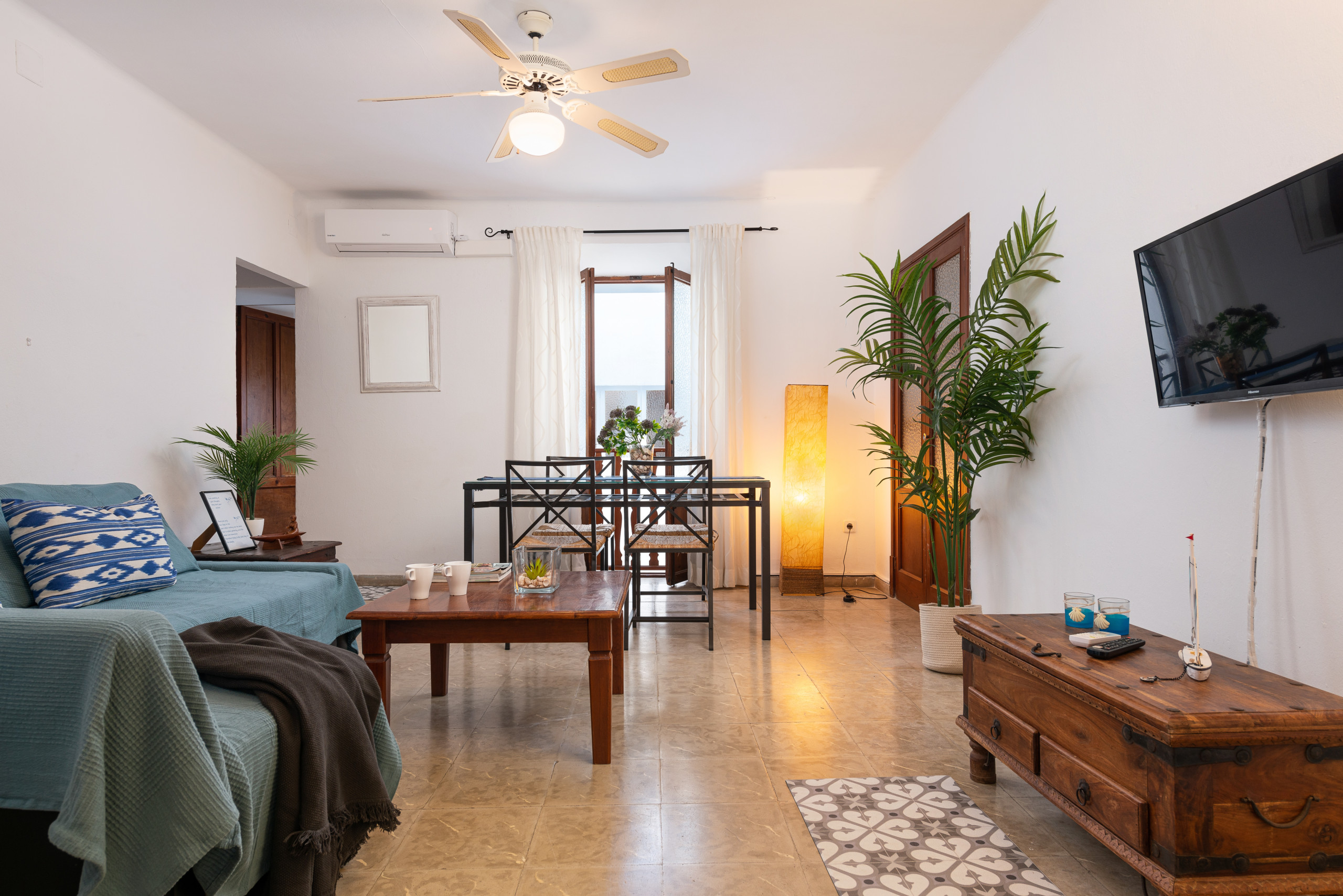 The apartment is located in a building in the heart of the medieval town of Alcudia. The beach of Puerto de Alcudia is 5 minutes away by car.