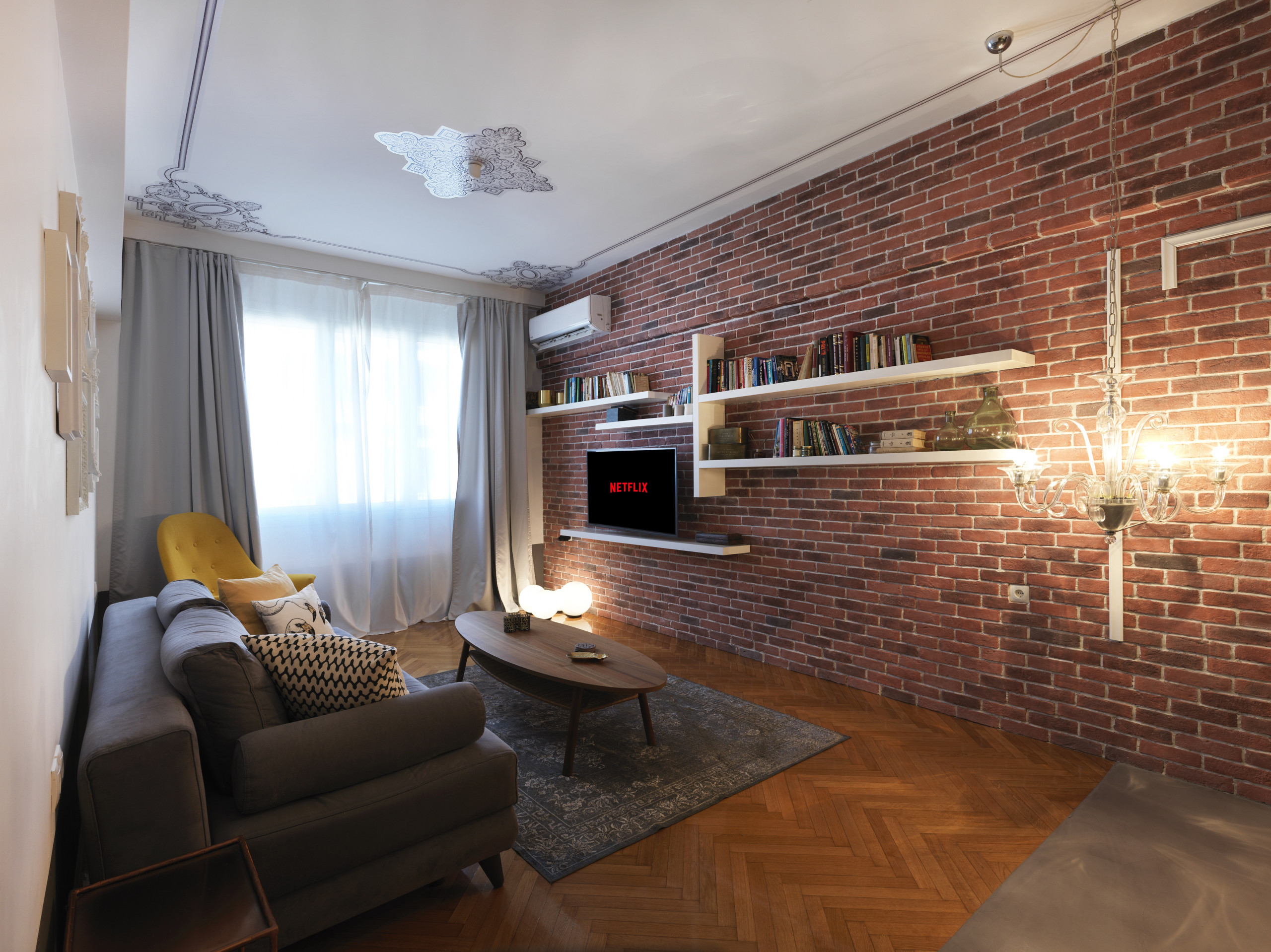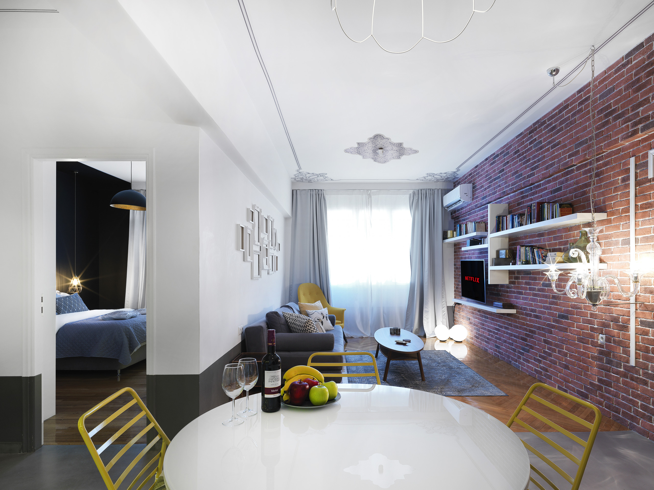 This is a classic Athenian apartment, set in the centre of the city. It has been fully renovated and turned into a stylish, modern living space. It has a simple yet luxurious feel.