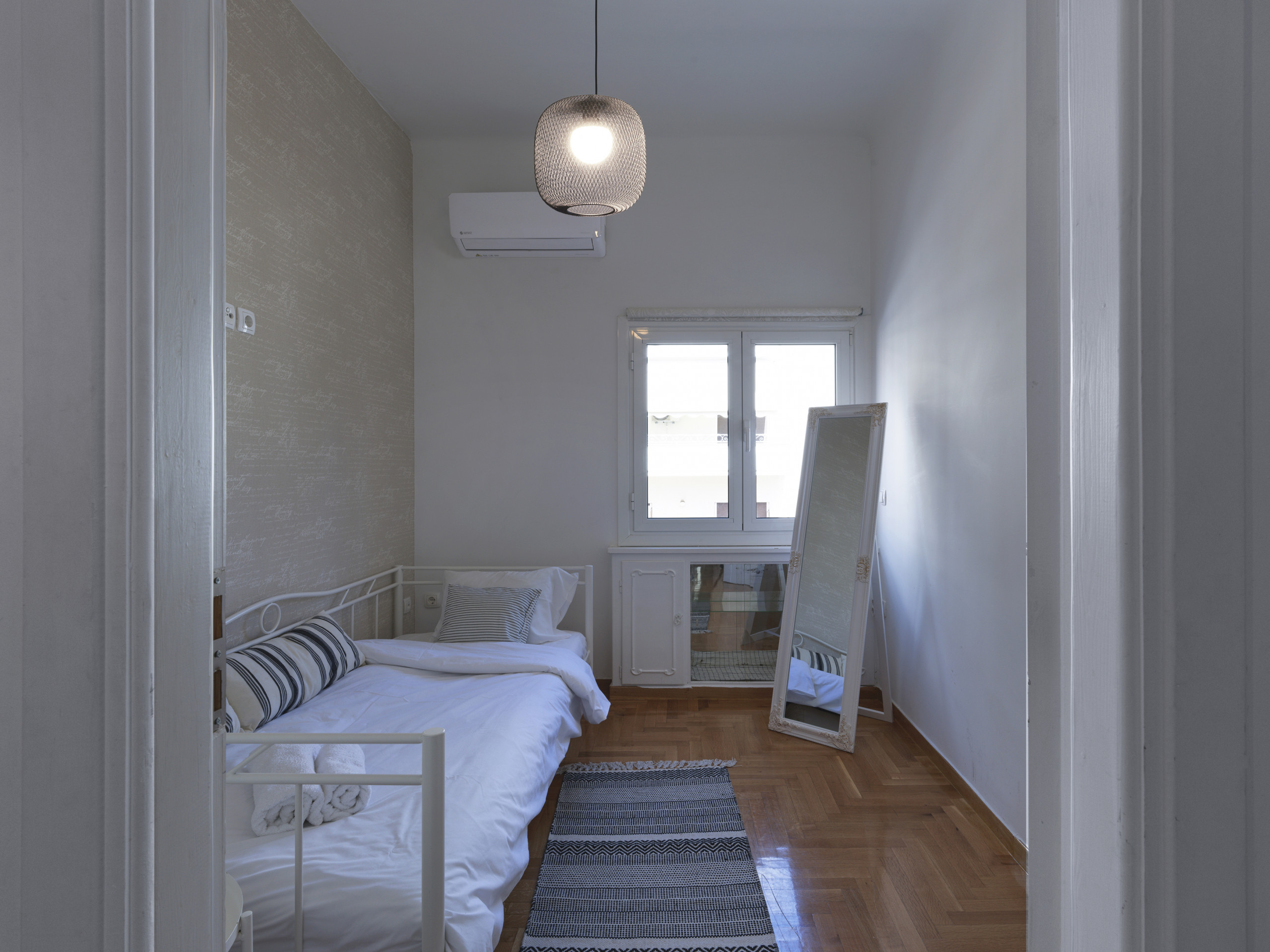 The apartment in Athens has 2 bedrooms and has capacity for 5 people.