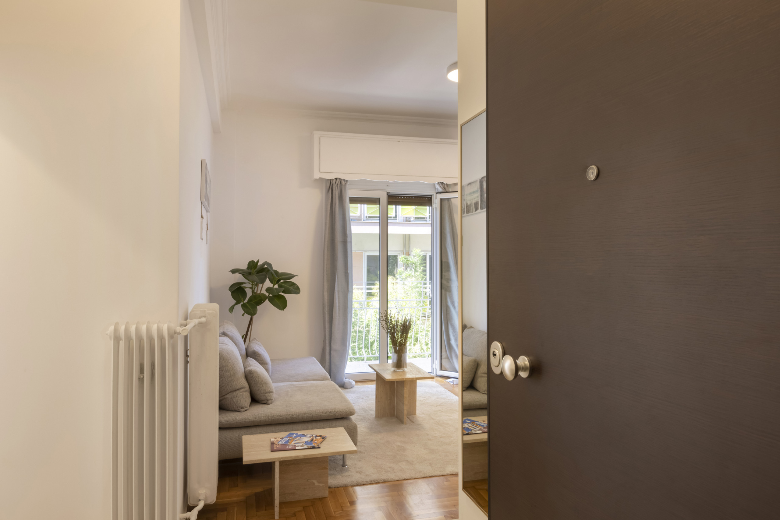 A super convenient studio, with contemporary aesthetics and all one needs at a quiet yet super prime location in Kolonaki. A hidden gem secluded but in the center of everything. If you enjoy fashionable shopping, fine dining, little delis and bakeries, fancy bars, sightseeing, parks, or all the above, and you also enjoy having them at a walking distance, this is a fantastic and strategic modern nest. Kolonaki still holds its glory as one of the top aristocratic neighbourhoods of Athens. Everything in here is new, has a character and is waiting for you.