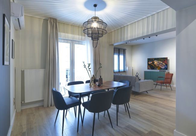 Indulge in the epitome of urban luxury with this two-bedroom apartment situated in the heart of historic Athens. Unwind in heavenly comfortable beds, pamper yourself in two dazzling bathrooms, and create culinary delights in a brand-new kitchen. The dining room offers a refined space for shared meals. The living room beckons for relaxation, adorned with beautiful artwork on subtly colored walls. With all major attractions, transport hubs, and essential amenities at your doorstep, this residence is a rare gem. The sophisticated interior decor, crafted with high-quality materials, offers a haven of luxurious serenity amid the vibrant city buzz. The subtle color palette with vibrant splashes creates an ambiance that elevates the senses. This is more than an apartment; it's a rare key to an effortless and memorable Athenian experience.