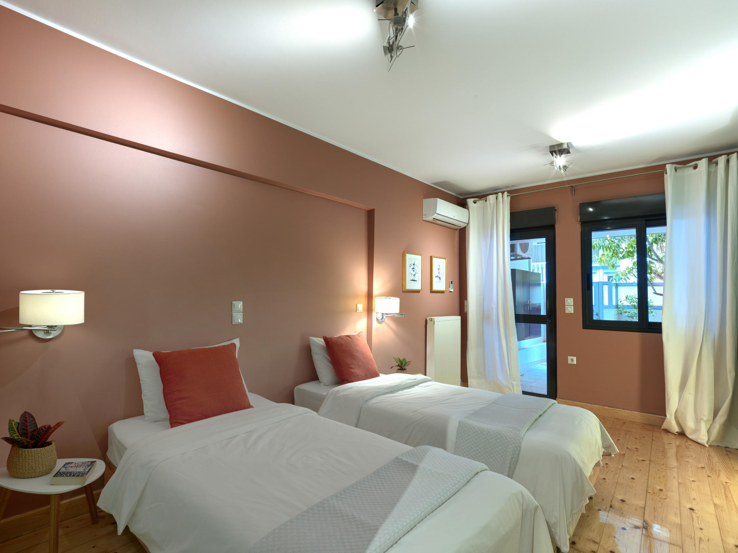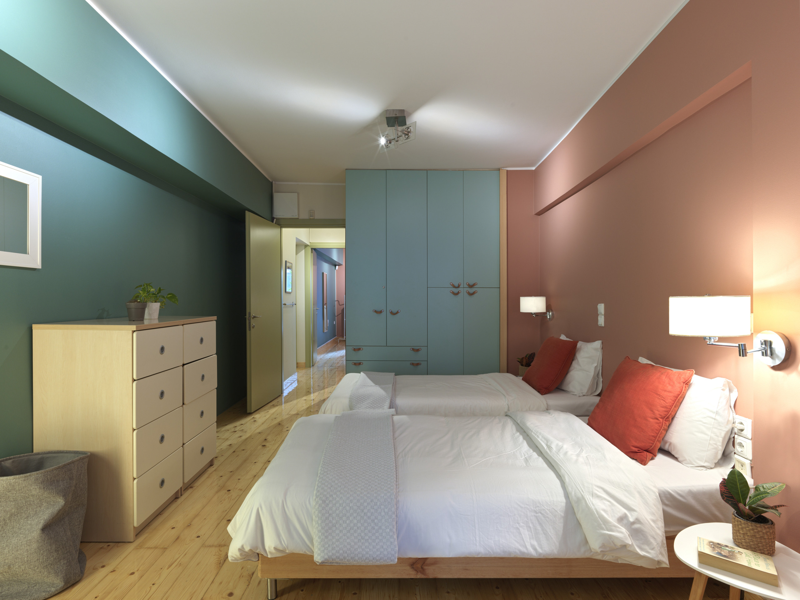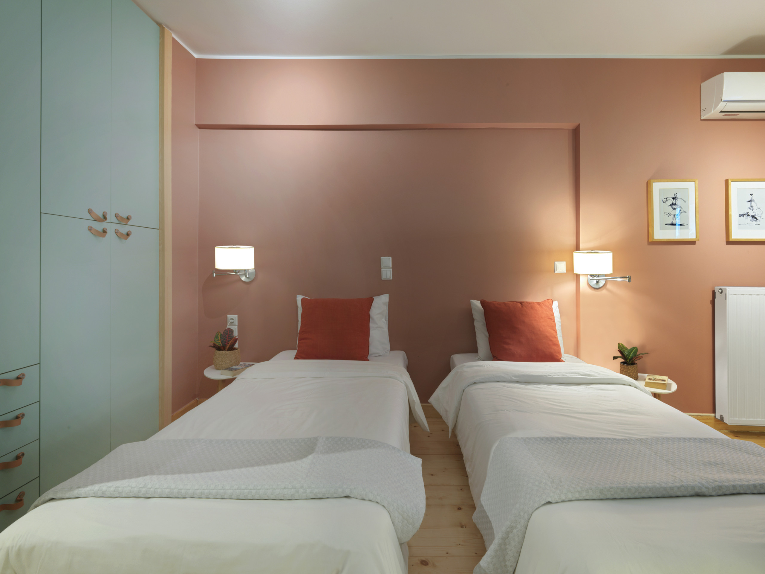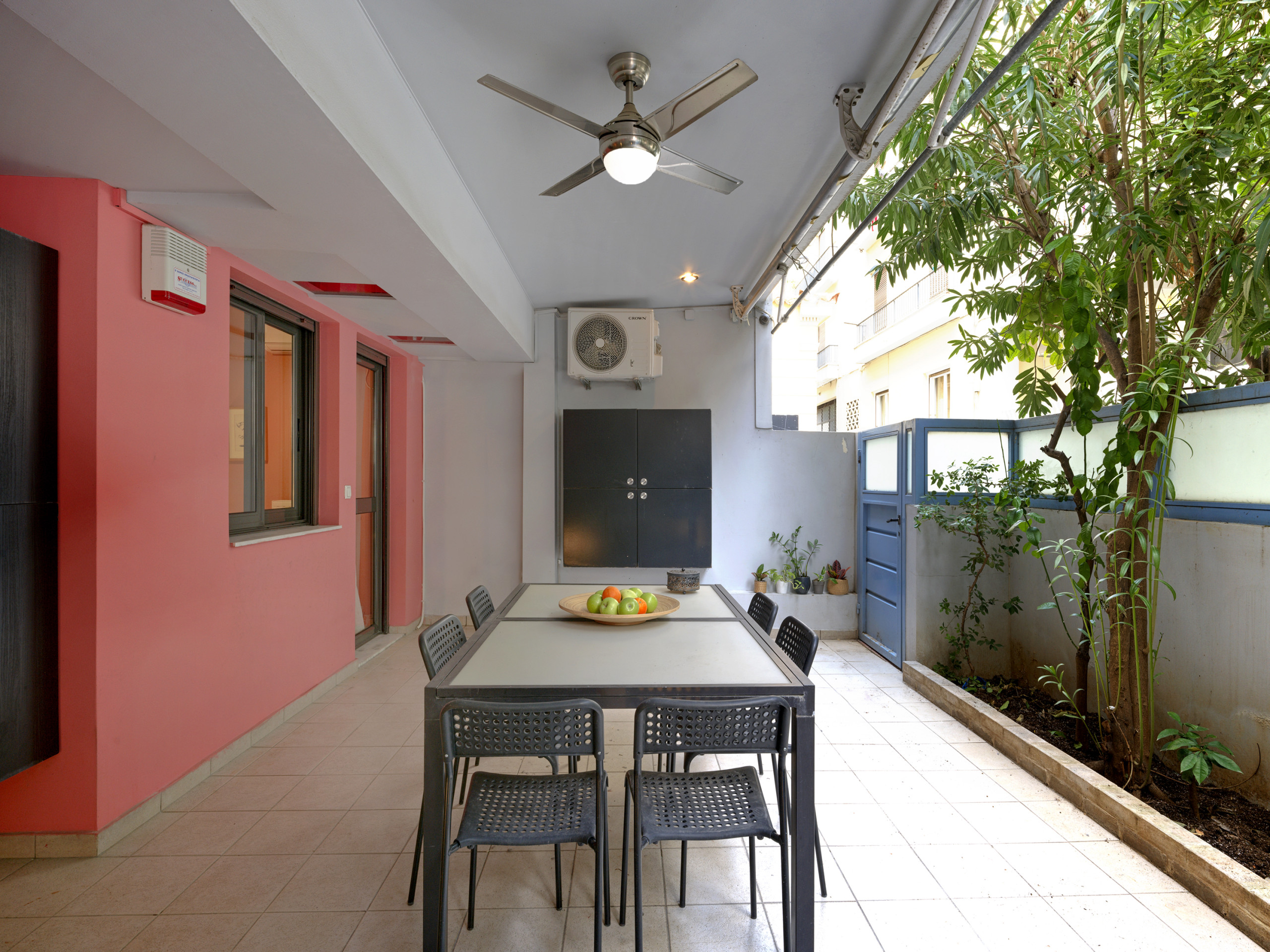 An apartment in a 2-floor classical Athenian building with a backyard, including 3 other apartments, offers different and affordable choices of accommodation for a family, a group of friends, couples, anyone who wants to be together but also have the privacy of your own home. Located in an area that makes everything easy to see and do. 5’ from the Metro, 1’ from the Tram, and with all the major monuments and sites at close proximity. An upcoming neighbourhood. Definitely worth a visit!