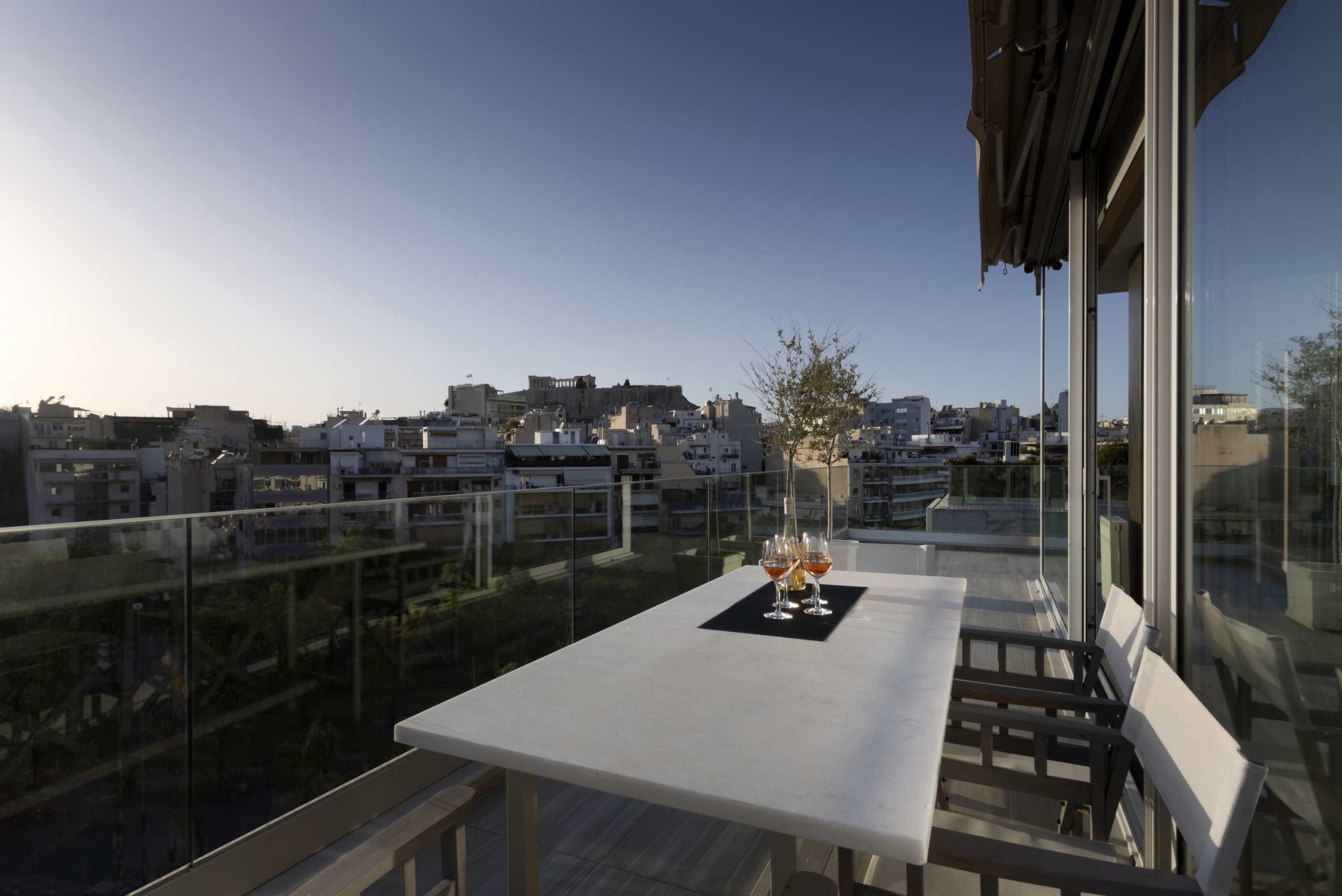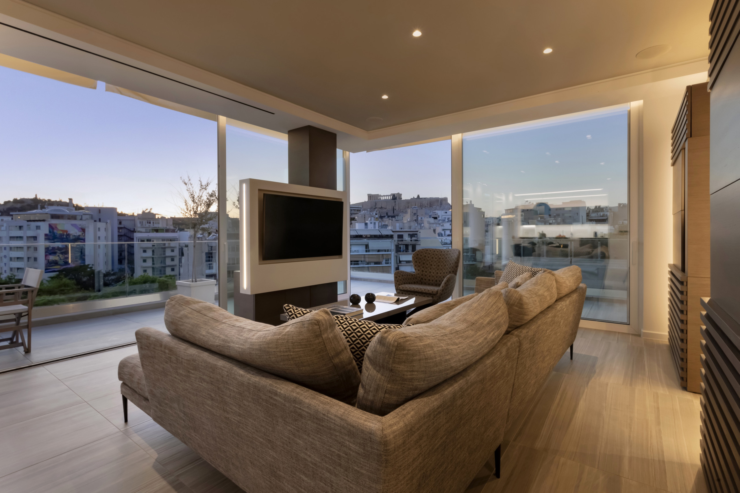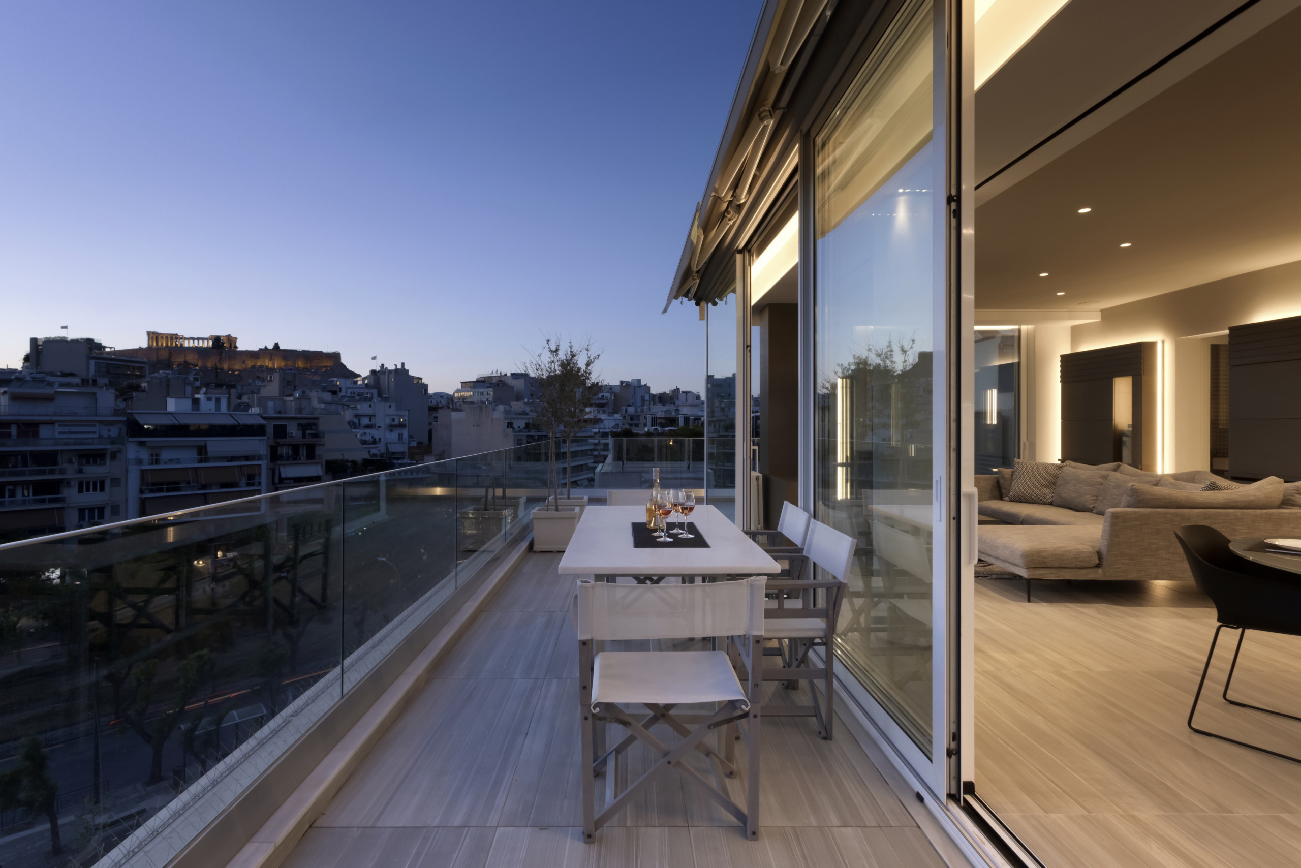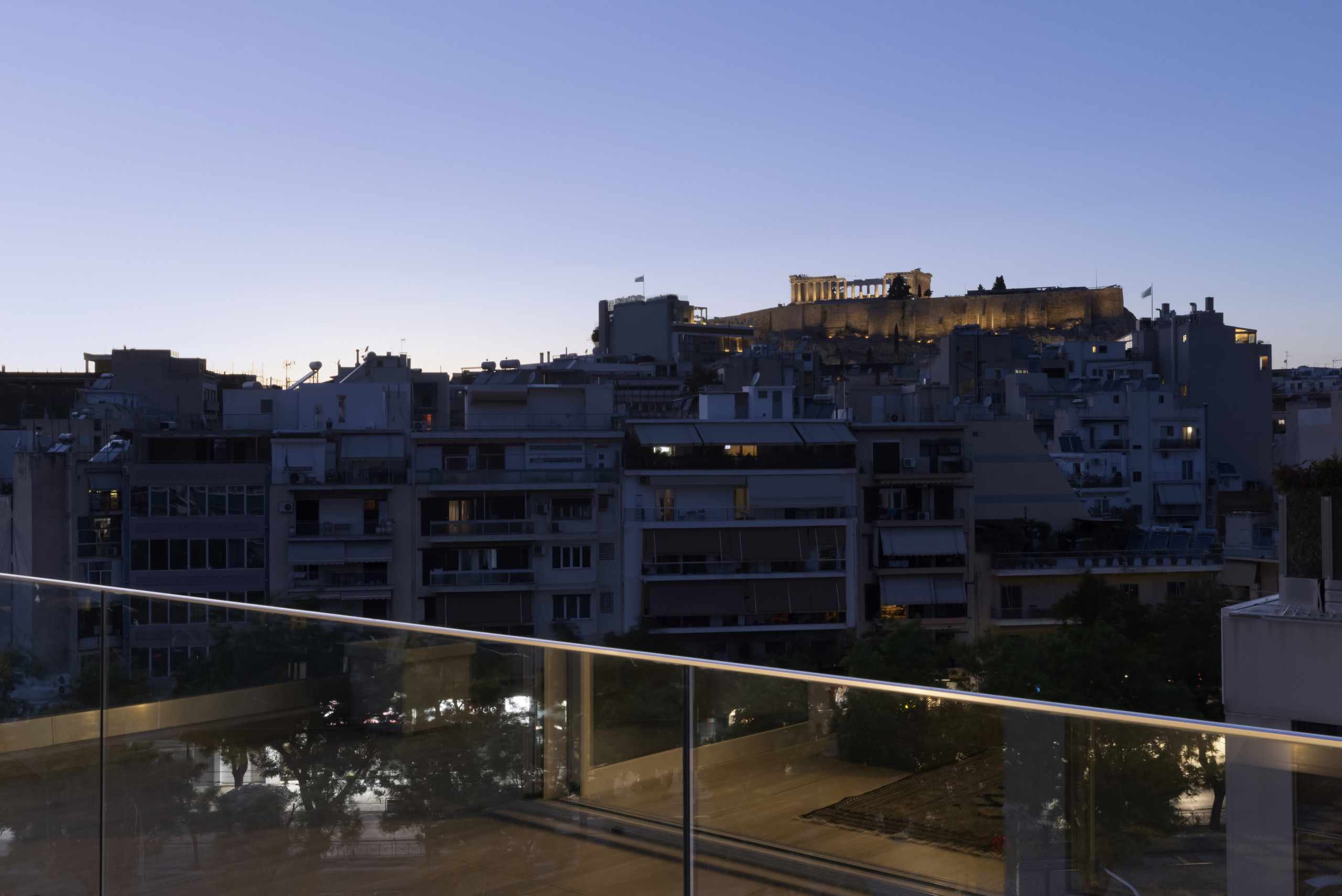 Experience Athens from this über-luxurious, spacious, and sun-filled 2-bedroom penthouse with breathtaking, unobstructed views of the Acropolis and the city skyline. Spending time on the wrap-around veranda, soaking in the sunsets, enjoying the view from the living area, or hosting a BBQ in style.