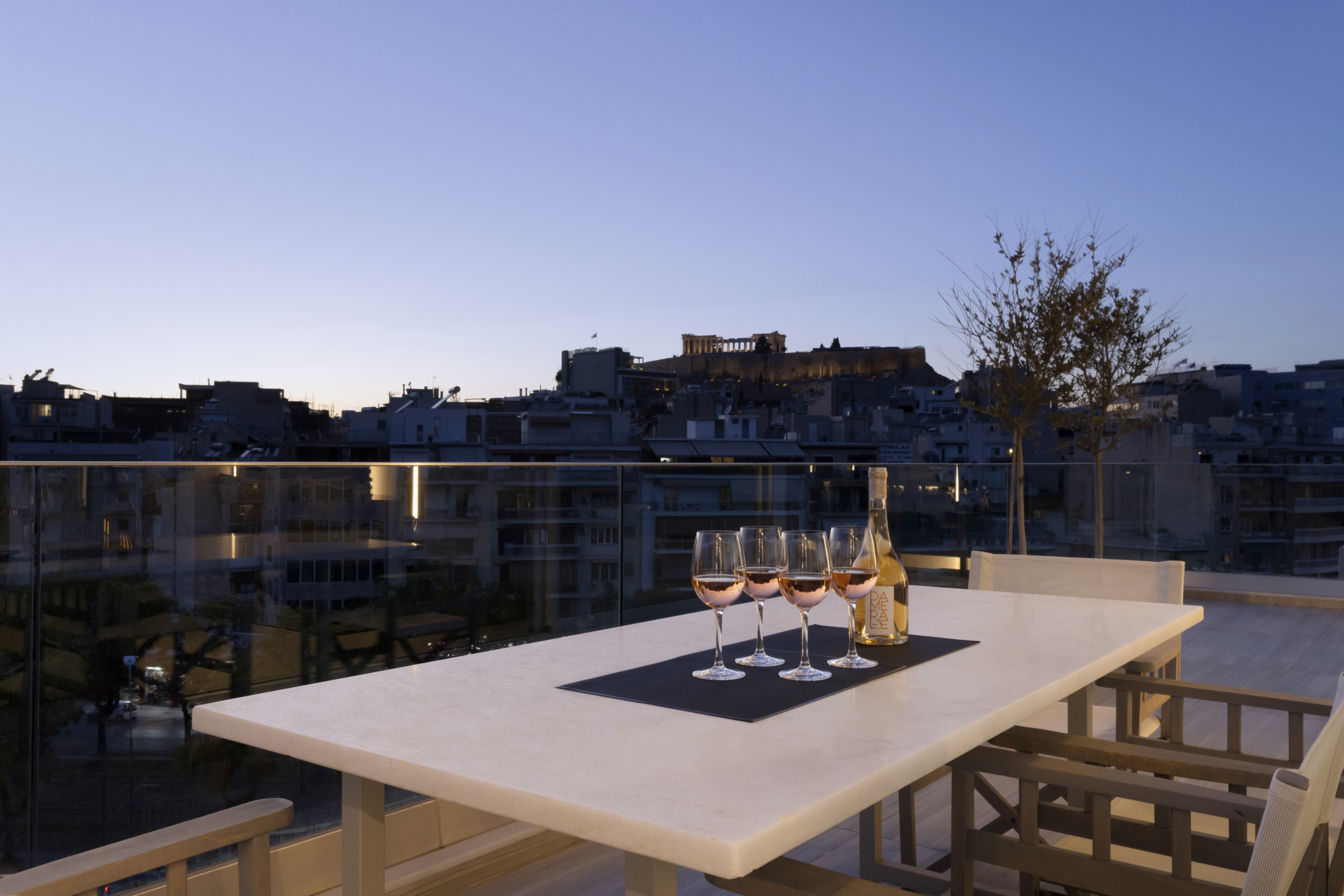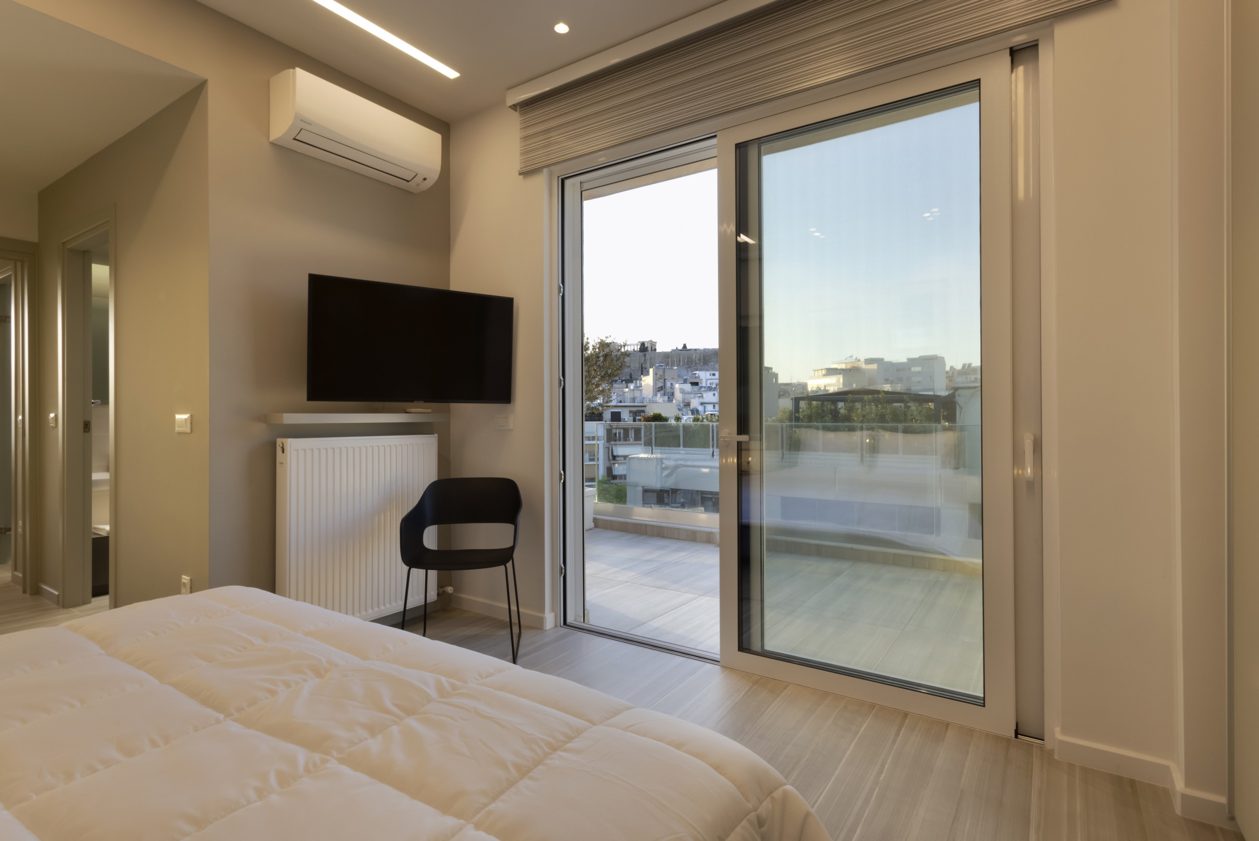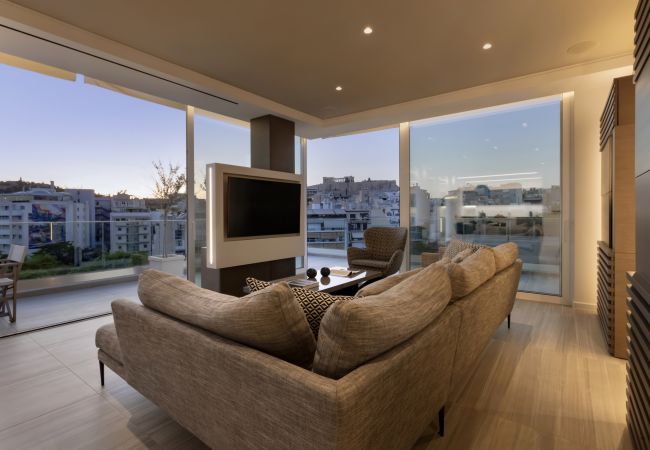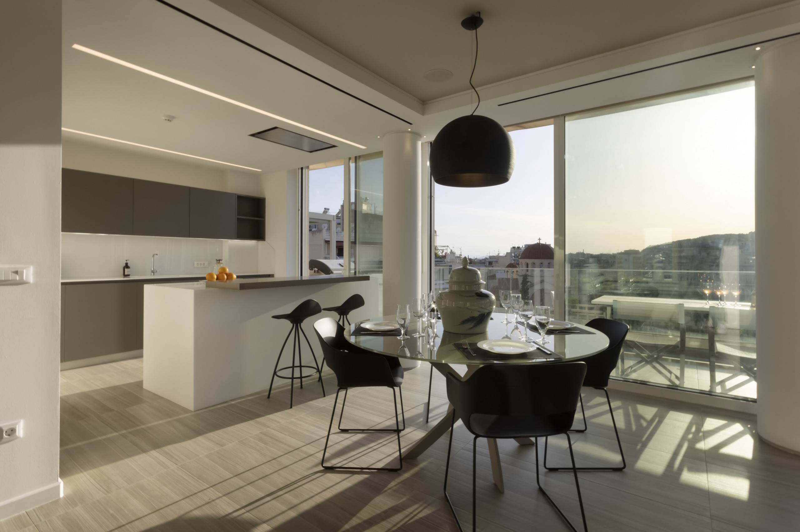 Experience Athens from this über-luxurious, spacious, and sun-filled 2-bedroom penthouse with breathtaking, unobstructed views of the Acropolis and the city skyline. Spending time on the wrap-around veranda, soaking in the sunsets, enjoying the view from the living area, or hosting a BBQ in style.