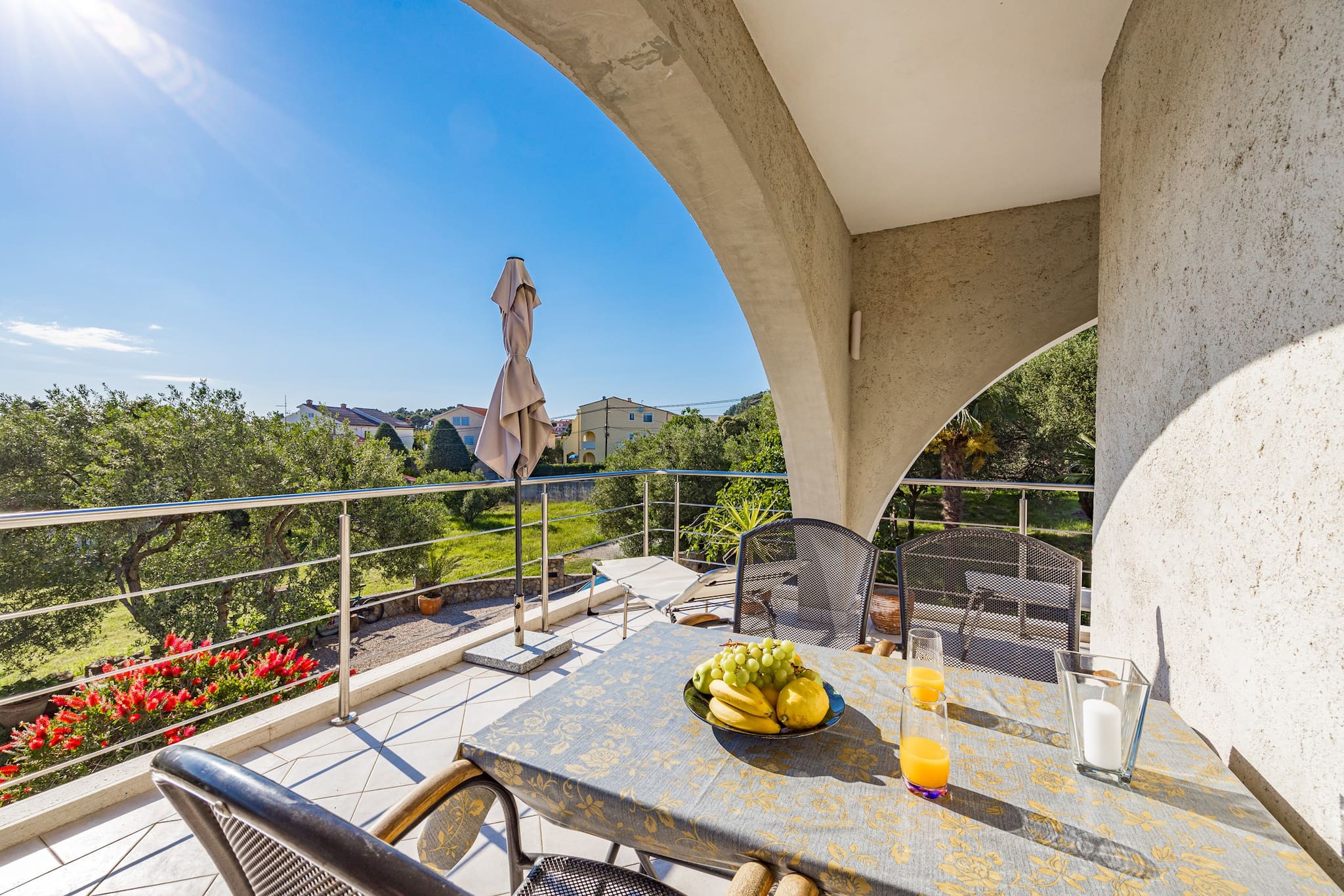 A spacious terrace with a wonderful sea view is perfect for enjoying your morning coffe in shade, or simply resting and reading a book while enjoying the refreshing summer breeze.