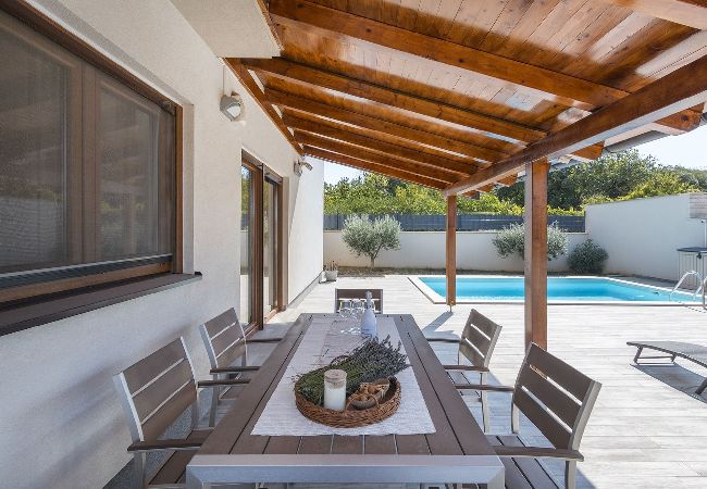 Kitchen is fully equipped. Guests can dine inside the house or on the lovely terrace next to the pool.