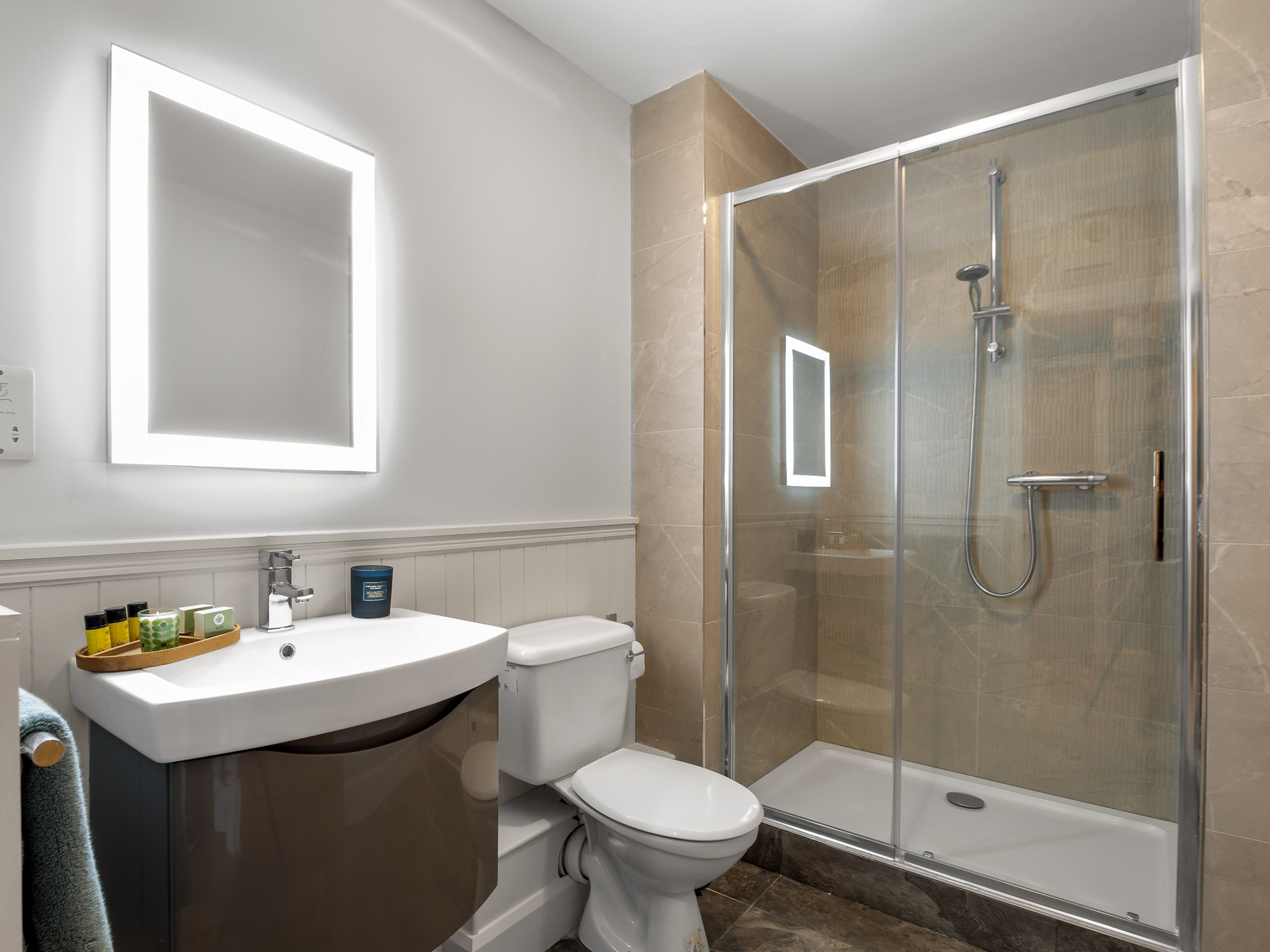 Upstairs, you’ll find two comfortable double bedrooms, both en-suites for added privacy and ease. A separate WC is located on the ground floor for convenience.