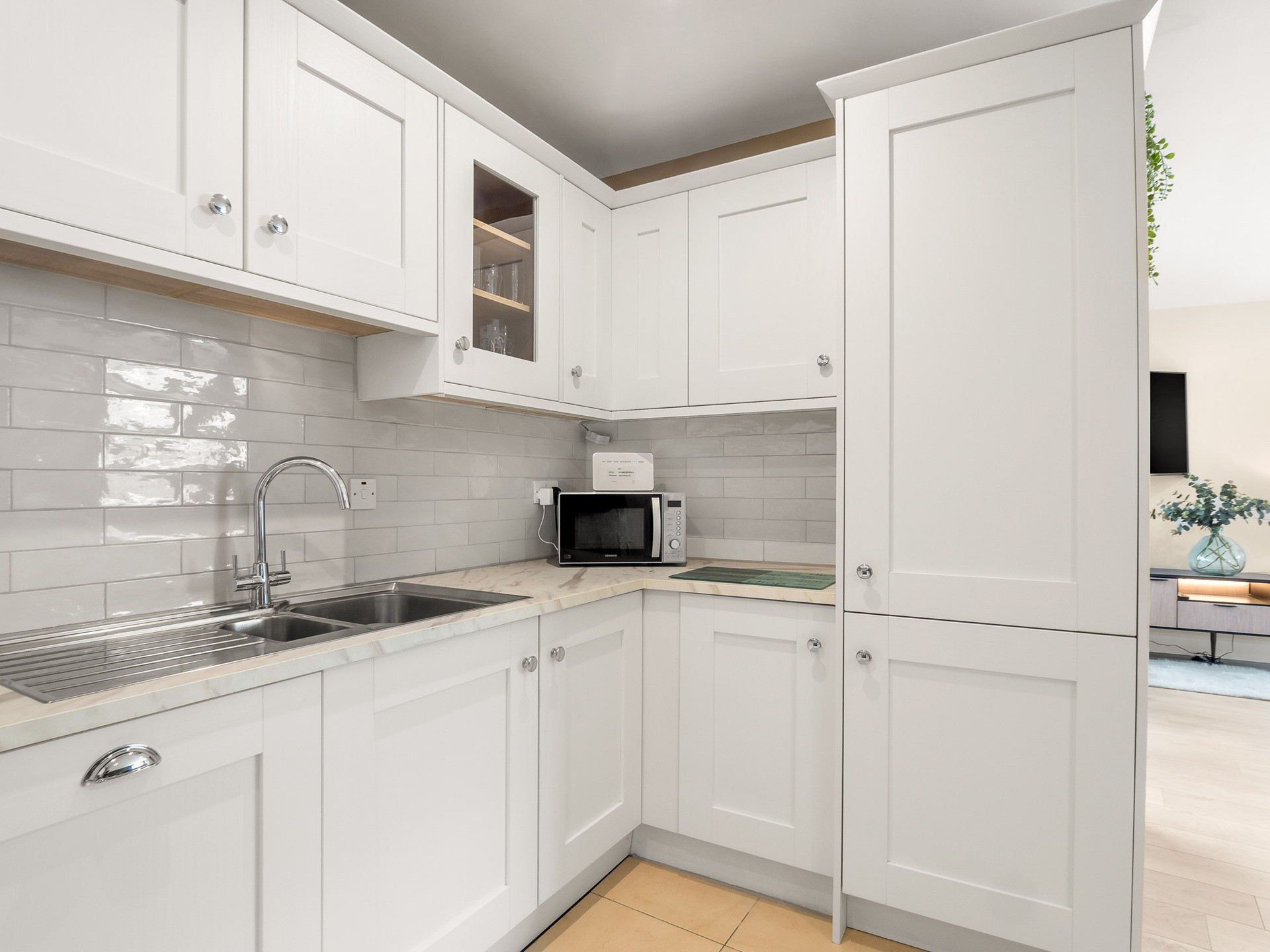 The full-service kitchen has an oven, touch-sensitive hob, fridge, freezer, microwave, and dishwasher. New Cutlery, crockery, and all cooking utensils are supplied. These is also a Nespresso premium coffee machine for the coffee lovers out there!