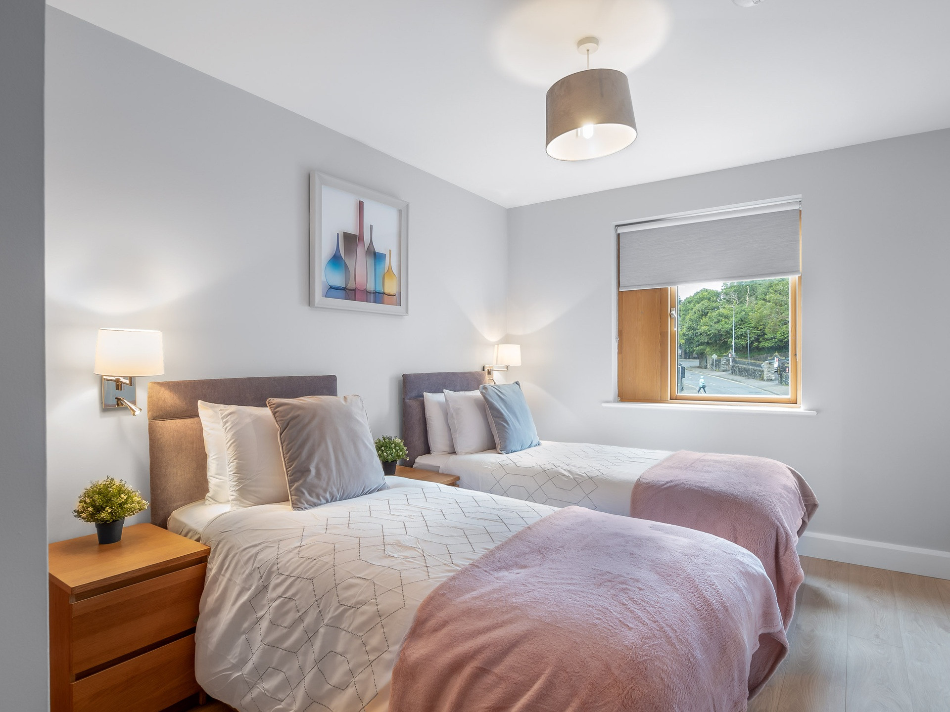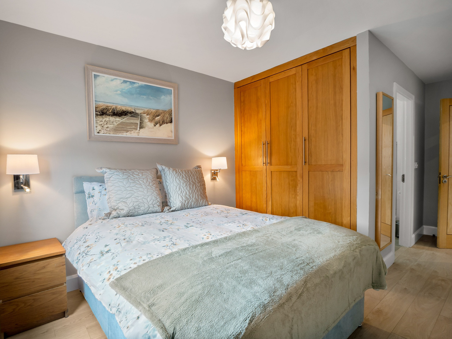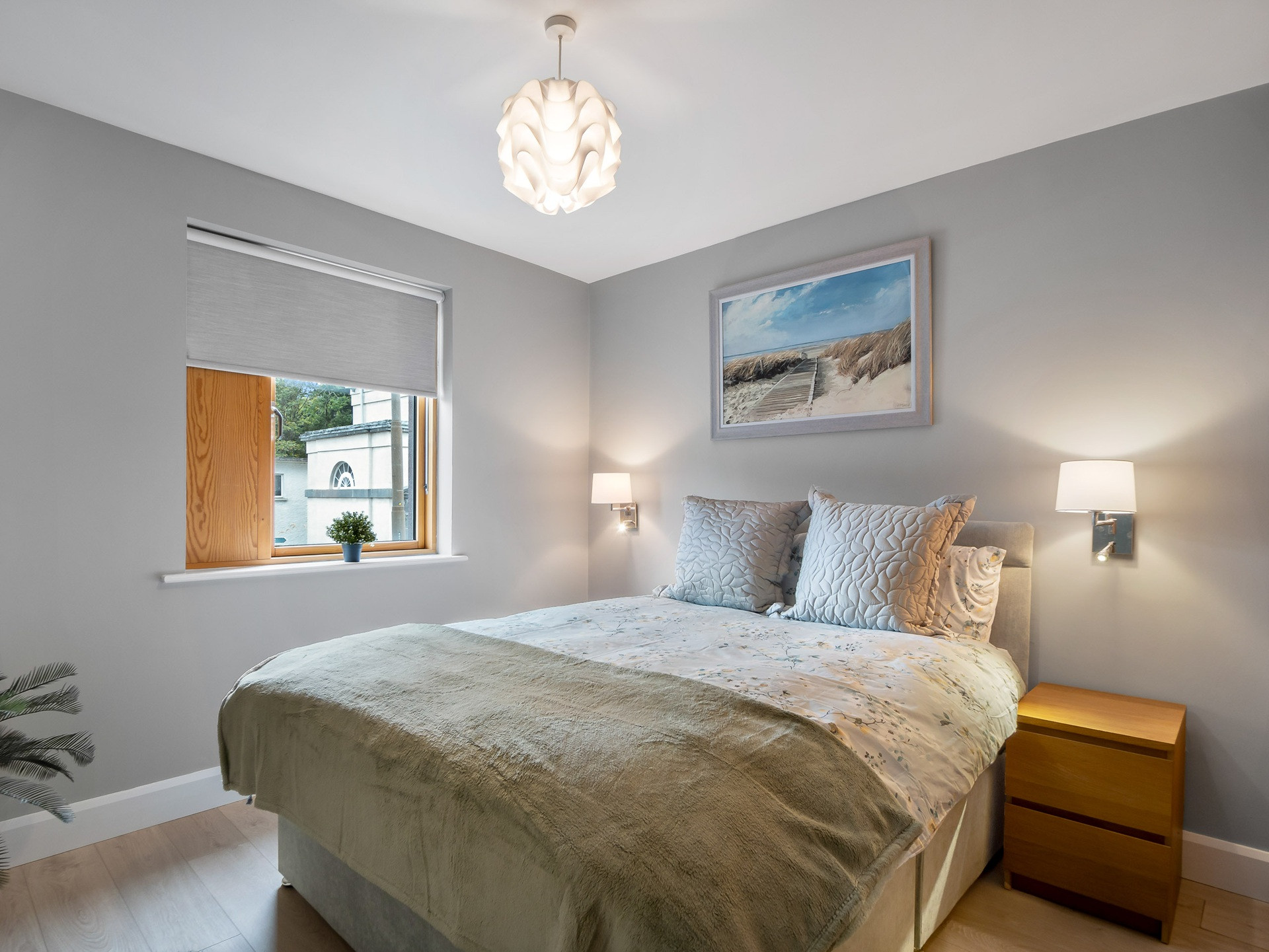 The 2nd bedroom is a bright, vibrant, relaxing space with a large king-size bed ample storage and a full-length mirror and there is also a desk and office chair for your laptop overlooking the town!