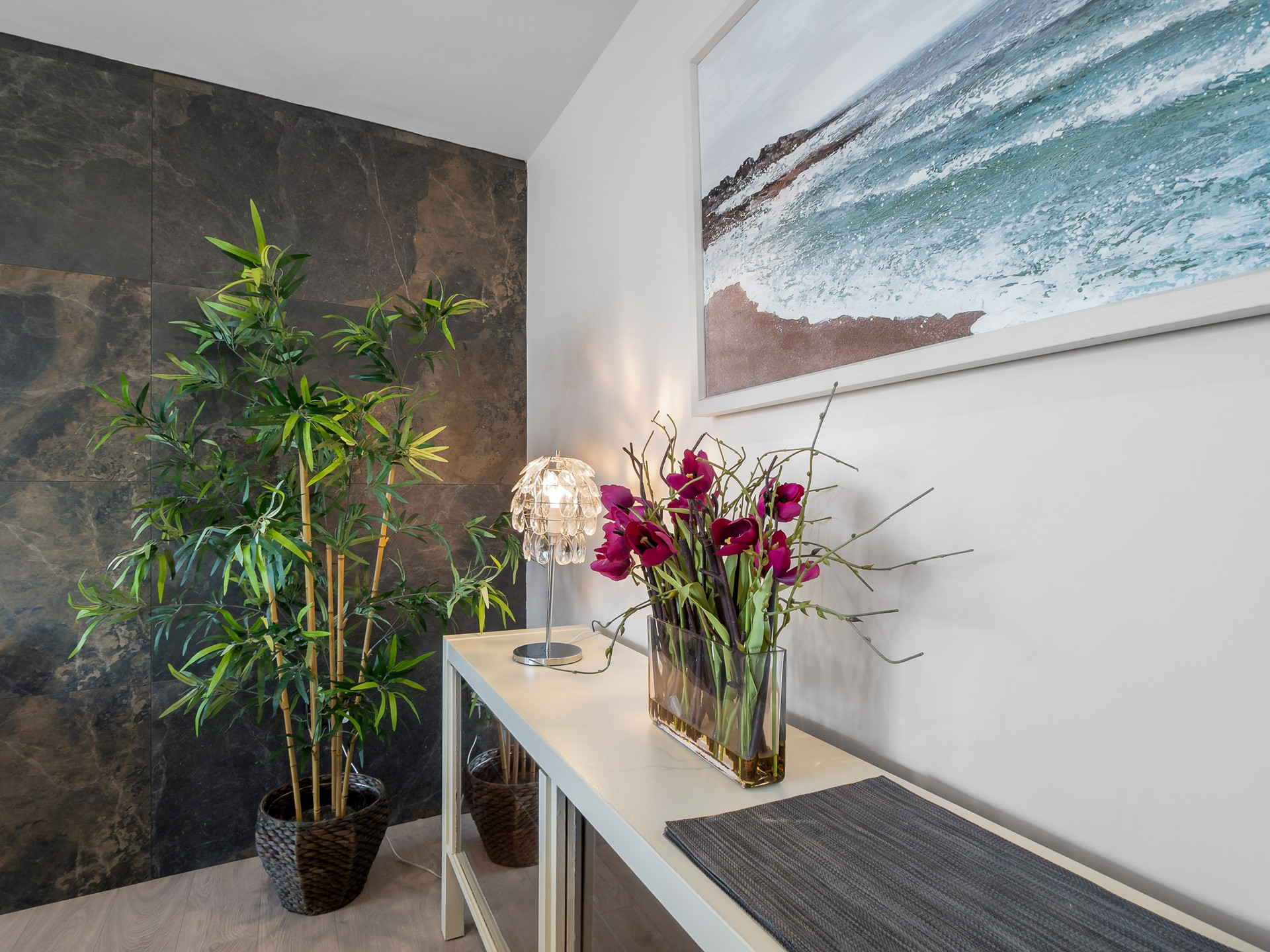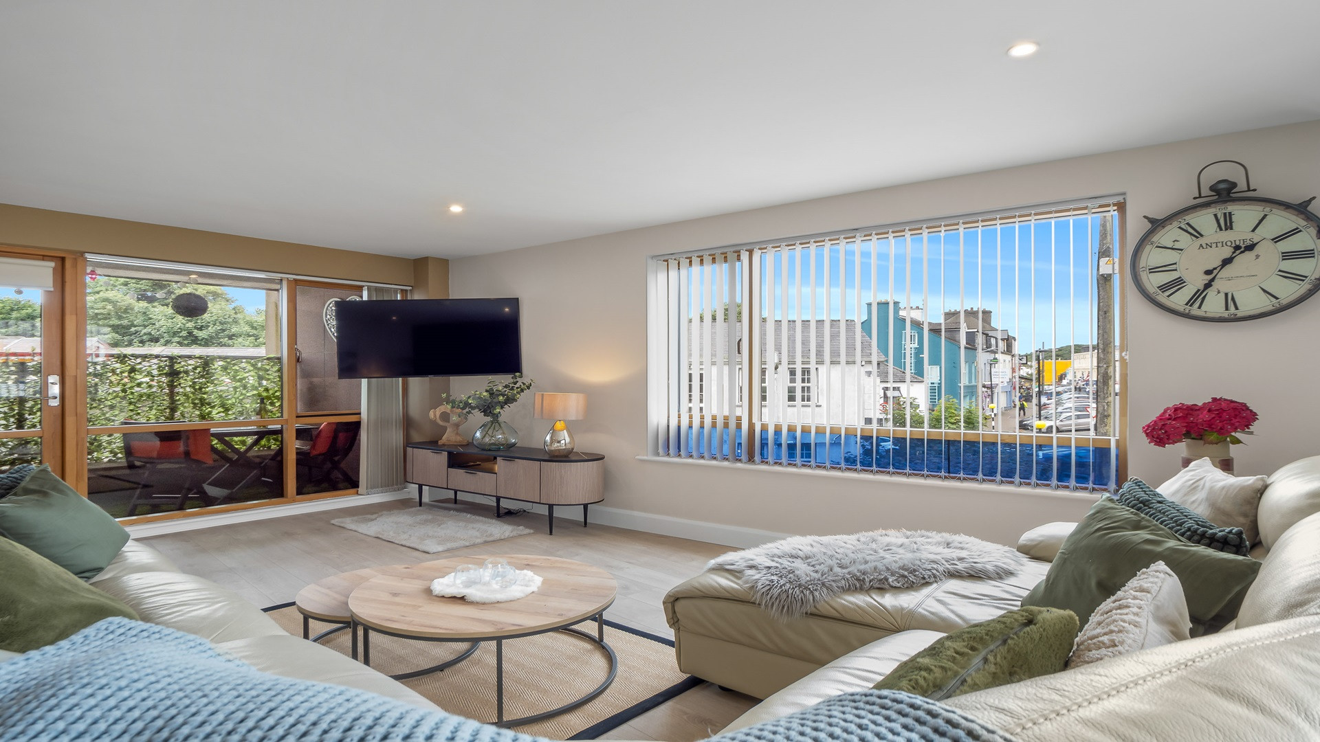 Lit by huge floor-to-ceiling windows, this natural light-filled property has an incredibly spacious living/dining/kitchen with 2 bedrooms (1 ensuite) and a main bathroom. It can sleep up to 6 guests in total. (1 x Super King Size Bed and 1 x King size bed and 1 x Single Bed as well as a living room sofa bed option) It is meticulously decorated, specifically for holiday accommodation, providing you all the amenities you'll need.