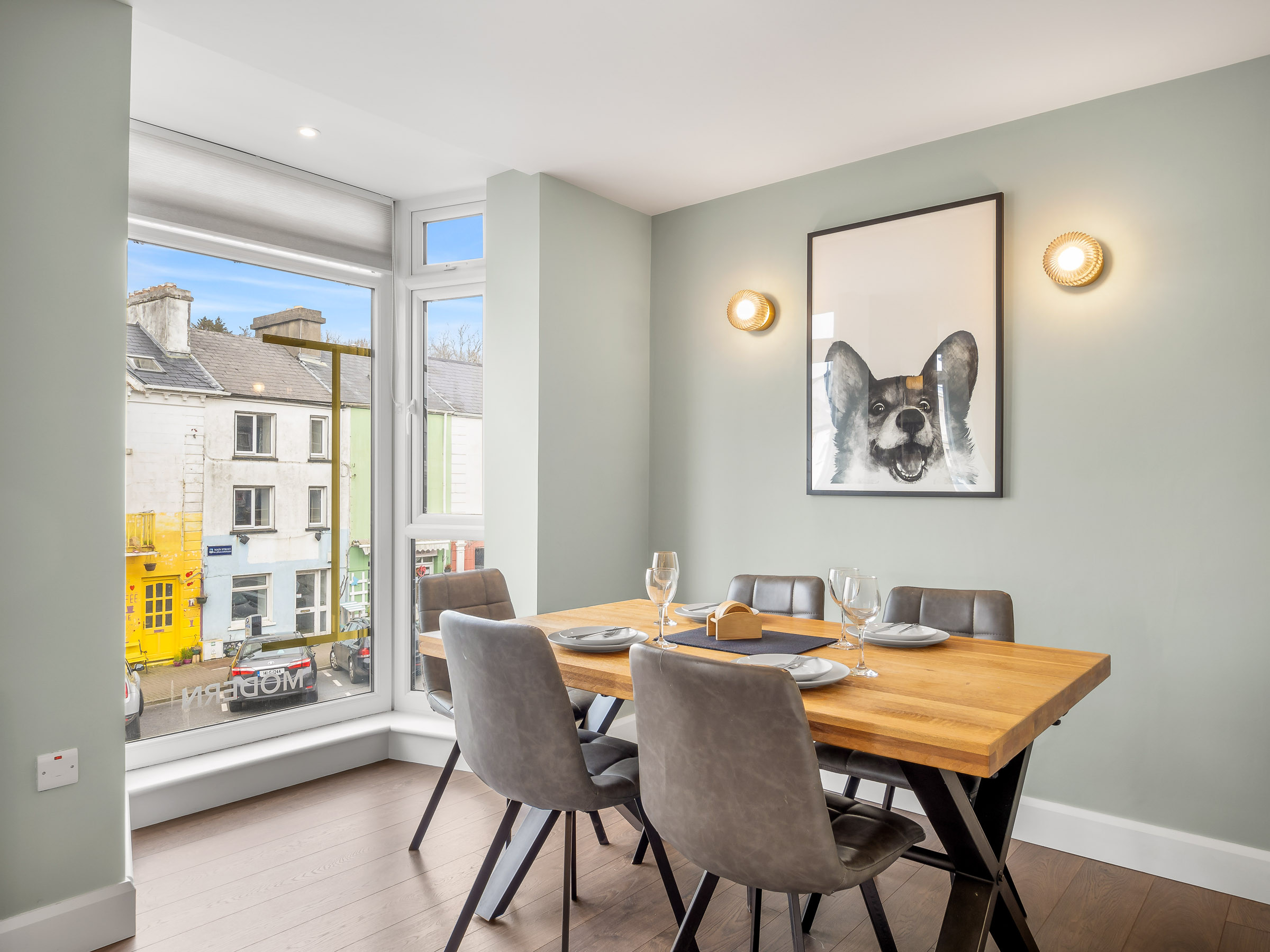 This particularly large 2-bedroom apartment in the centre of town is full of character and personality! Cool contemporary décor and funky artwork to catch the eye. It also has absolutely amazing views over Clifden Town and is the ideal place to relax and watch the world go by.