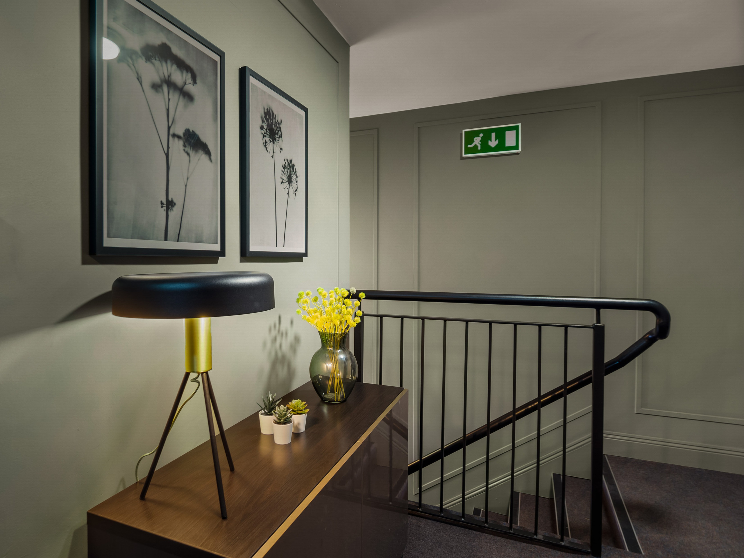 There is a stairwell to enter the townhouse. Please note that the townhouse is set over three floors and 2 sets of stairs within the property.