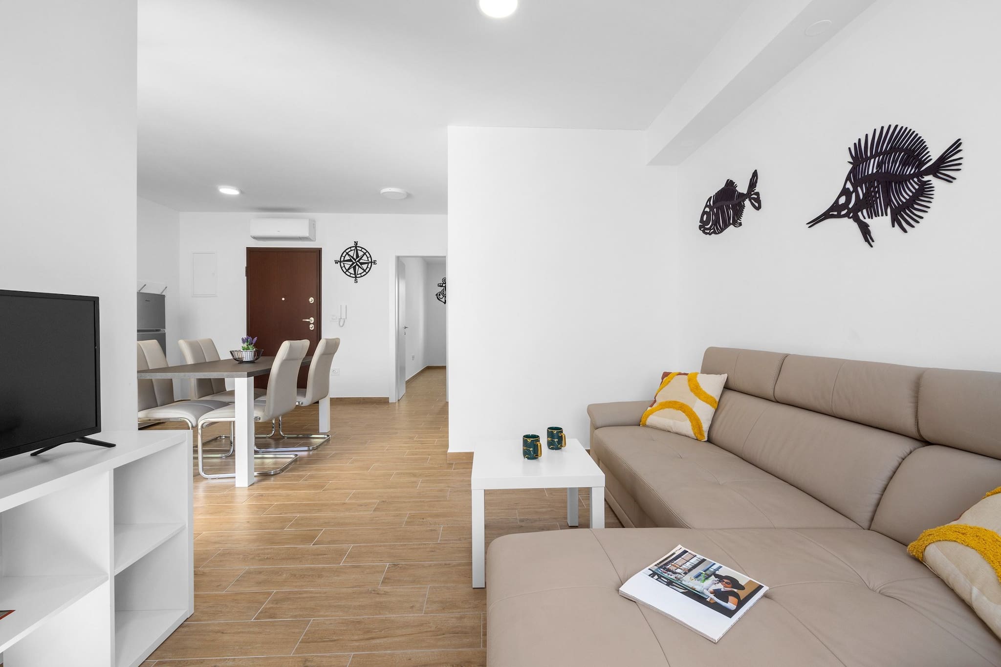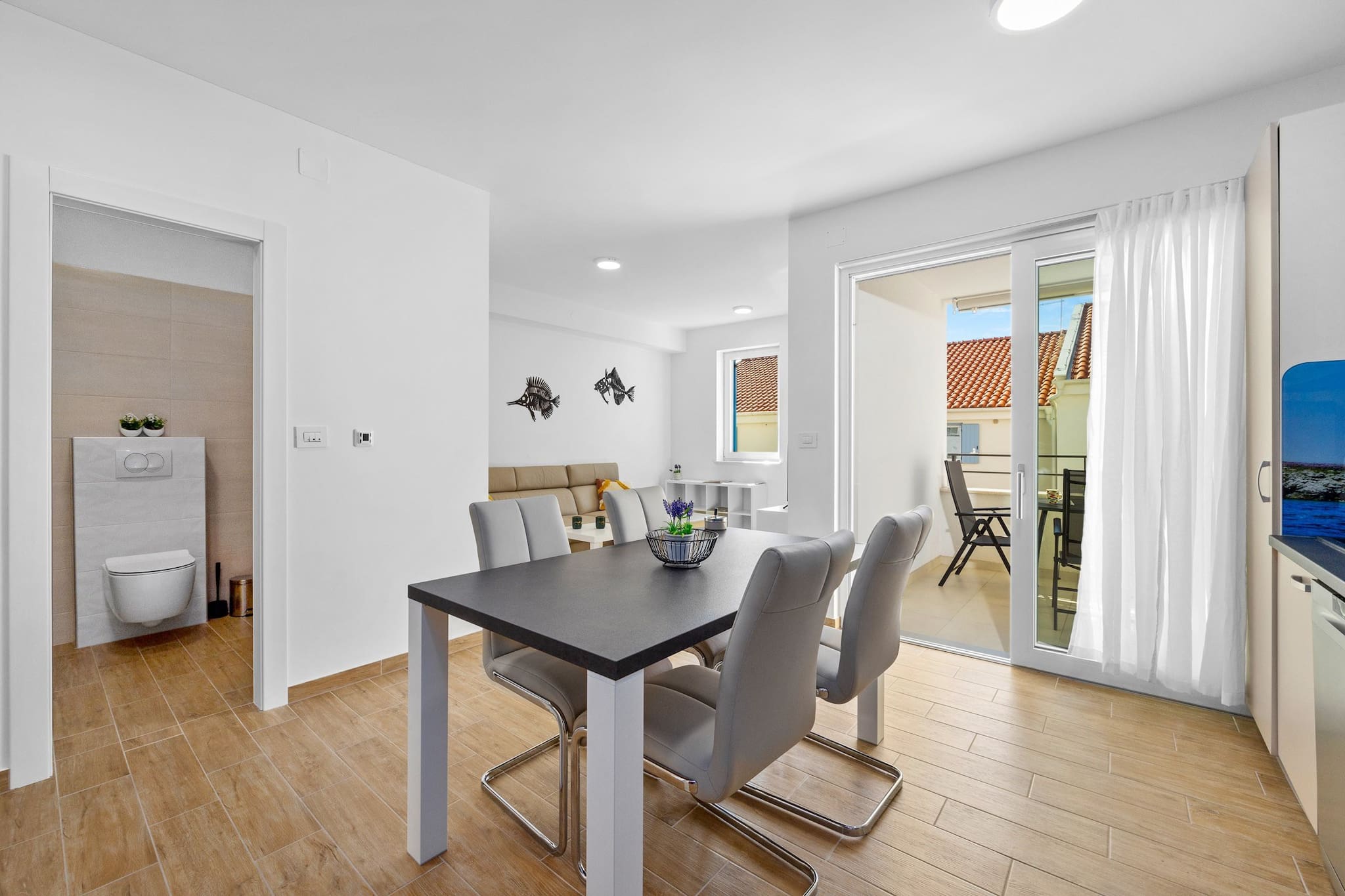 The combination of modern decoration and a romantic view of the beautiful, blue Adriatic Sea are the perfect combination while drinking your morning coffee.