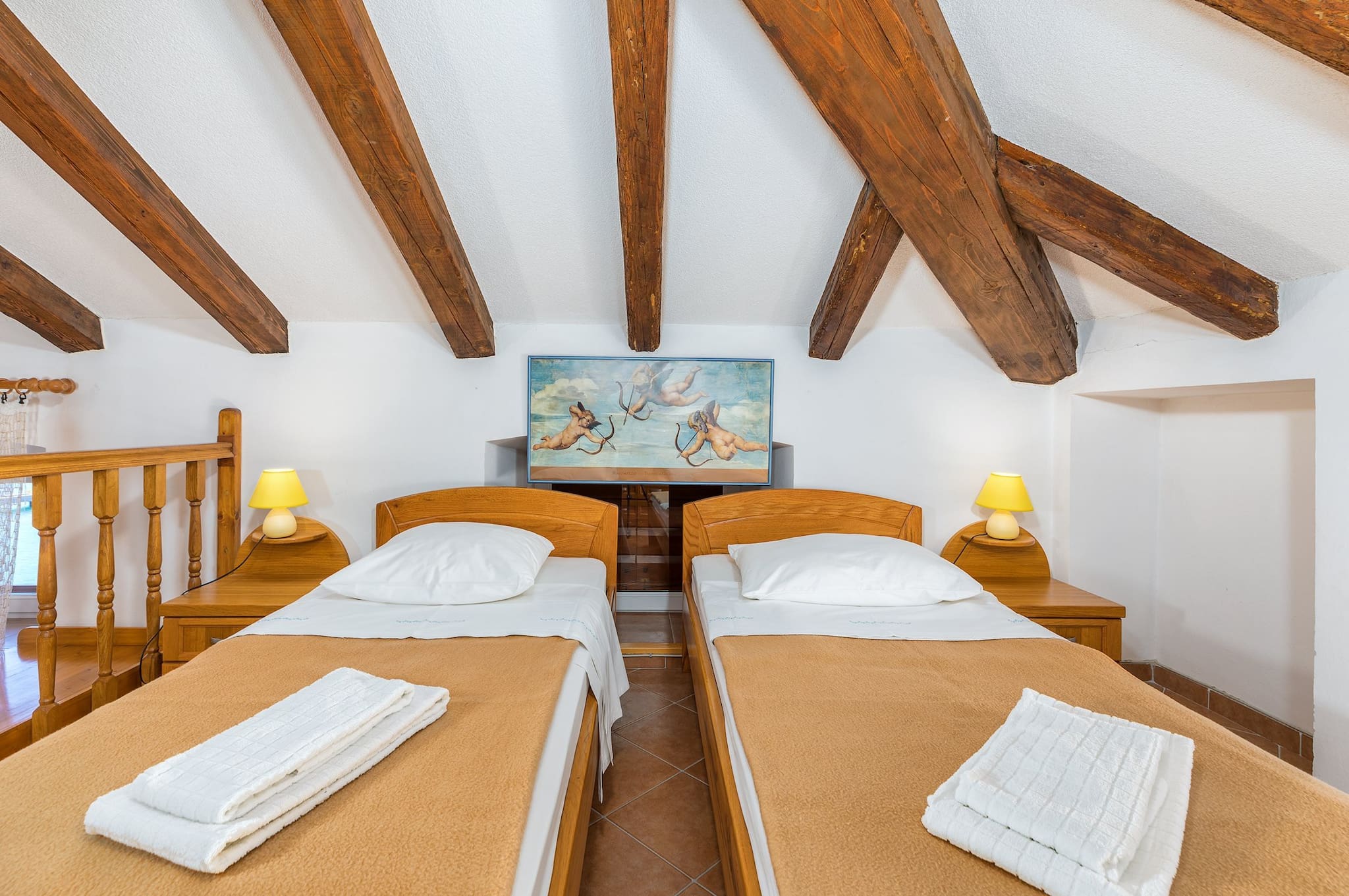 Two bedrooms are located on the gallery and also provide a wonderful view of the sea.
