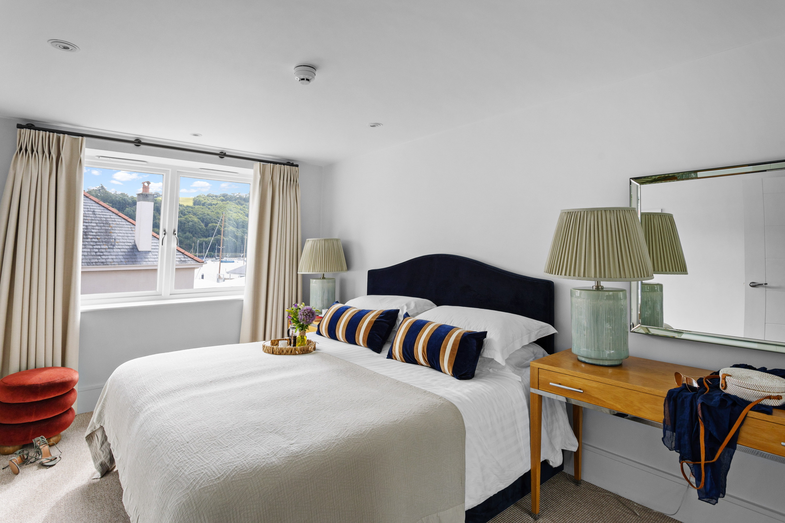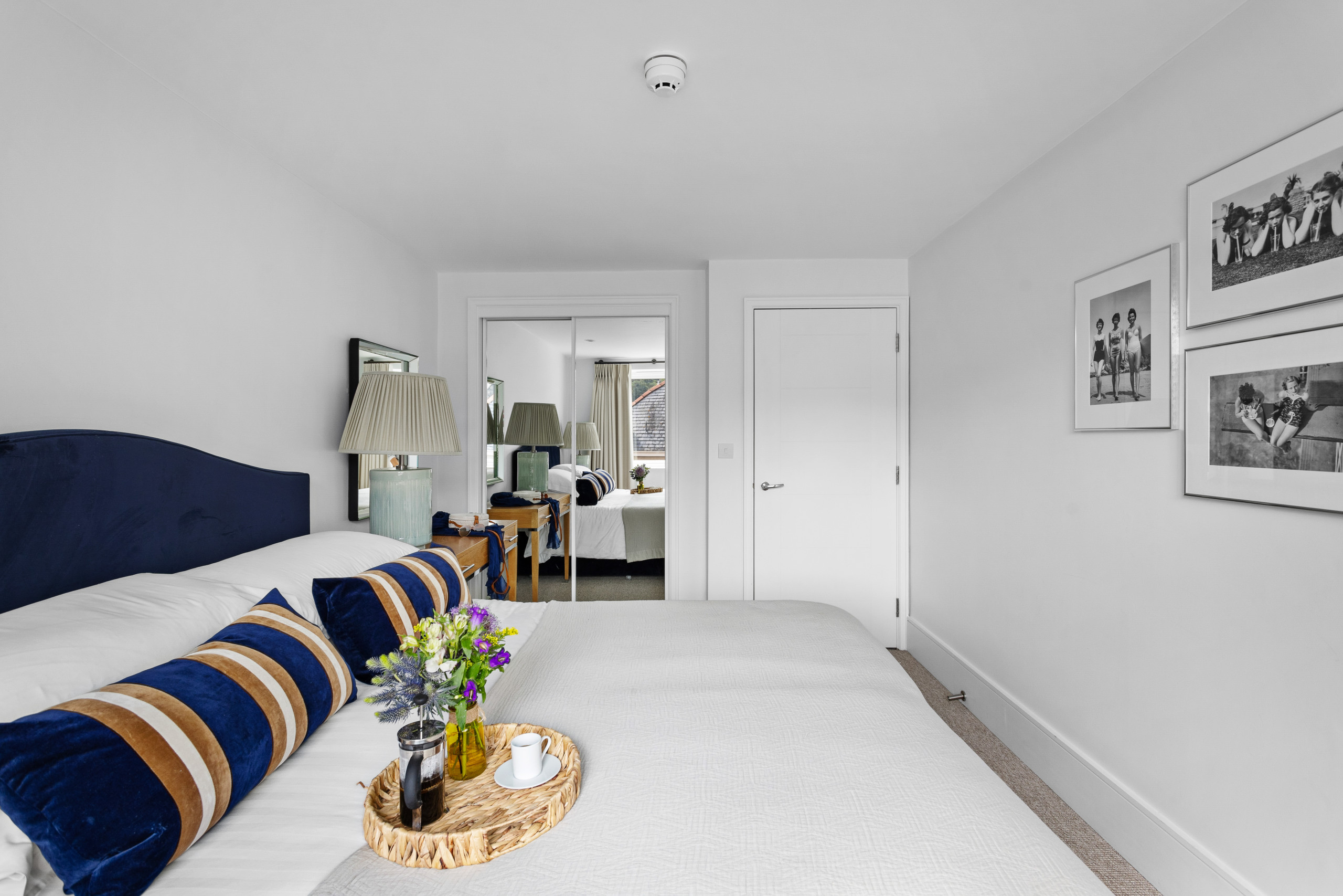 There are two luxury bedrooms, both adorned in neutral tones with coordinating furnishings. Each bedroom features a superking-size bed, with one offering the option to be split into single beds upon request. The master bedroom also boasts river views.