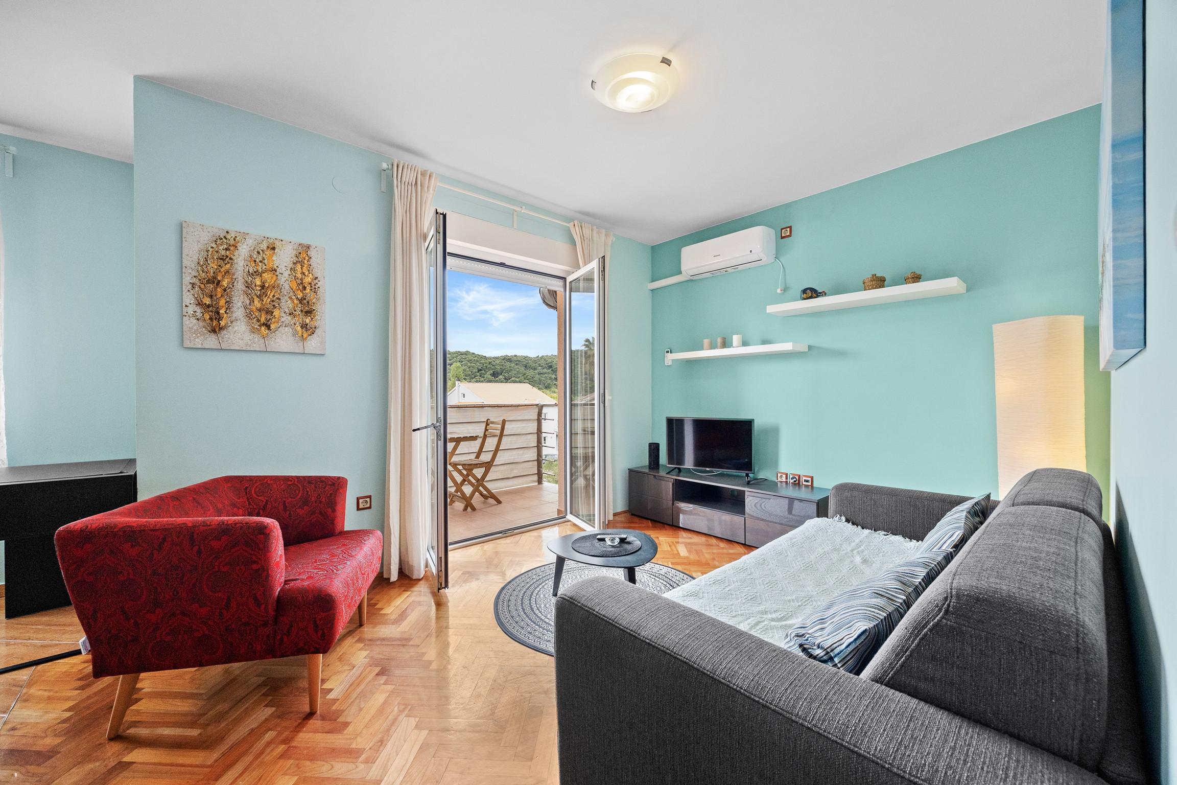 Wonderful Two Bedroom Apartment Ruzmarin is simply a perfect choice for a family vacation. The apartment is located on the upper floor of the building and it has two private balconies with sea view.