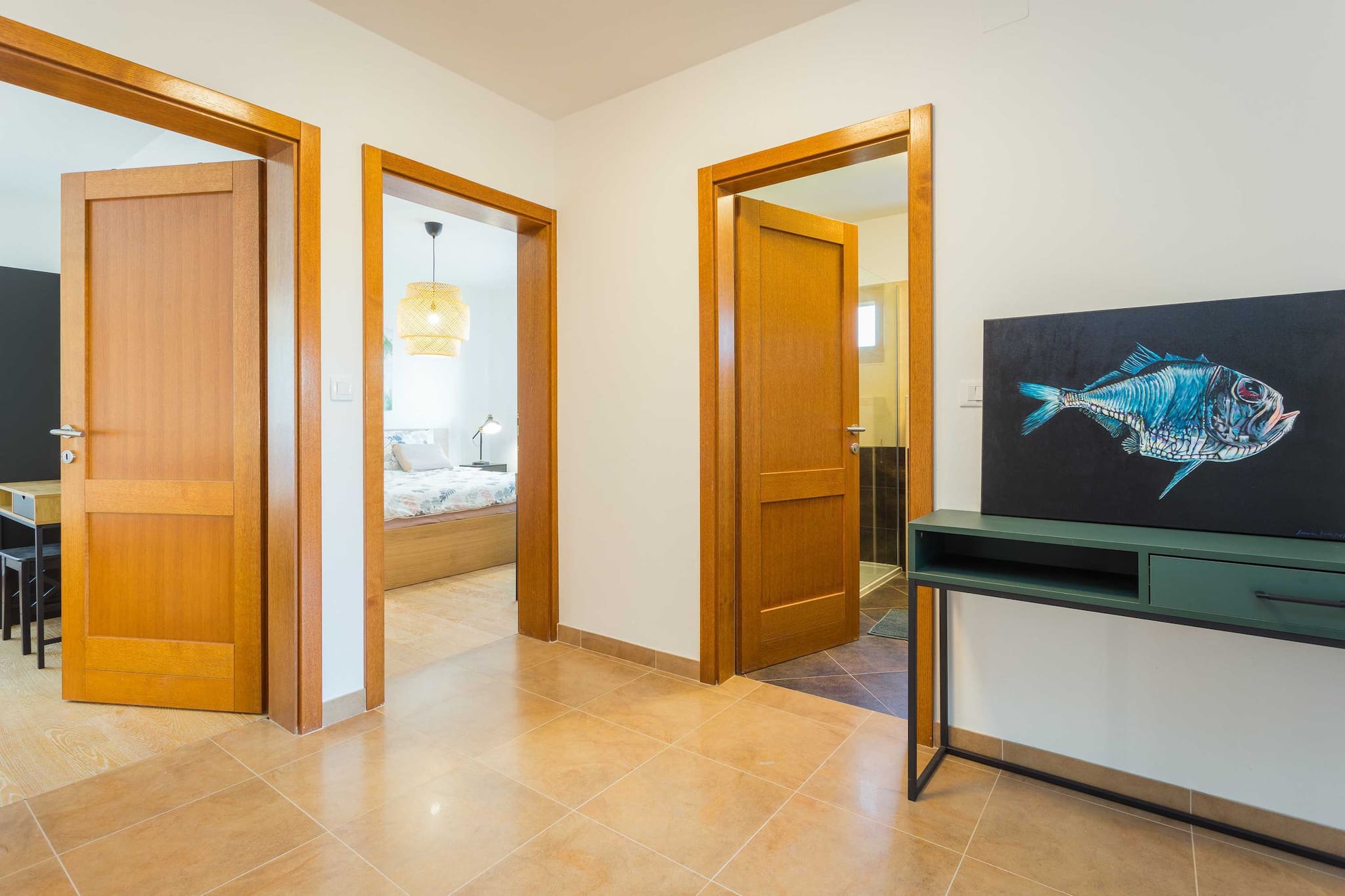 There are 2 large double beds and a convertible sofa, and apartment's suitable for 6 people in total.