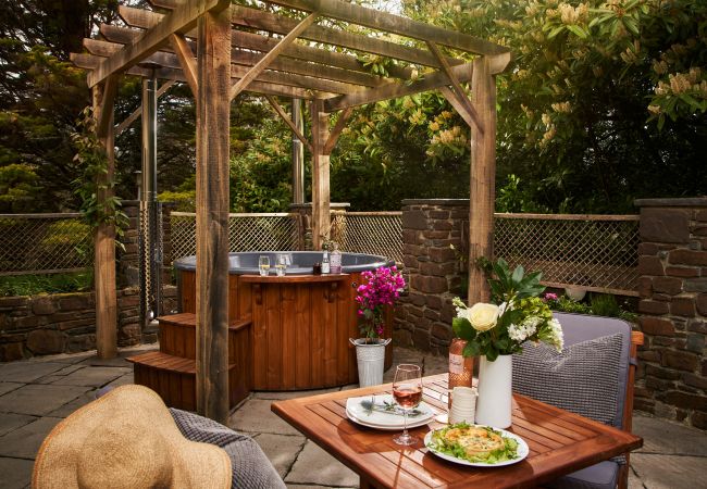 Swallows End is one of two stylish and contemporary apartments, located on the ground-floor designed to accommodate two adults and a small child that includes a private courtyard with a self-maintained, natural, Swedish-style wood-fired hot tub (private for your own use). Surrounded by rolling hills and nestled on the edge of Dartmoor National Park in a small complex of holiday properties, it has access to shared facilities (only with one other small apartment) including an indoor heated pool, sauna and wooded gardens.