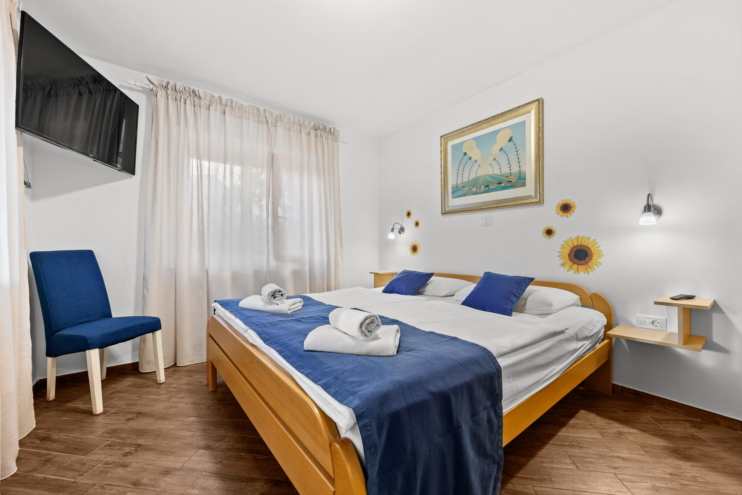This accommodation is most suitable for families. It's a two-bedroom apartment with 2 bathrooms with shower, fully equipped kitchen, tastefully decorated living room and a spacious terrace (13 m2) where guests can enjoy in fresh air. Living room and both bedrooms have a TV.
