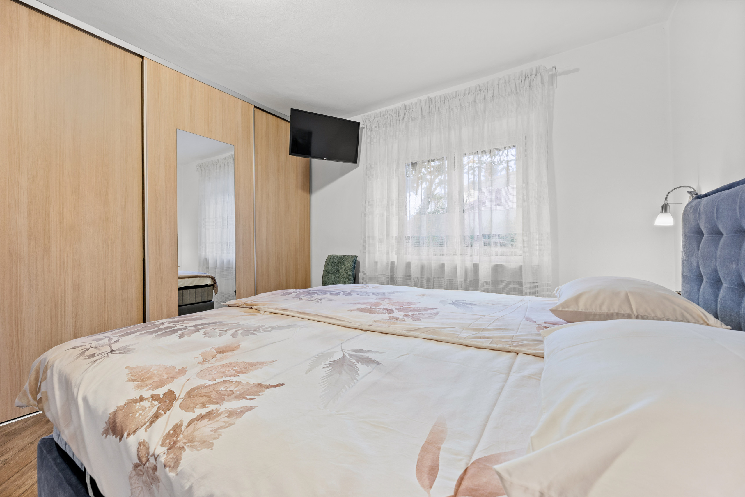 The apartment's fully air conditioned, ensuring a pleasant temperature throughout your stay. The fully equipped kitchen, complete with modern appliances such as a fridge, freezer, oven, and microwave, allows you to prepare delicious meals for your loved ones. Featuring two bedrooms and a living room with a convertible sofa, it's perfect for up to 4 adults and two children.