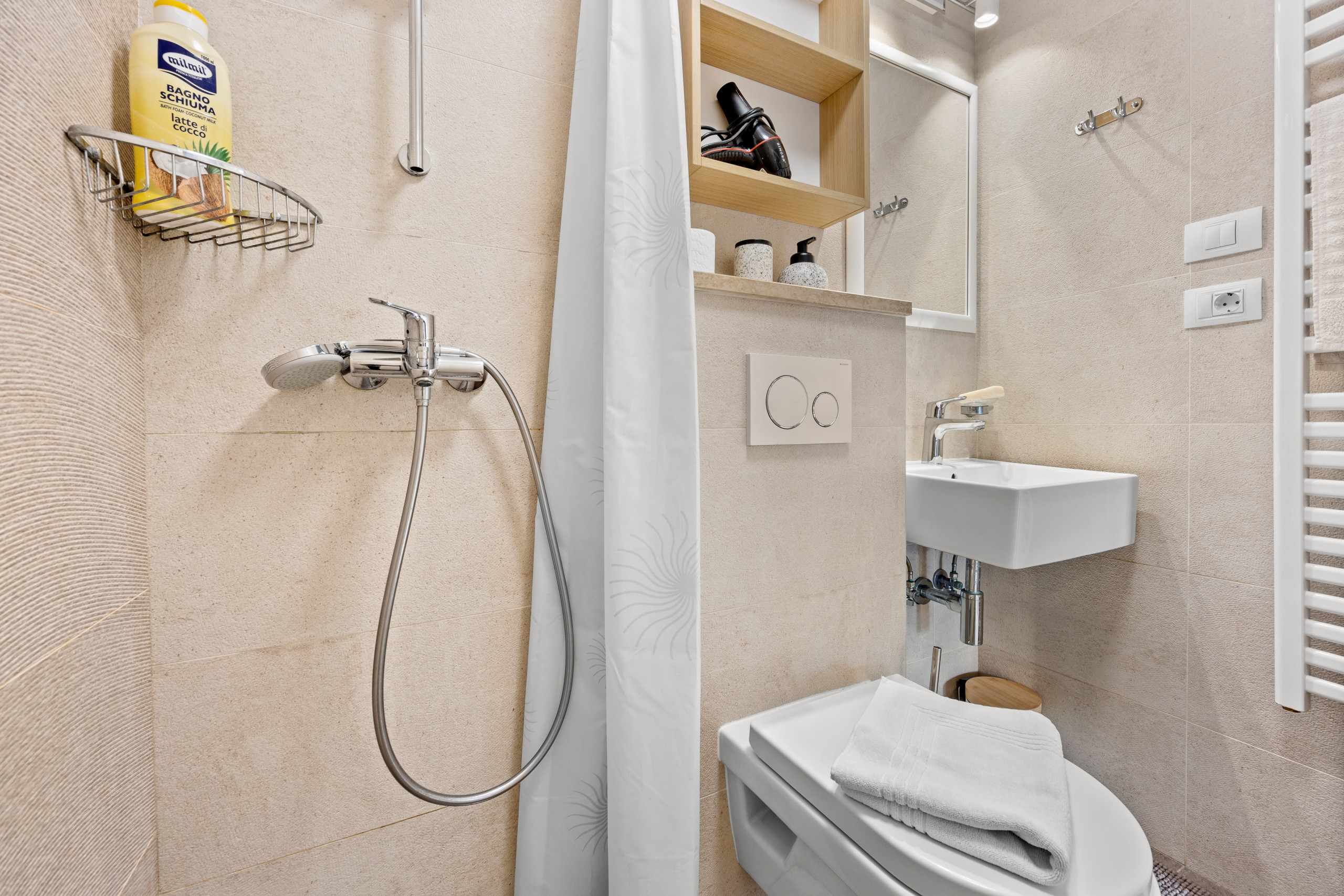 There is also a washing machine, which is perfect if you would like to have a longer vacation.