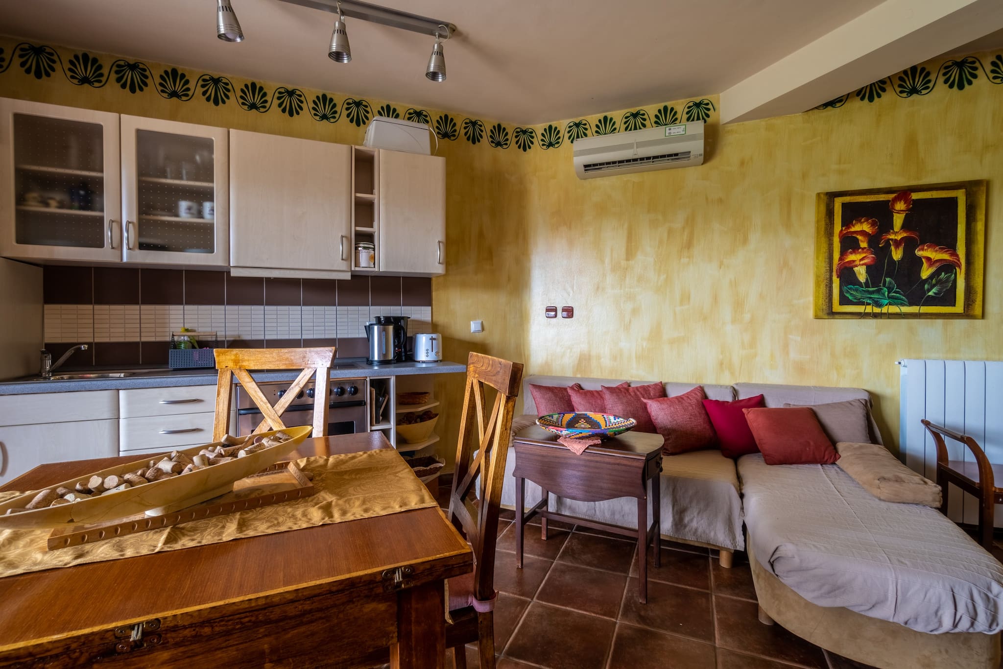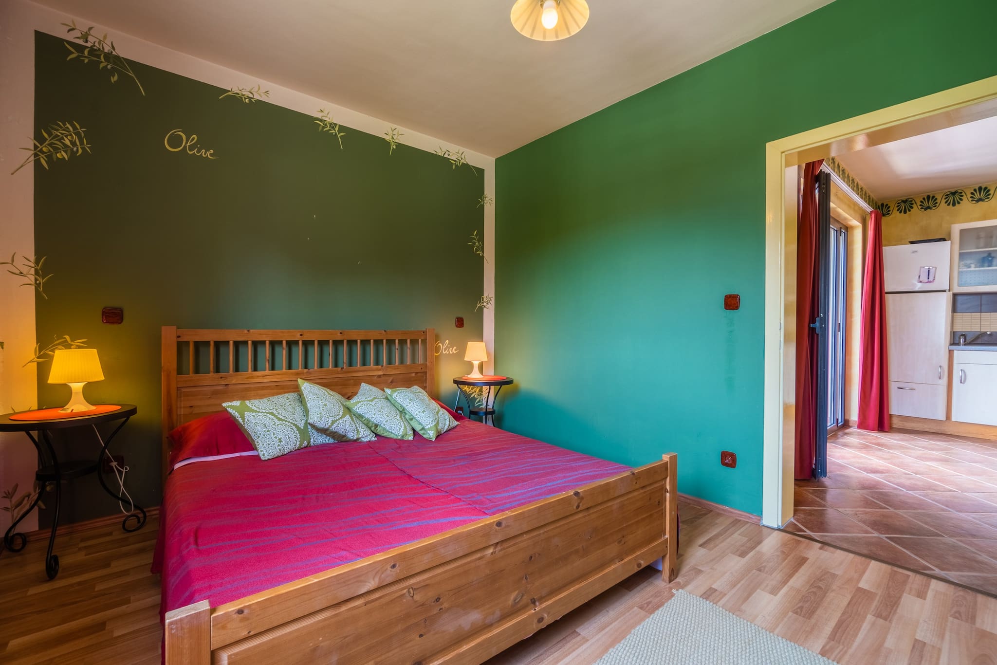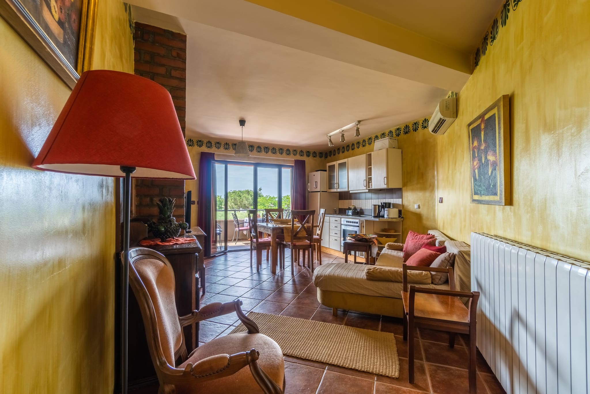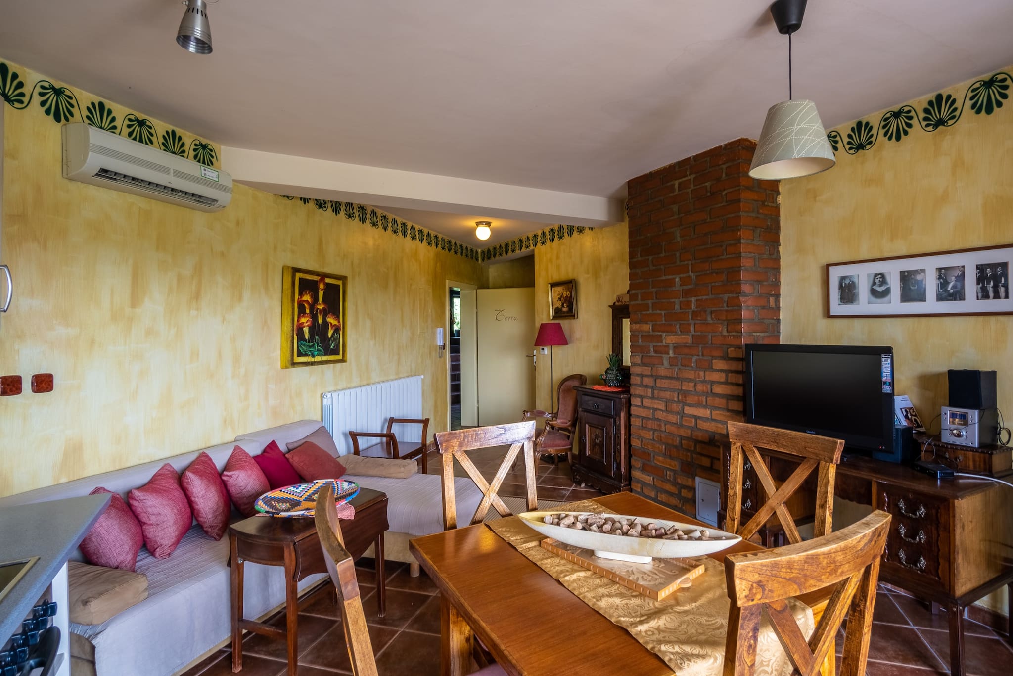 Apartment Terra is decorated in colors of the sun. It can accommodate up to 4 people, which can sleep in 2 bedrooms (one with double bed, and one with 2 single beds). It has a private balcony, bathroom and living room with a kitchen.