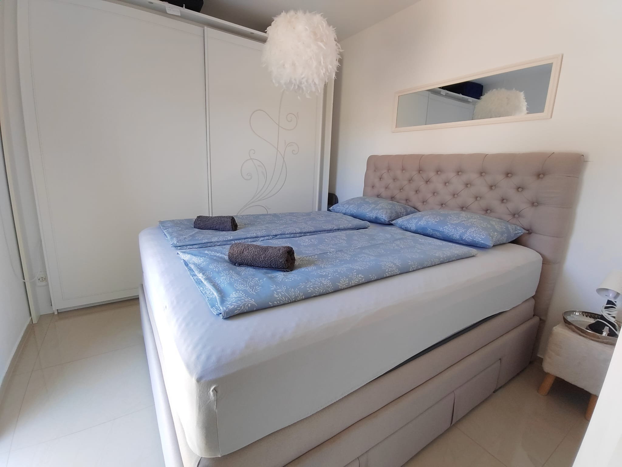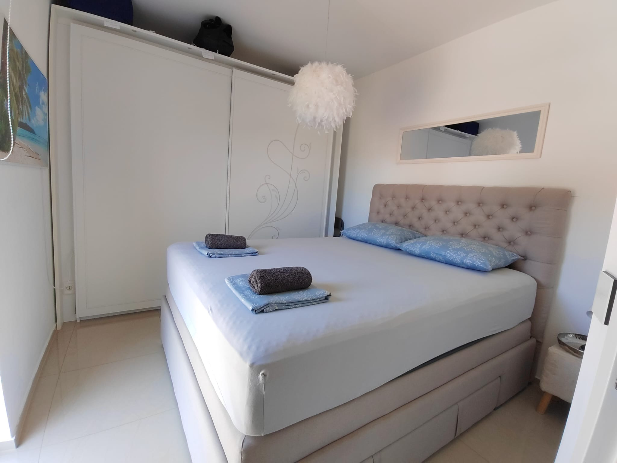 The apartment's fully air conditioned, ensuring a pleasant temperature throughout your stay. The fully equipped kitchen, complete with modern appliances such as a fridge, freezer, oven, and microwave, allows you to prepare delicious meals for your loved ones. Featuring two bedrooms and a living room with a convertible sofa, it's perfect for up to 4 adults and two children.