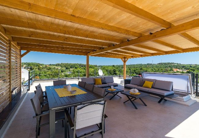 This modernly furnished penthouse is located in Medulin, a tourist resort which provides a lot of activities for different age groups.