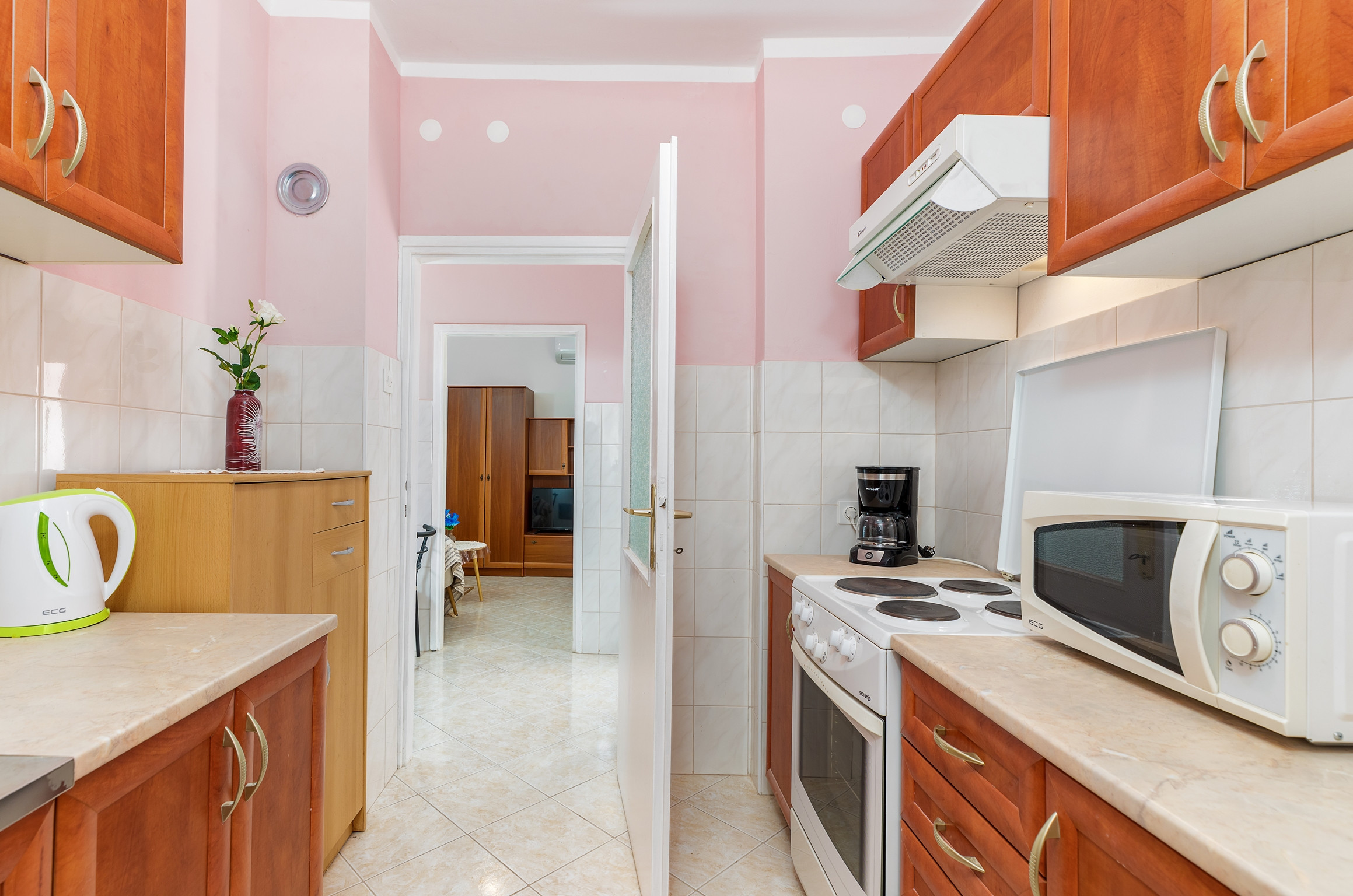 The kitchen is fully equipped with all the necessary appliances, including a fridge, freezer, oven, microwave, and coffee machine, allowing you to prepare delicious meals during your stay. The apartment also offers complimentary Wi-Fi, ensuring you stay connected throughout your visit.