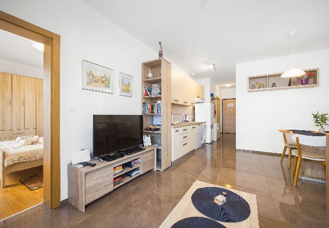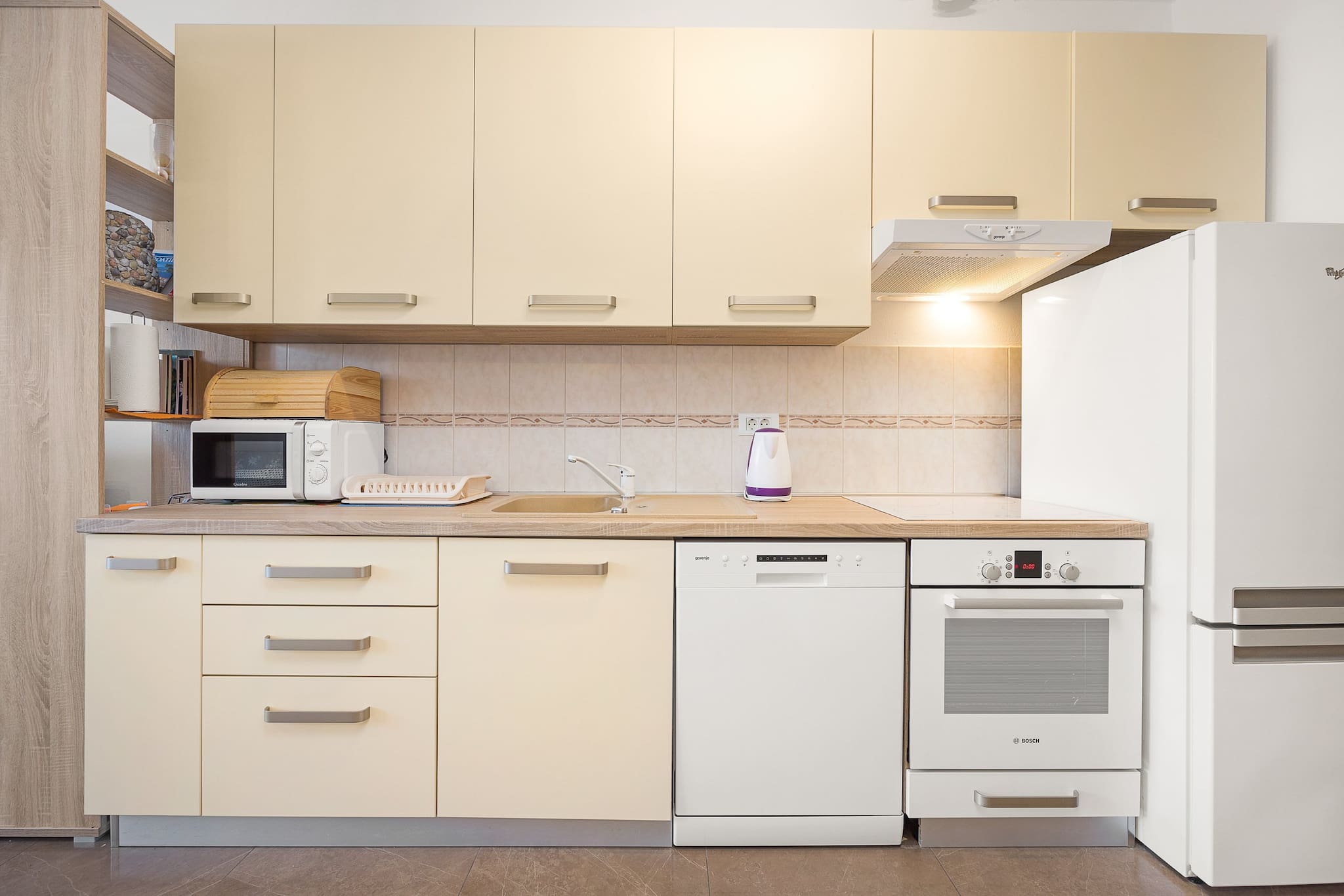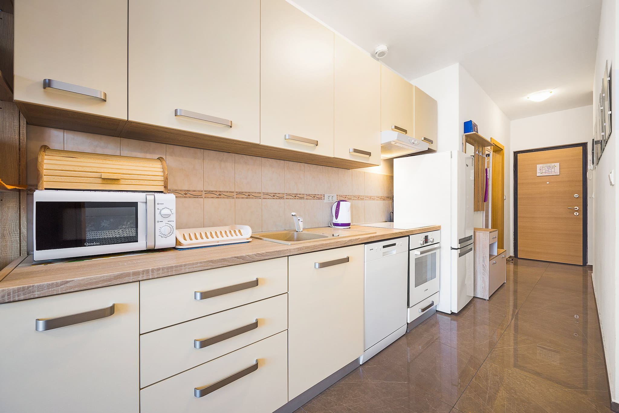 This tastefully decorated and modern apartment is perfect for a couple, or a family vacation. Balcony provides a nice view of the nature and surrounding greenery. Wi-fi, air conditioning and parking available for free.
