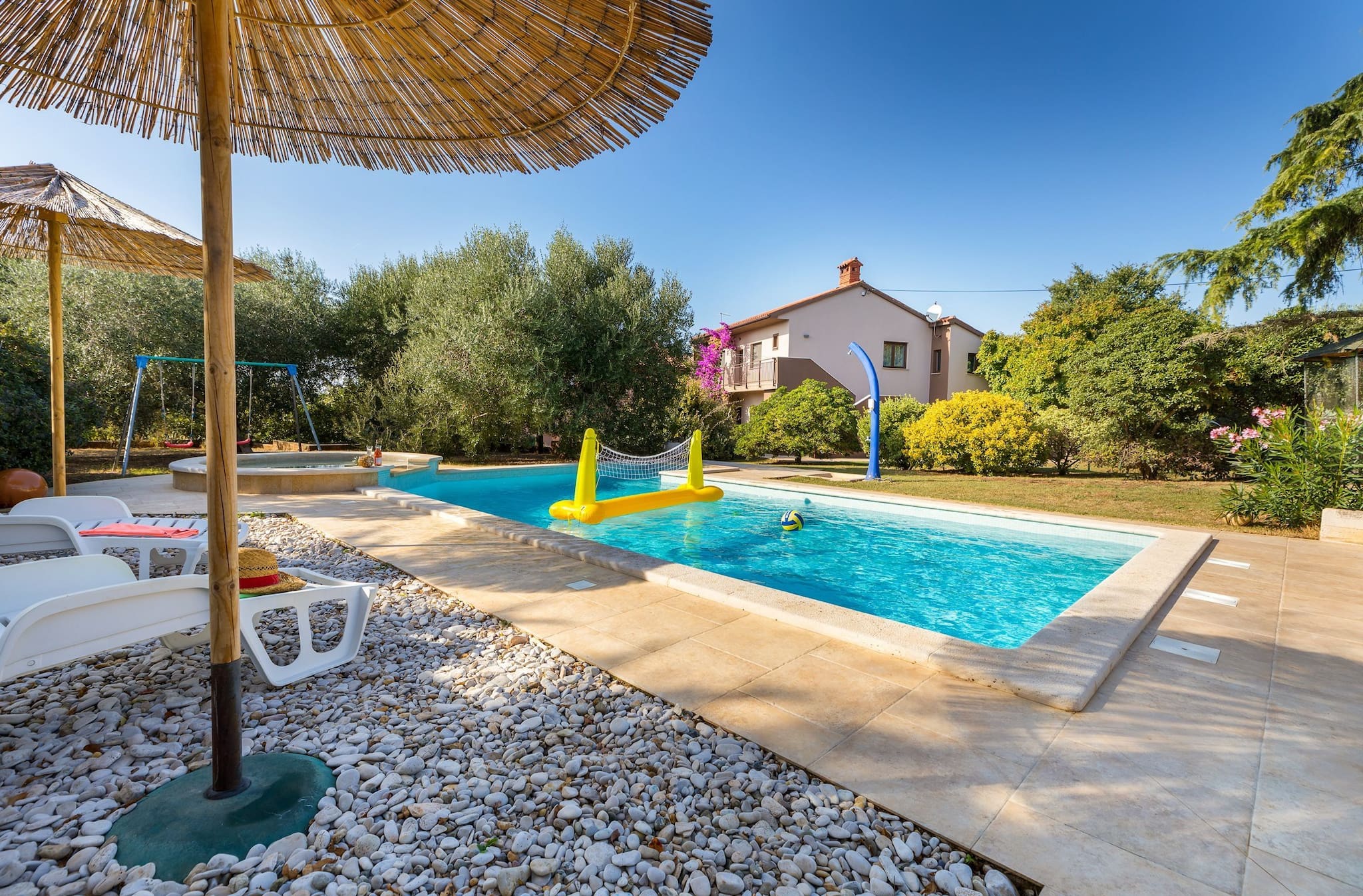 Enjoy the perfect blend of indoor and outdoor living with the apartment's impressive features. The furnished balcony and terrace offer stunning pool views, while outdoor furniture and a barbecue area provide excellent spaces for family gatherings and al fresco dining. Entertainment is guaranteed with a smart TV, satellite TV, and game room featuring table tennis, darts and some gym equippment. This room also has a fireplace, BBQ and dining area, which is a typical Istrian room called konoba.