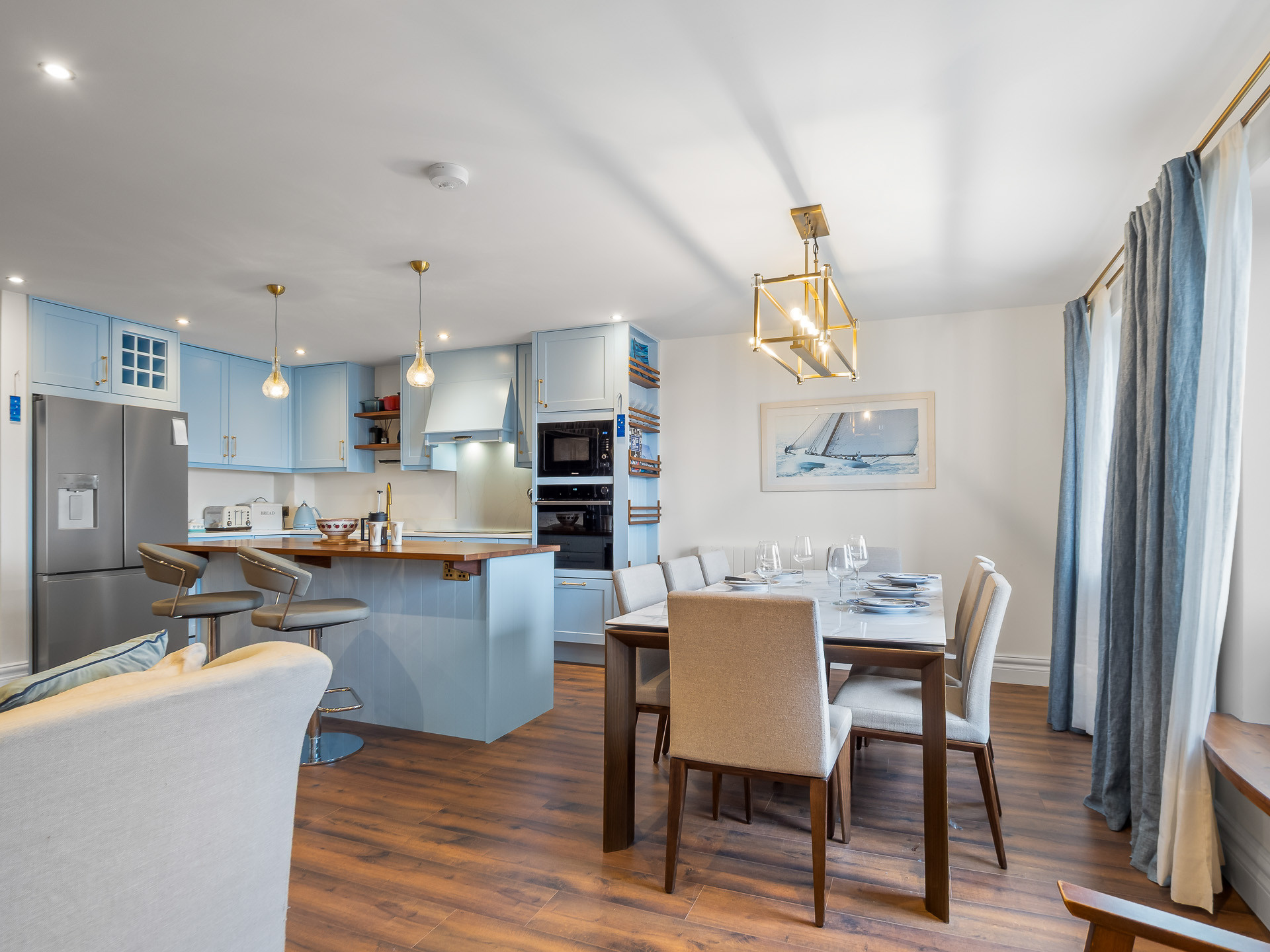 From the moment you arrive, the home’s charm is unmistakable, featuring a traditional half door that sets the tone for a stay filled with warmth and personality. Inside, the space is bright, stylish, and thoughtfully designed. The open-plan kitchen, dining, and living area is the heart of the home — perfect for gathering with family or friends. The well-equipped kitchen features an island, American-style fridge, and induction hob. A wood-burning stove and Smart TV complete the space, adding both comfort and relaxation to evenings spent indoors.