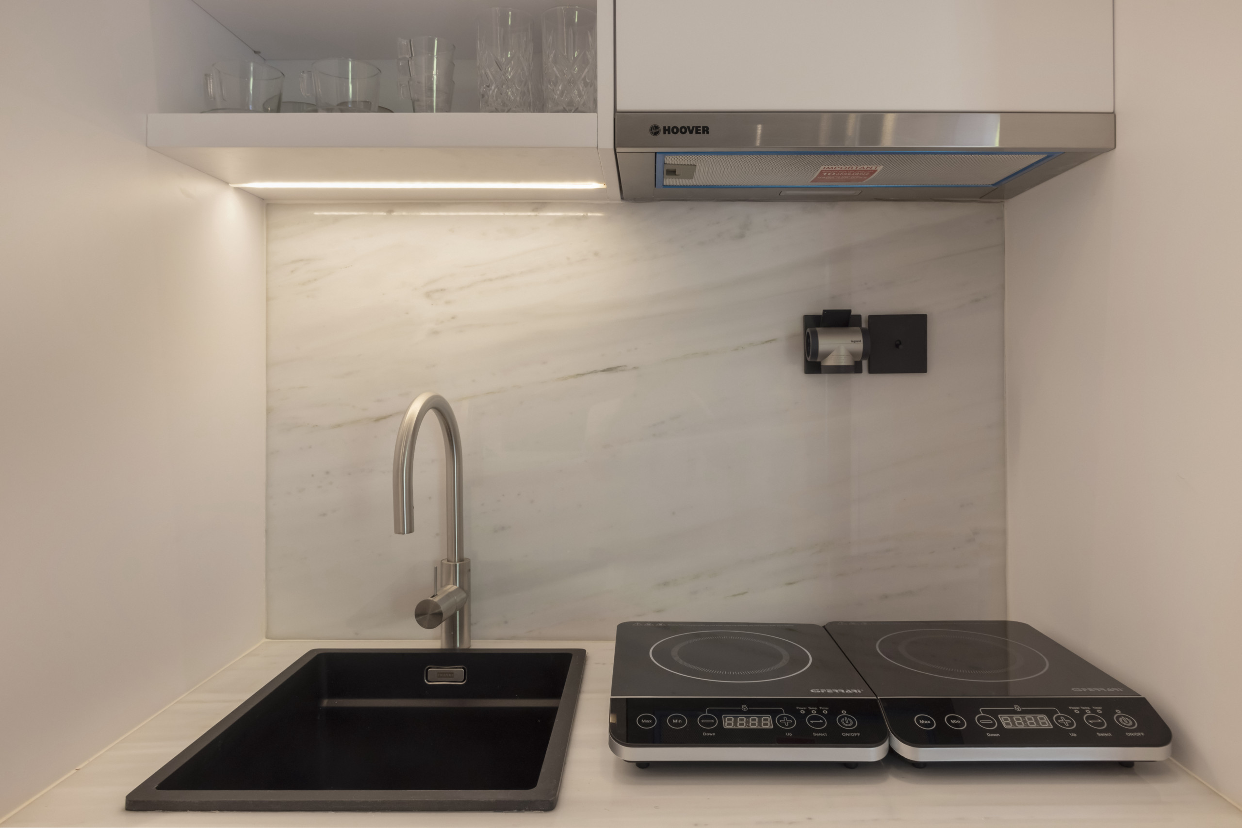 Fully equipped with a microwave & grill, mini-fridge, coffee maker, and all necessary utensils to prepare simple meals. It also includes washing machine and dishwasher.