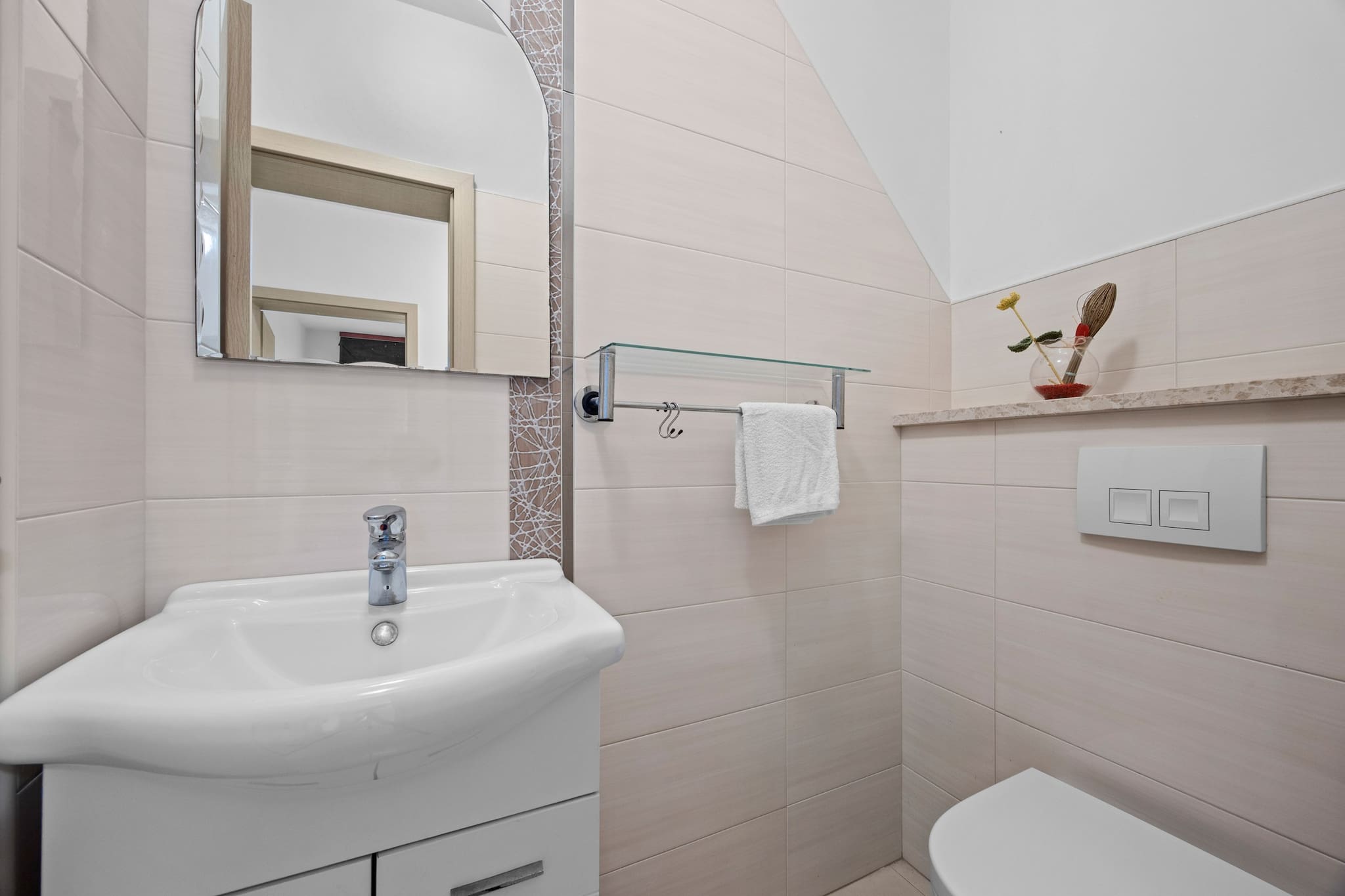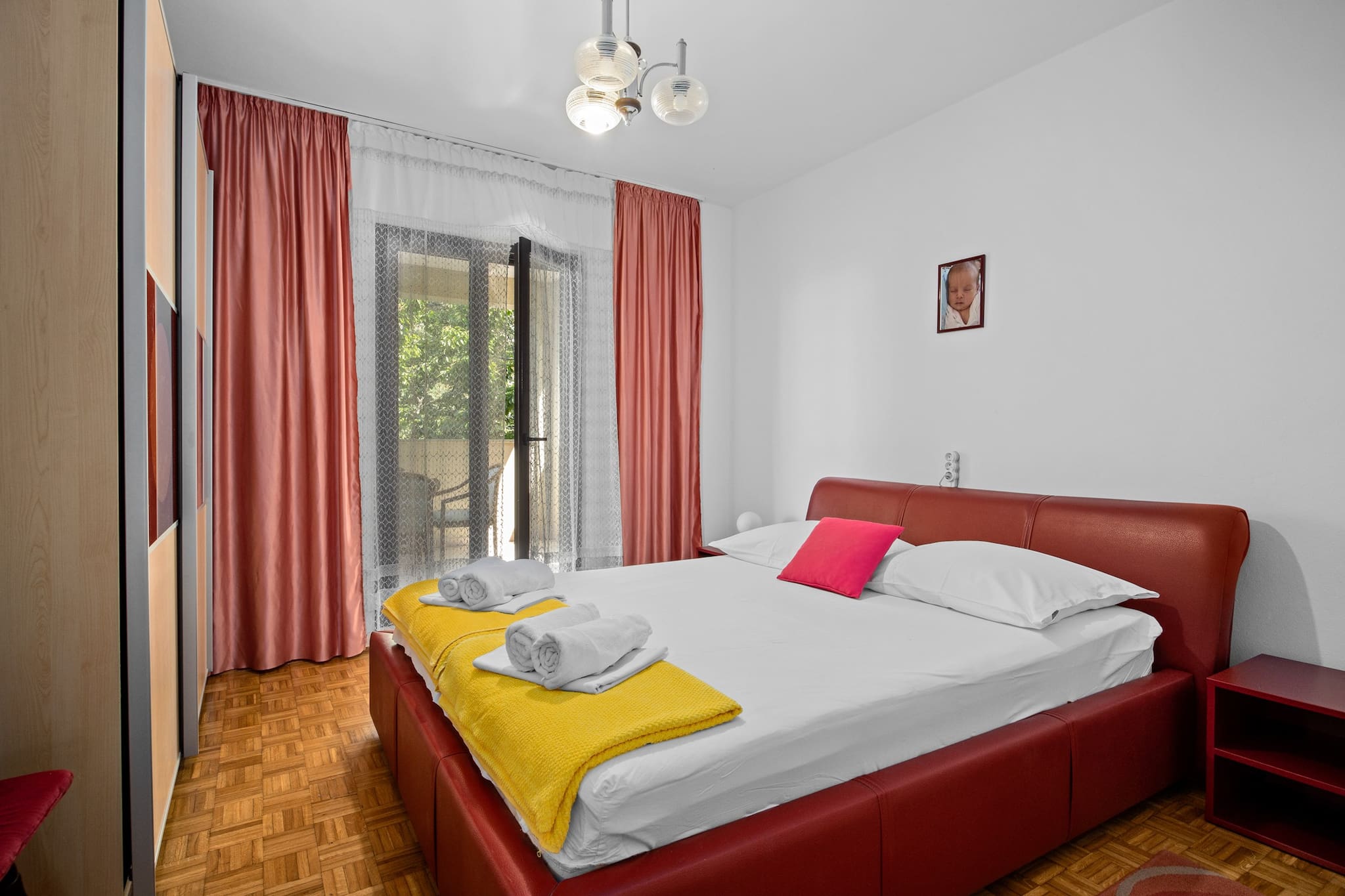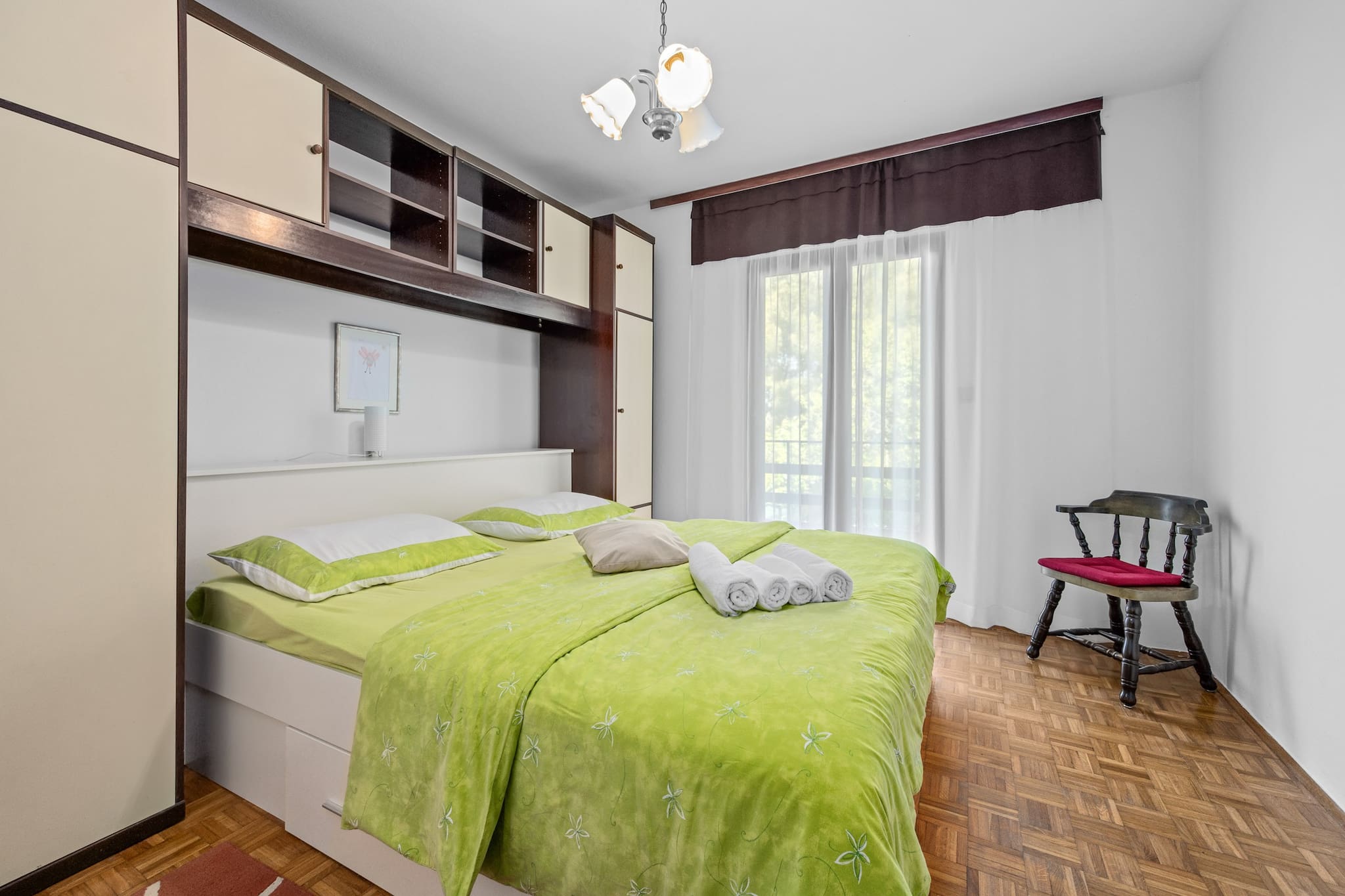 This three bedroom apartment is situated on the first floor of the house. This spacious apartment is a perfect choice for a longer vacation for an entire family of 6. The apartment consists of three bedrooms with double beds, a fully equpped kitchen, a living room, a bathroom and a separate toilet.