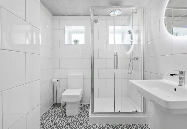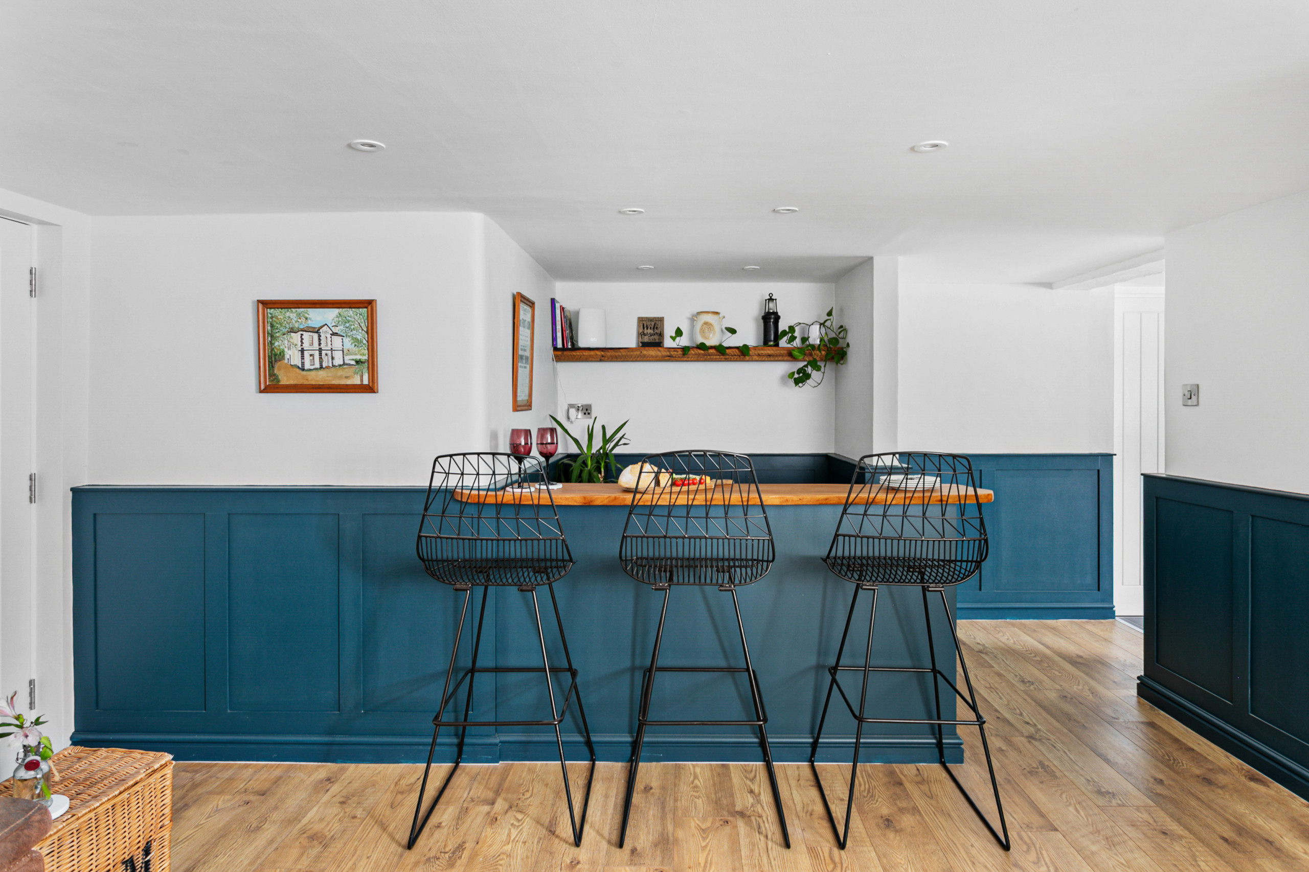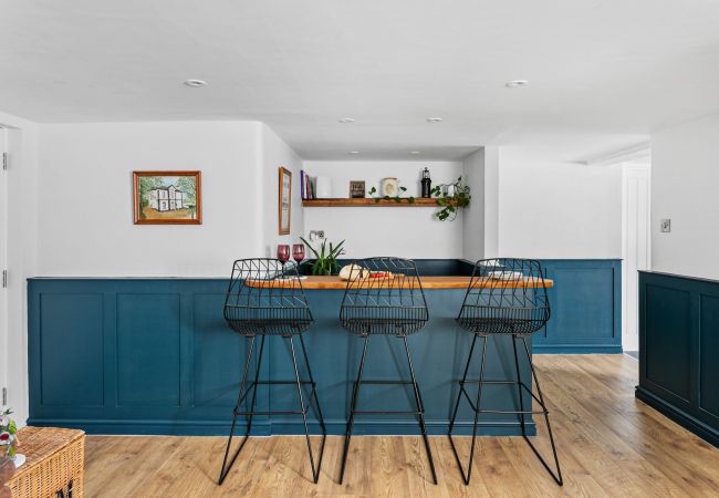 Three beautifully decorated bedrooms are on the second floor, each offering its own individual vibe. One has a double bed with an ensuite shower room featuring an uplifting vertical garden. The second provides a king bed, while the spacious third bedroom has a super-king and sea views to ensure dream-filled slumbers of sunsets and sandy beaches. A large family bathroom with bath, shower, toilet and wash basin provides space to wash away a salty beach day.