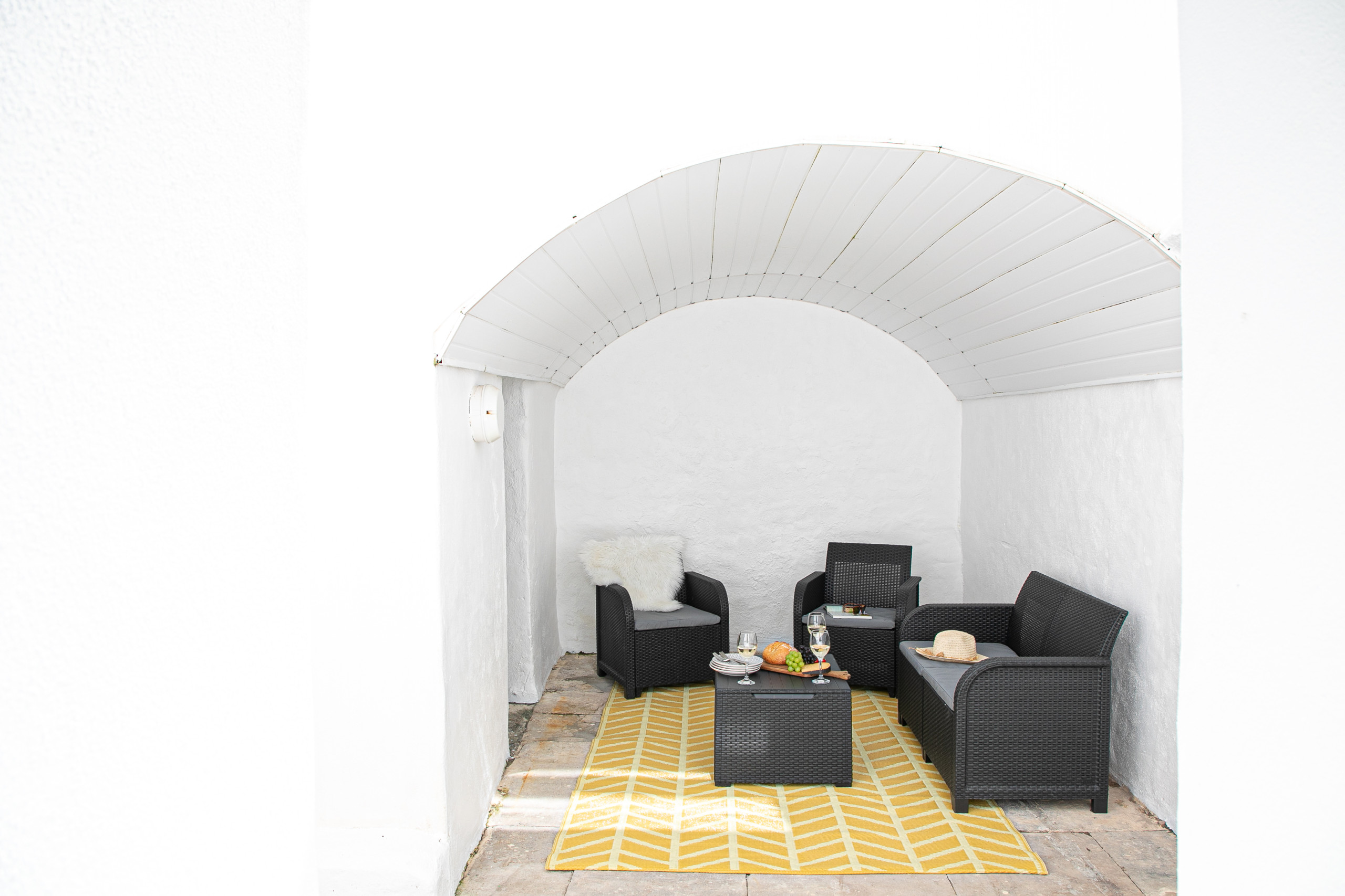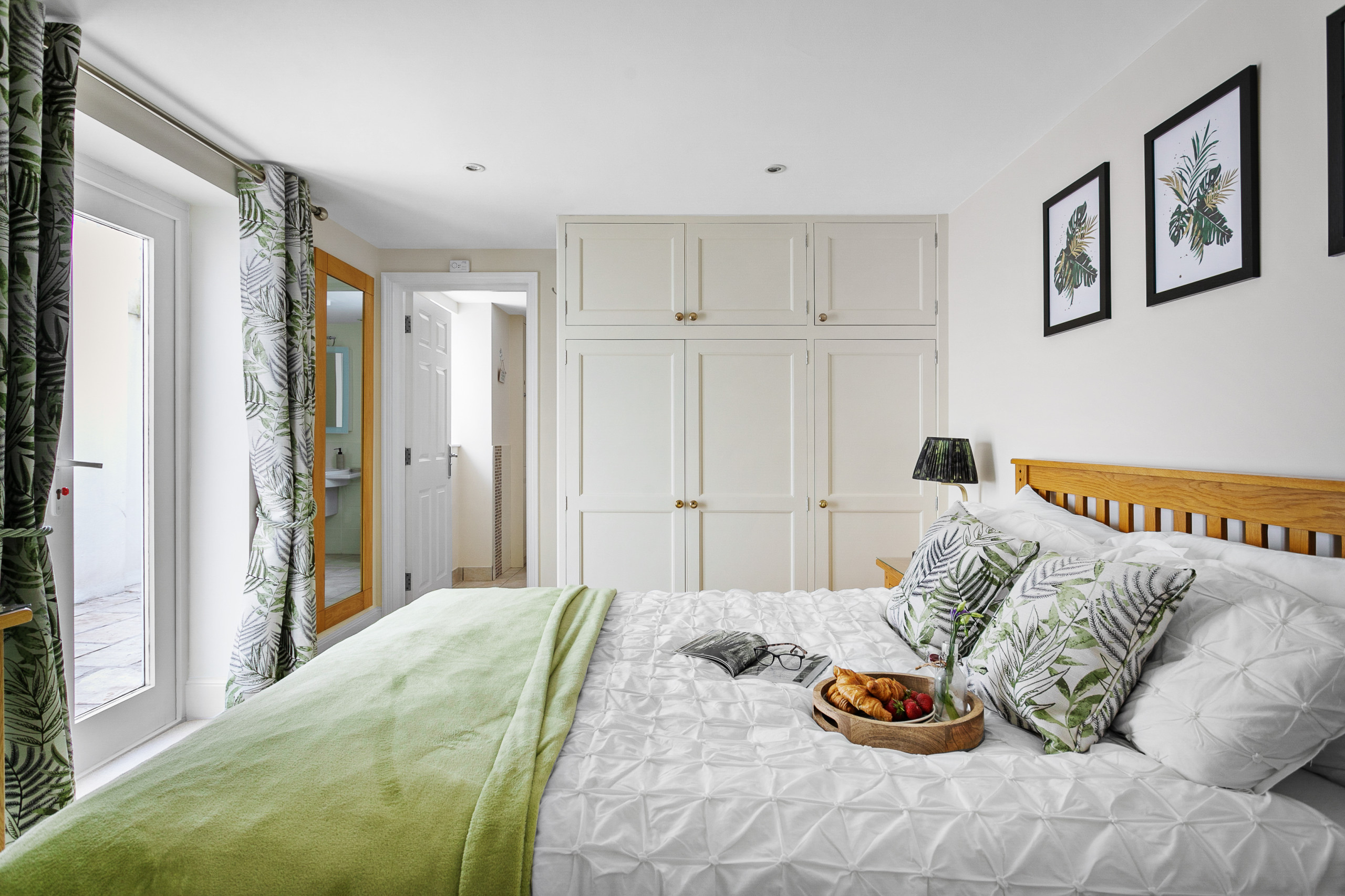 From this generous living space, enter the quirky hallway and into the first good-sized twin-bedroom. The beds are ‘zip and link’ and can be configured into a super king-sized bed, with ample space for a travel cot-bed. The master bedroom is wonderfully calming and quiet; with french doors that open out onto a completely enclosed inner yard, surrounded by high walls – ideal for children to play safely. For added comfort, this bedroom provides a beautifully appointed en-suite shower room. Both bedrooms have smart table lamps to charge your phone. There is a separate family bathroom down the hallway with a large bath and hand shower.