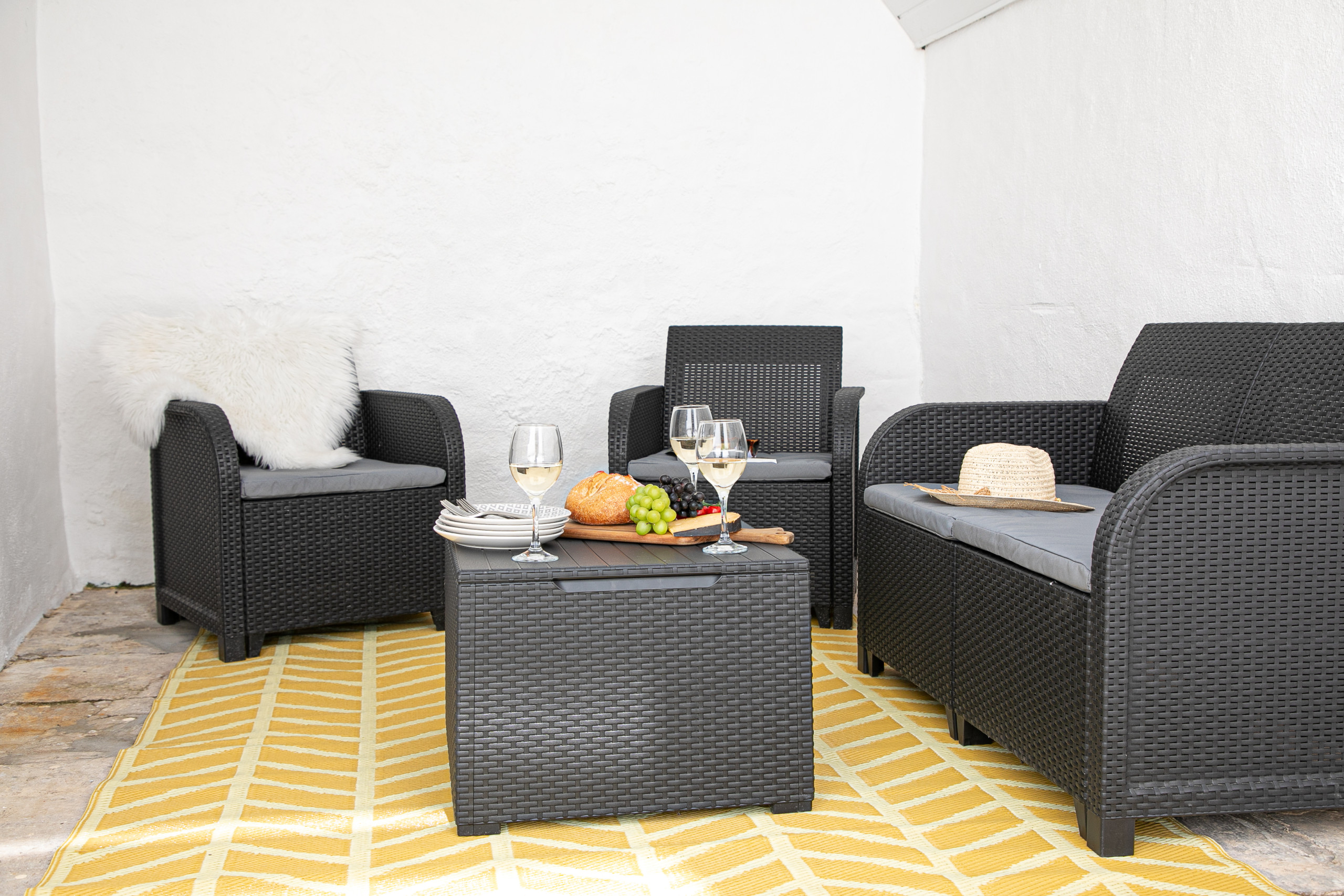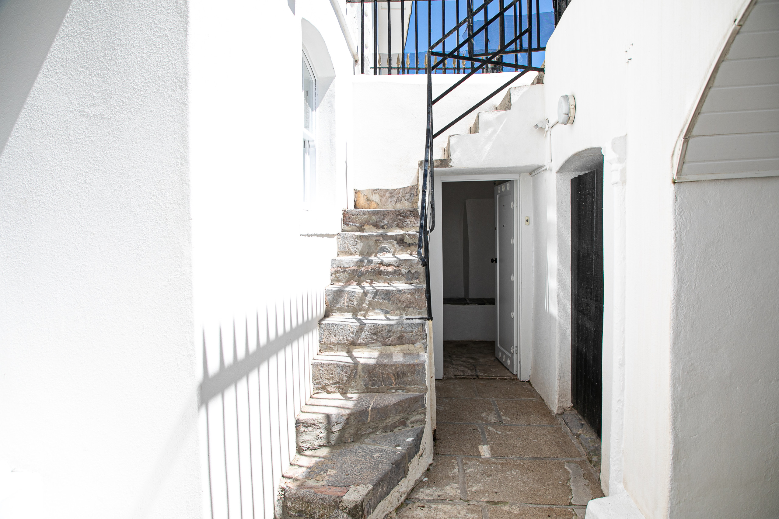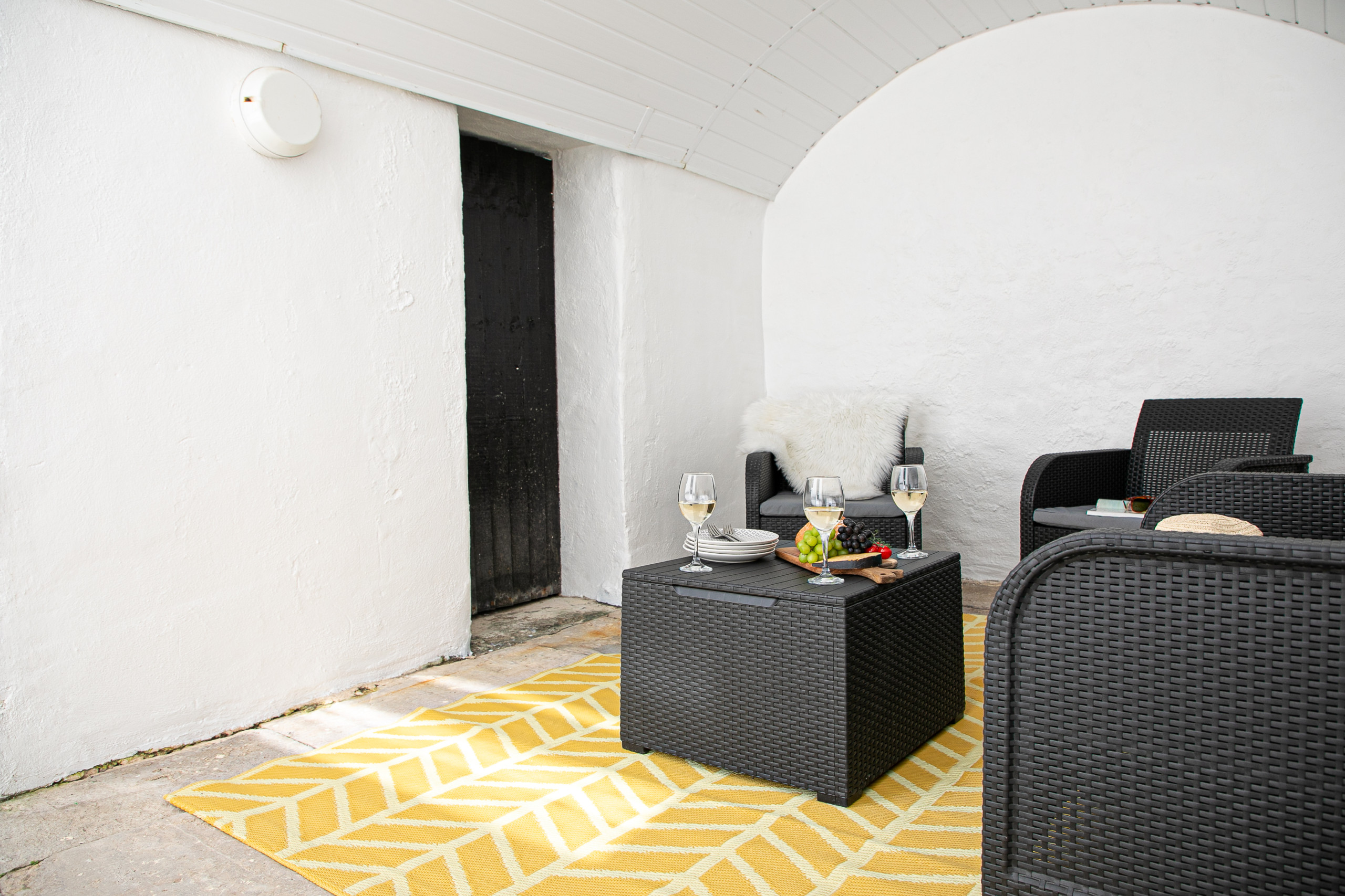 To the front of the building, as you descend the original steps from the pavement, there is a stylish comfortable private undercover patio seating area – the original coal store, sympathetically refurbished for modern-day enjoyment! It’s perfect for relaxing and cooling down after a day at the beach or playing board games when it’s raining.