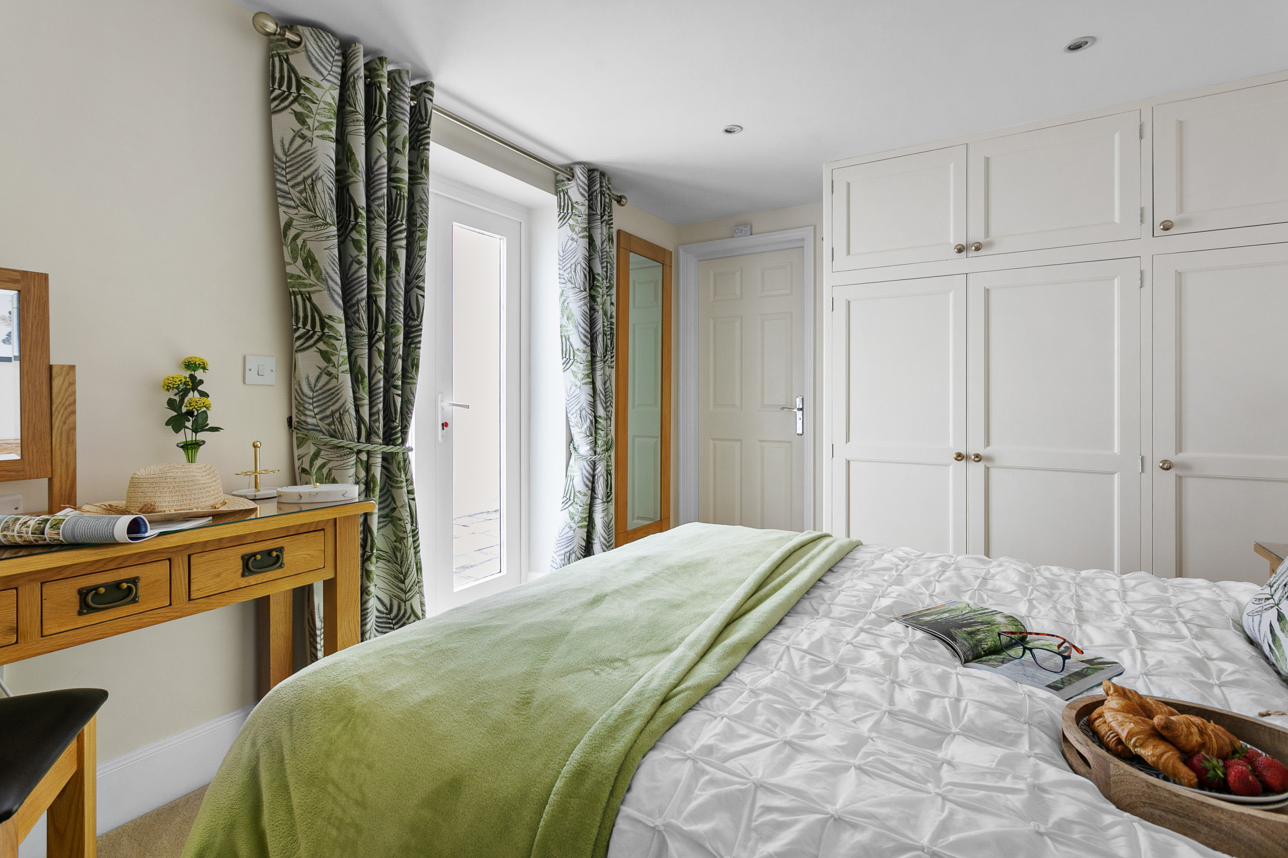 Two fabulously comfortable double bedrooms that would not look out of place in a high-end hotel will ensure you have a restful night’s sleep. Each has its own en suite bathroom with a walk-in shower, basin and WC. The Moorings is surely the most sophisticated place to spend a Devon staycation.