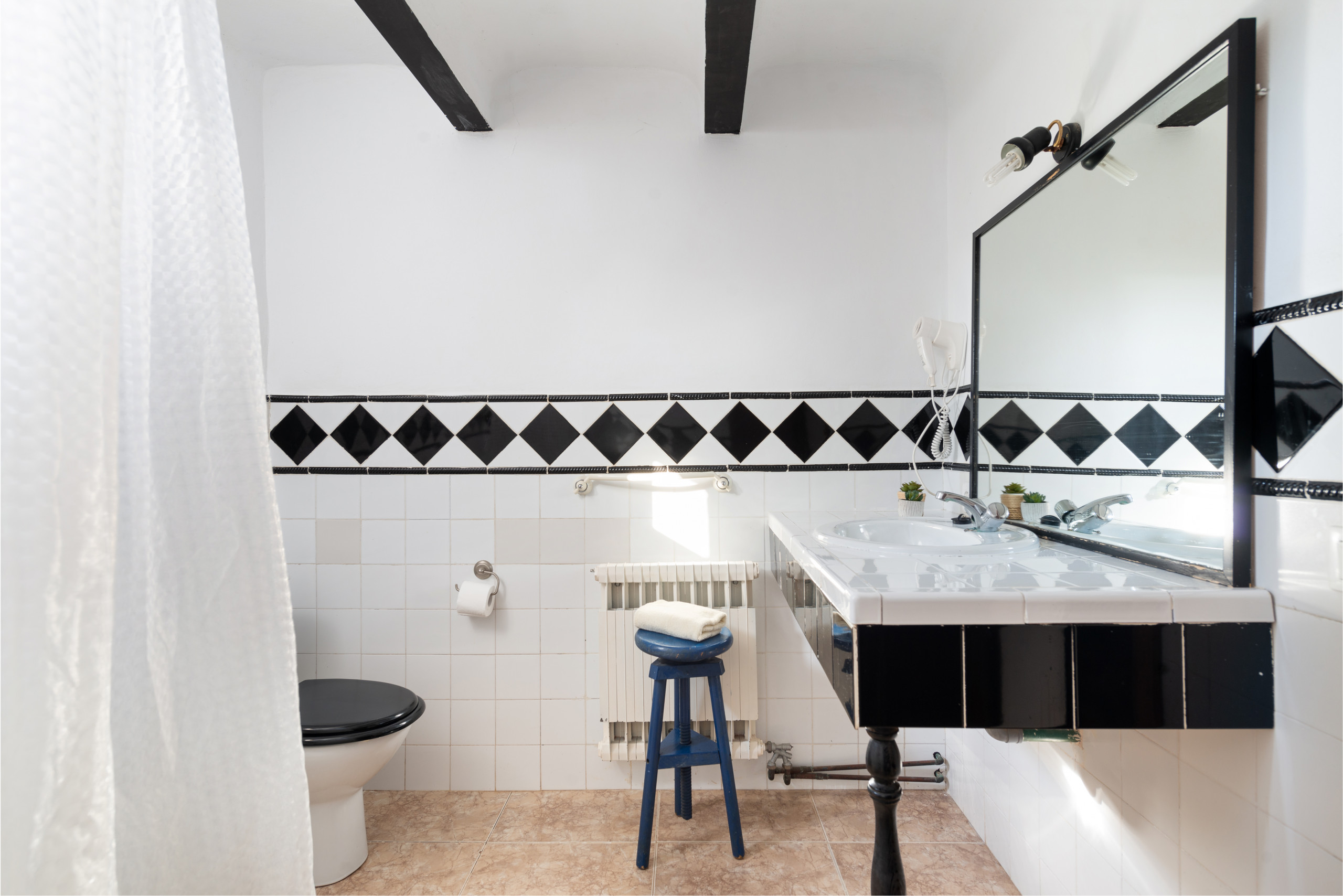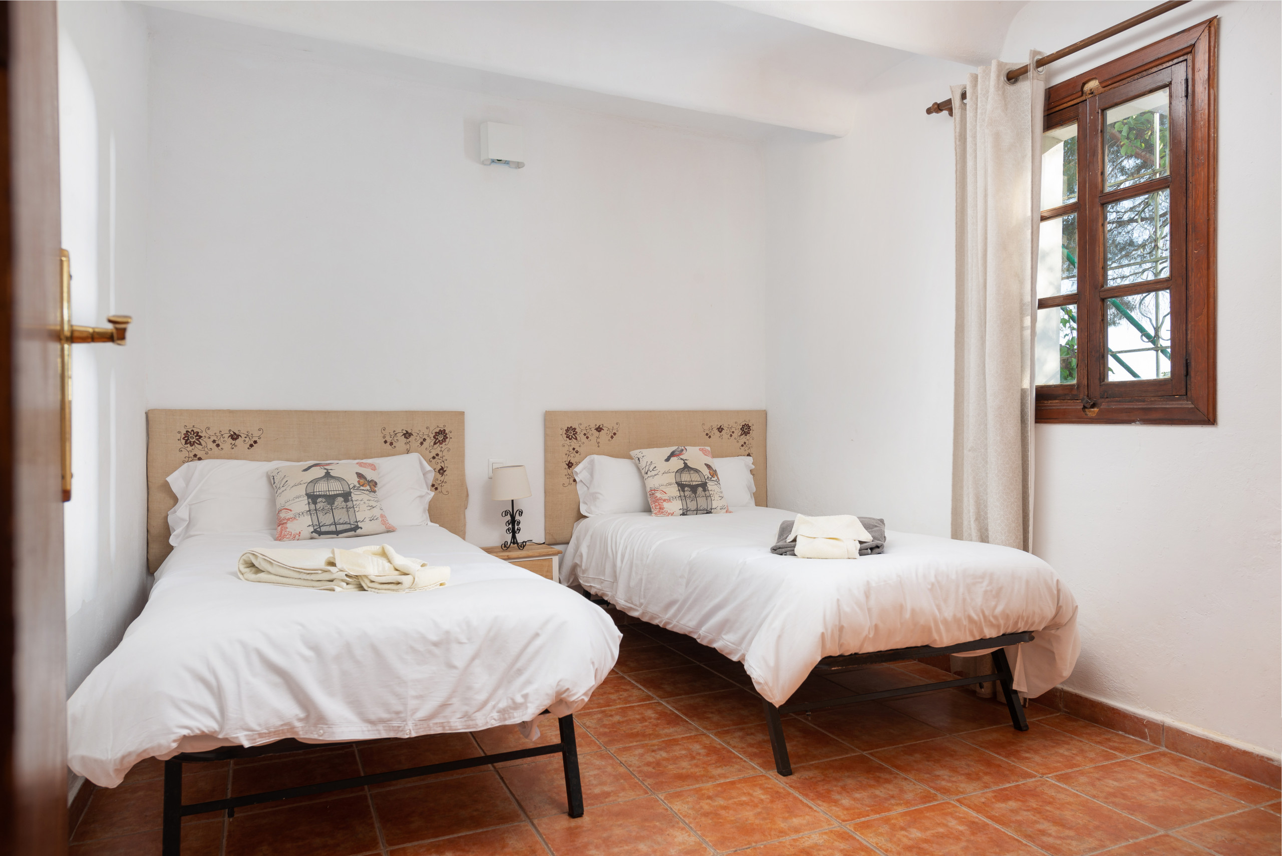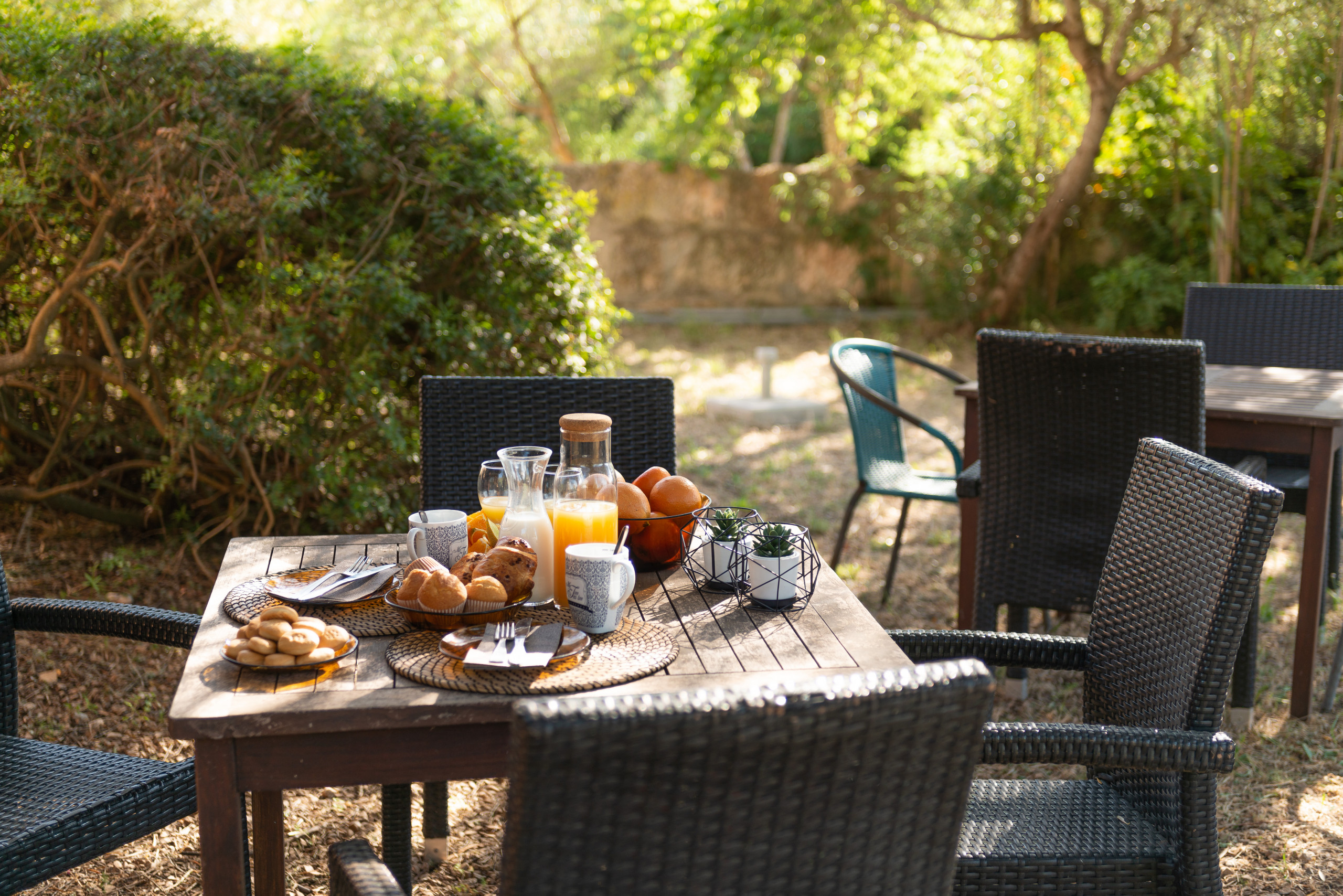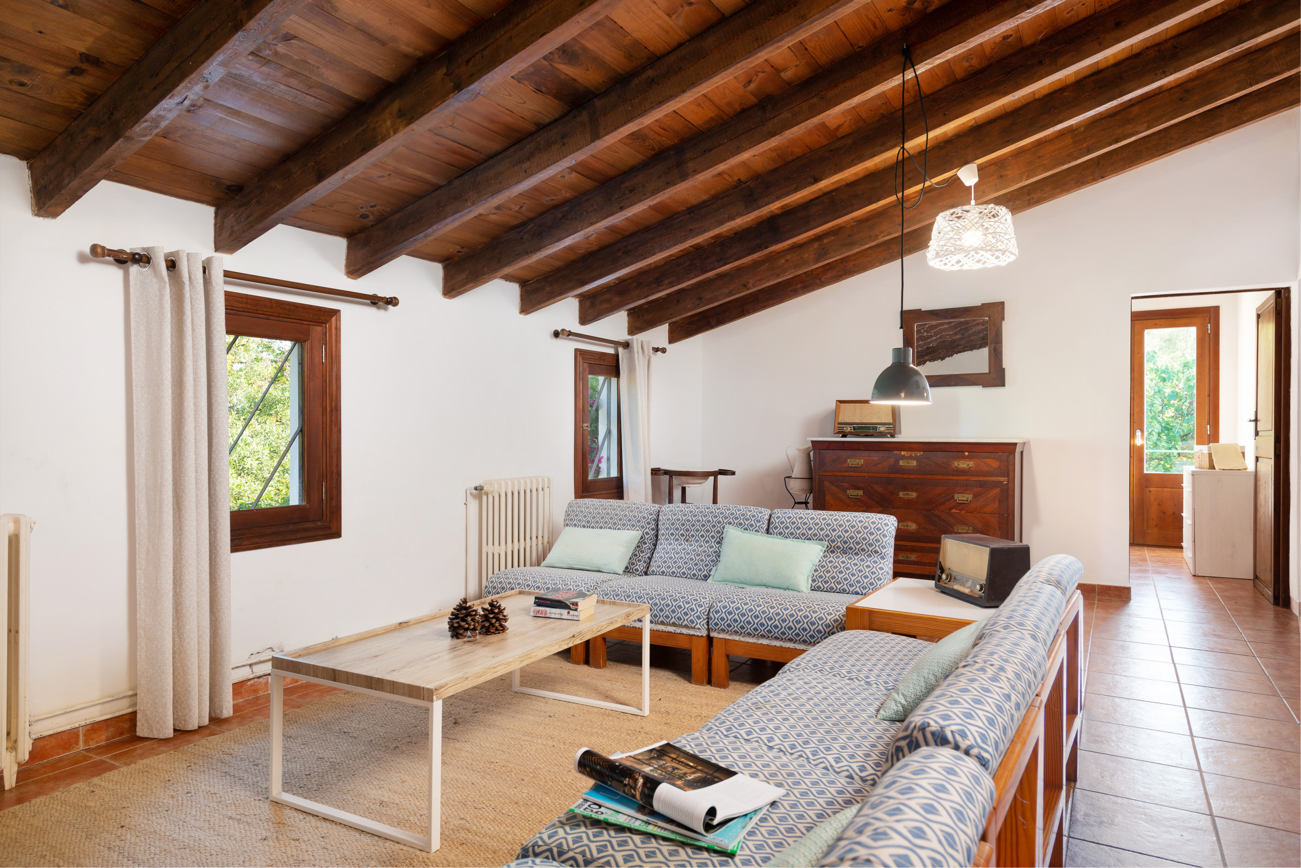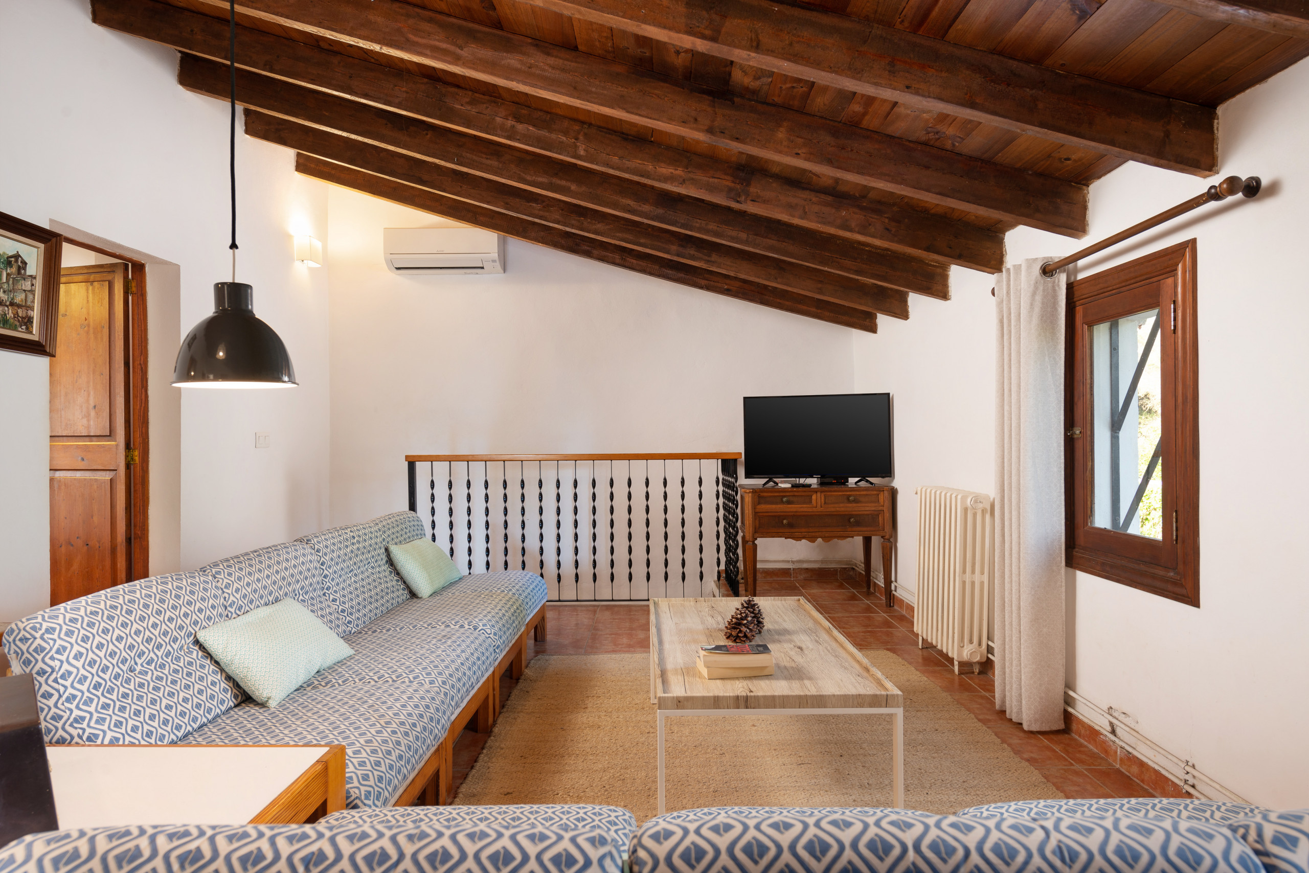 The old country house has been recently refurbished and transmits the Mediteranean athmosphere, surrounded by a garden, pergolas and a small forest of ancient holm oaks. The finca counts with a fantastic private pool with some sun loungers beside it, as well as a barbecue and an outdoor dining area. The house itself has 6 bedrooms (1 with a double bed and 5 with 2 single beds each), 3 bathrooms (2 with a bath tub and 1 with a shower), kitchen, dining room, air conditioning in the common spaces, a living room with satellite TV, free wifi, parking space, etc. The ideal location of Sunset Can Vey provides marvellous sunset views on the Serra de Tramuntana mountain range.
