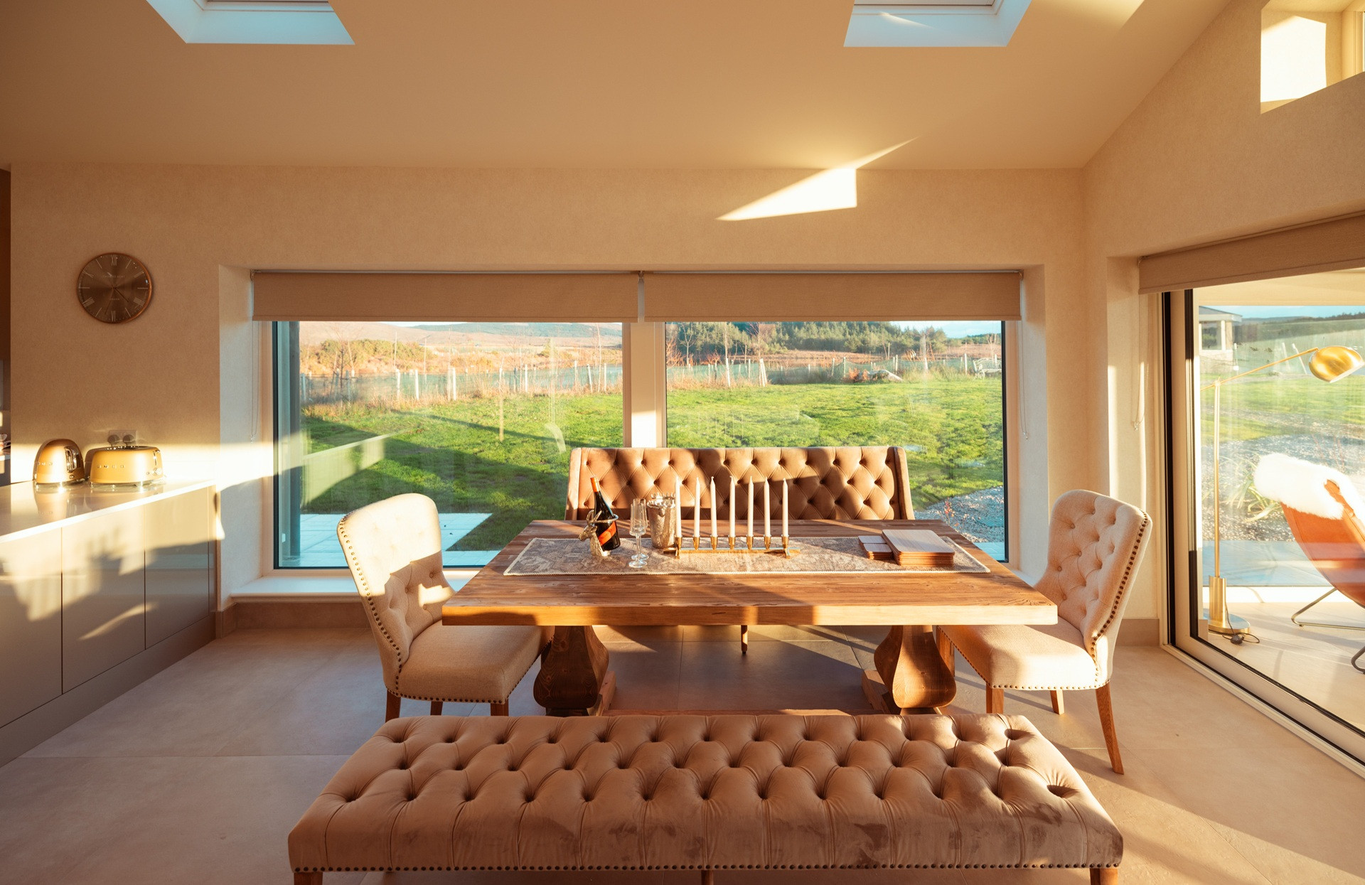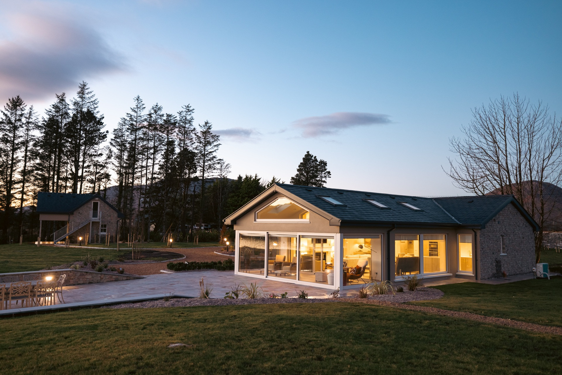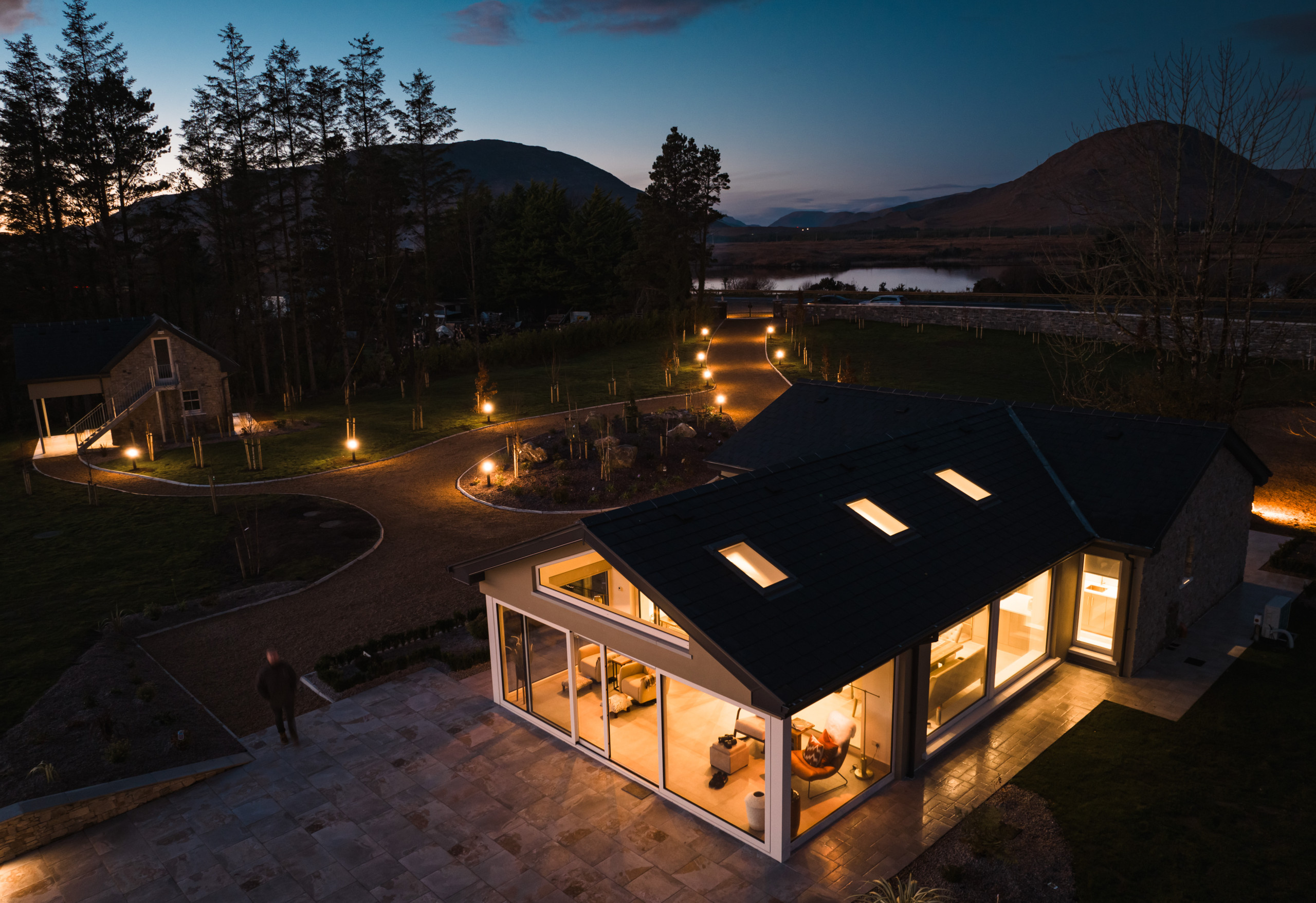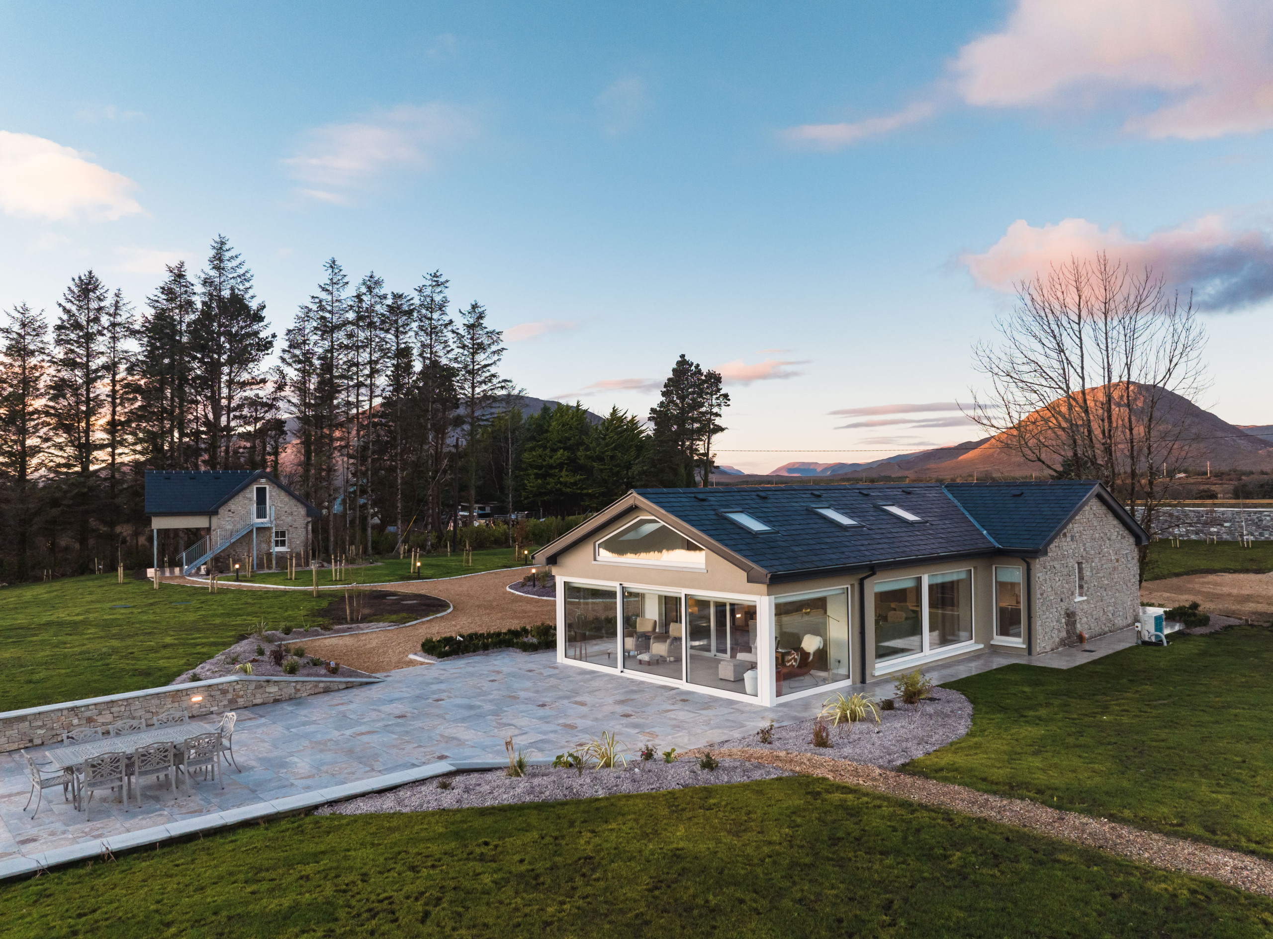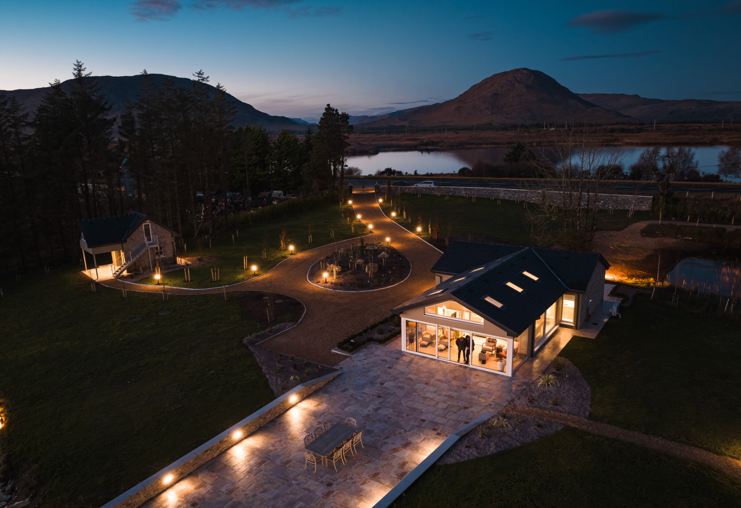Eagle Cottage stands as a testament to refined luxury nestled within the untouched beauty of Connemara. This exquisite main house, designed to accommodate up to 8 guests, features four king-sized beds in bedrooms that all boast stunning lakeside views, ensuring every morning awakens you to the serene beauty of nature. The interior speaks volumes of elegance and comfort, with each room finished to the highest standards, promising an unparalleled stay. The attention to detail is evident in the modern conveniences provided, from state-of-the-art Smeg appliances that make the kitchen a gourmet's delight, to the indulgence of an electric fire and underfloor heating that adds a cozy warmth throughout the house. The living experience at Eagle Cottage is further enhanced by the inclusion of luxury amenities tailored to each guest's comfort. Enjoy the convenience of a high-end coffee machine for those peaceful mornings, free Wi-Fi to keep you connected to the world, and the unique feature of individually controlled temperature channels in every room, allowing for personalized comfort. The property's commitment to excellence is clear in every aspect, from the practicality of new appliances to the aesthetic pleasure of its design, making it not just a place to stay, but a retreat to remember. Eagle Cottage invites you to immerse yourself in an environment where luxury and tranquility coexist, set against the backdrop of Connemara's breathtaking landscapes.