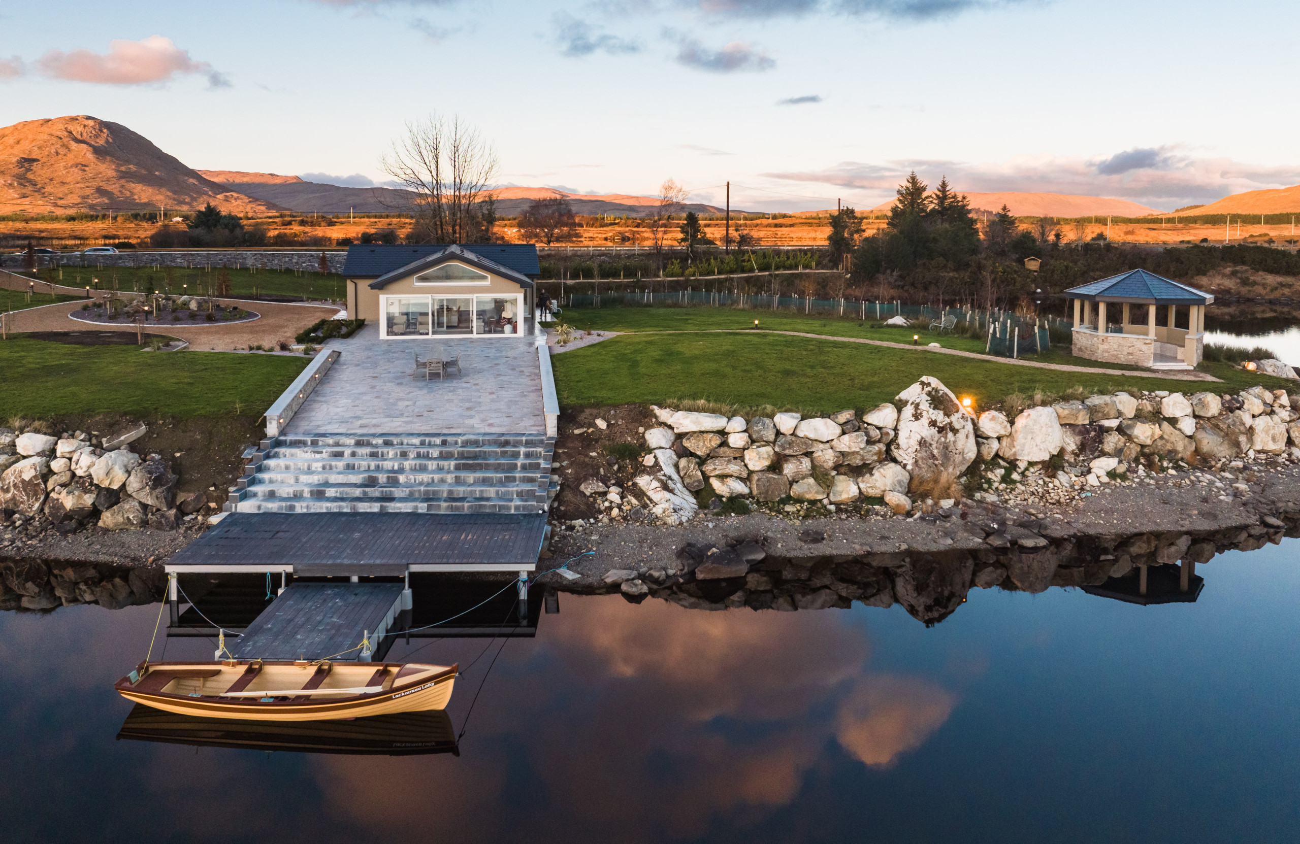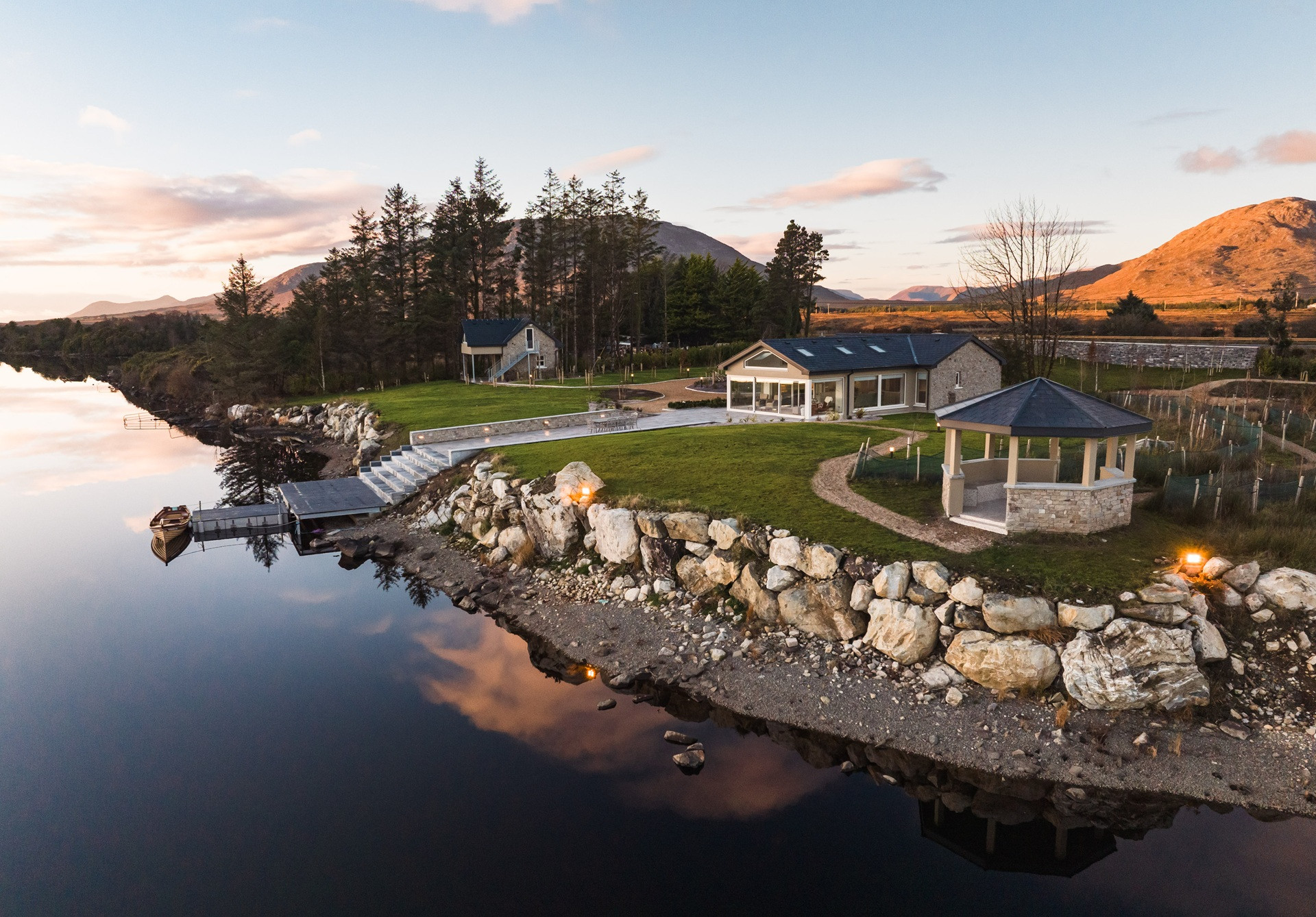 This distinct building, set a stone's throw from the main house, provides an intimate escape, designed to immerse guests in the calm and beauty of lakeside living. With its picturesque setting and thoughtfully appointed amenities, the Boat House promises a stay that's as serene as it is memorable. The charm of the Boat House is not just in its luxurious amenities but also in its ability to provide a deeply personal and intimate experience of Connemara's natural beauty. Each morning, guests are greeted by the gentle sounds of the lake and the soft light filtering through the windows, promising a day of peace and relaxation. Whether it's enjoying a quiet moment on the private deck or exploring the surrounding waters with direct lake access, the Boat House offers a unique opportunity to engage with the environment in a way that's both grounding and exhilarating. Finished to the highest standards and with an eye for detail that ensures a stay beyond compare, the Boat House at Eagle Cottage is your secluded haven within the wilds of Connemara.