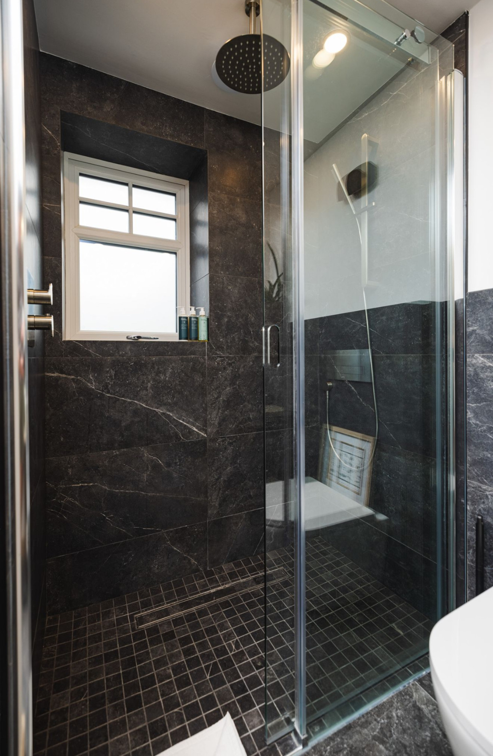 All 3 bedrooms are upstairs. The en-suite Master bedroom is street facing with sash windows and sloped ceilings. The second bedroom is street facing with sloped ceilings and sash windows and has a built in bunk bed above the King Size bed to facilitate an additional guest. The bathroom for this bedroom is across the landing.