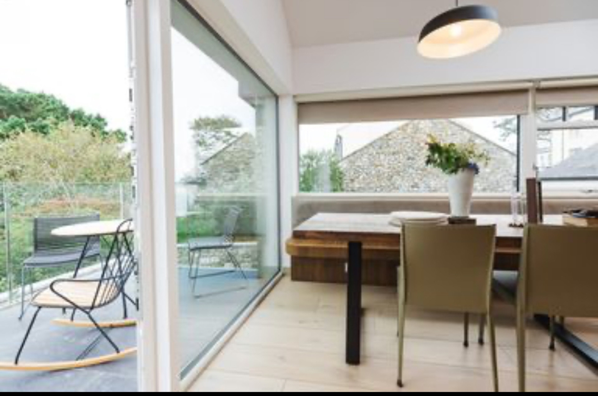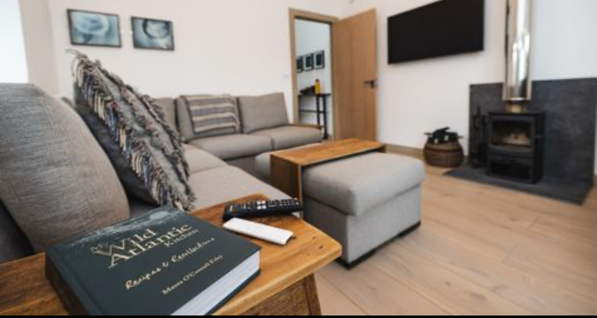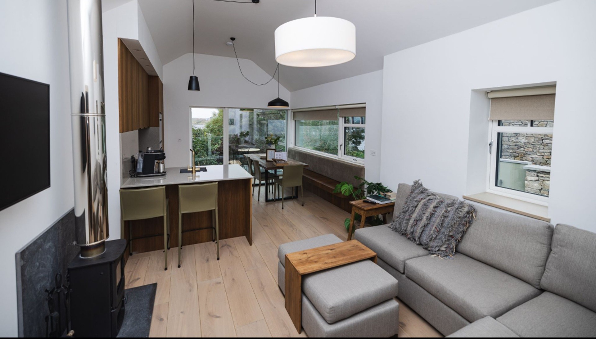 Sea Luxury Cottage is a stand-alone house with its own private courtyard and first floor terrace with stunning views. It has a large first floor sitting room and kitchen with wood burning stove, and private outdoor terrace off the kitchen area.