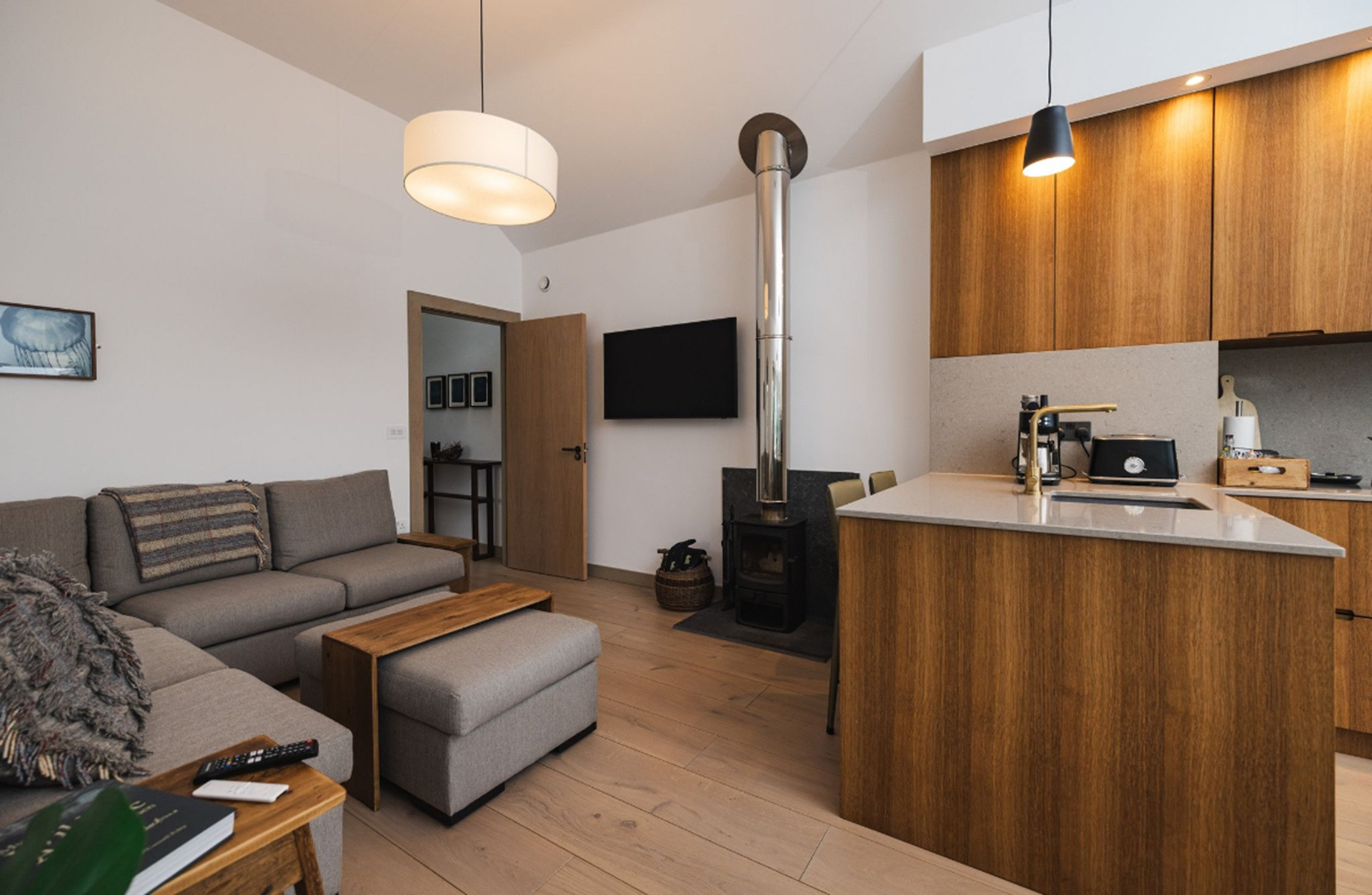 Lichen luxury cottage has a large ground floor sitting room on street level with wood burning stove, and small private outdoor space to the rear off the kitchen and dining area. It has no direct access to the common garden area from the house but the garden can be accessed through the main entrance and is available for all guests to use.