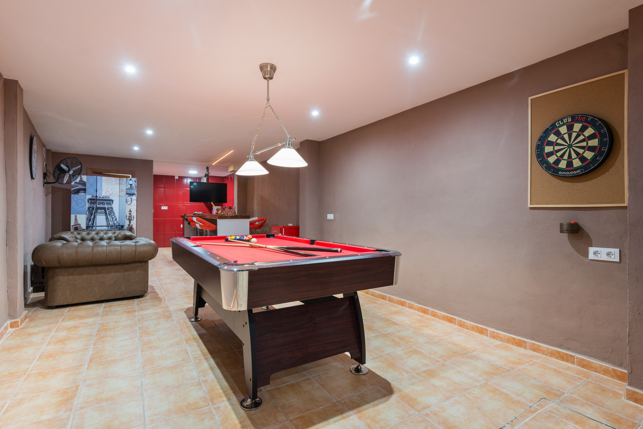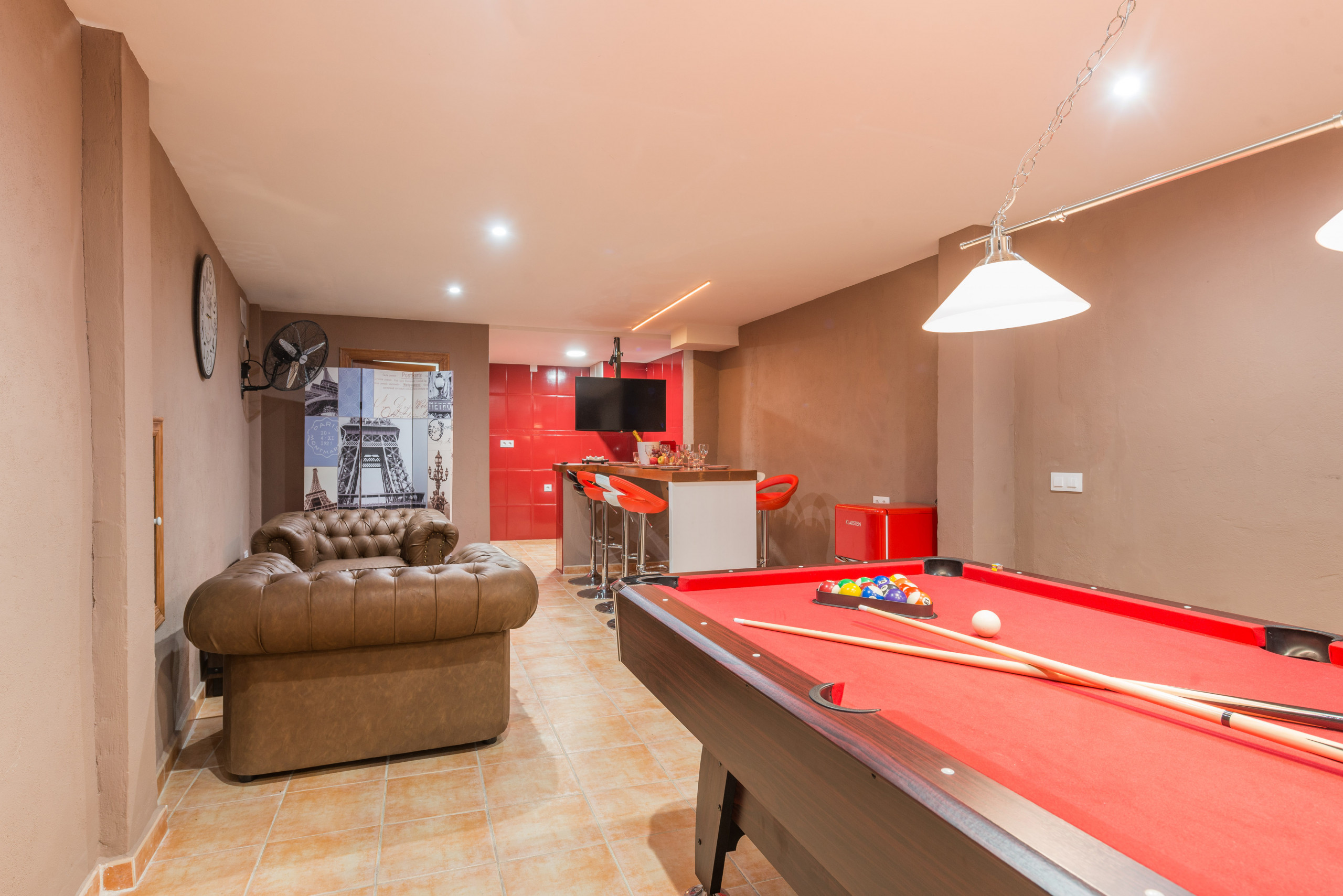 This charming village house, located in the medieval centre of Alcudia, has three bedrooms, three bathrooms, a living room and kitchen distributed across several floors, and a roof terrace with views of the town, but what really makes this house special is the games room on the ground floor with a billiards table, darts, bar, kitchen, sofas and space to store bicycles, perfect for enjoying with family and friends!