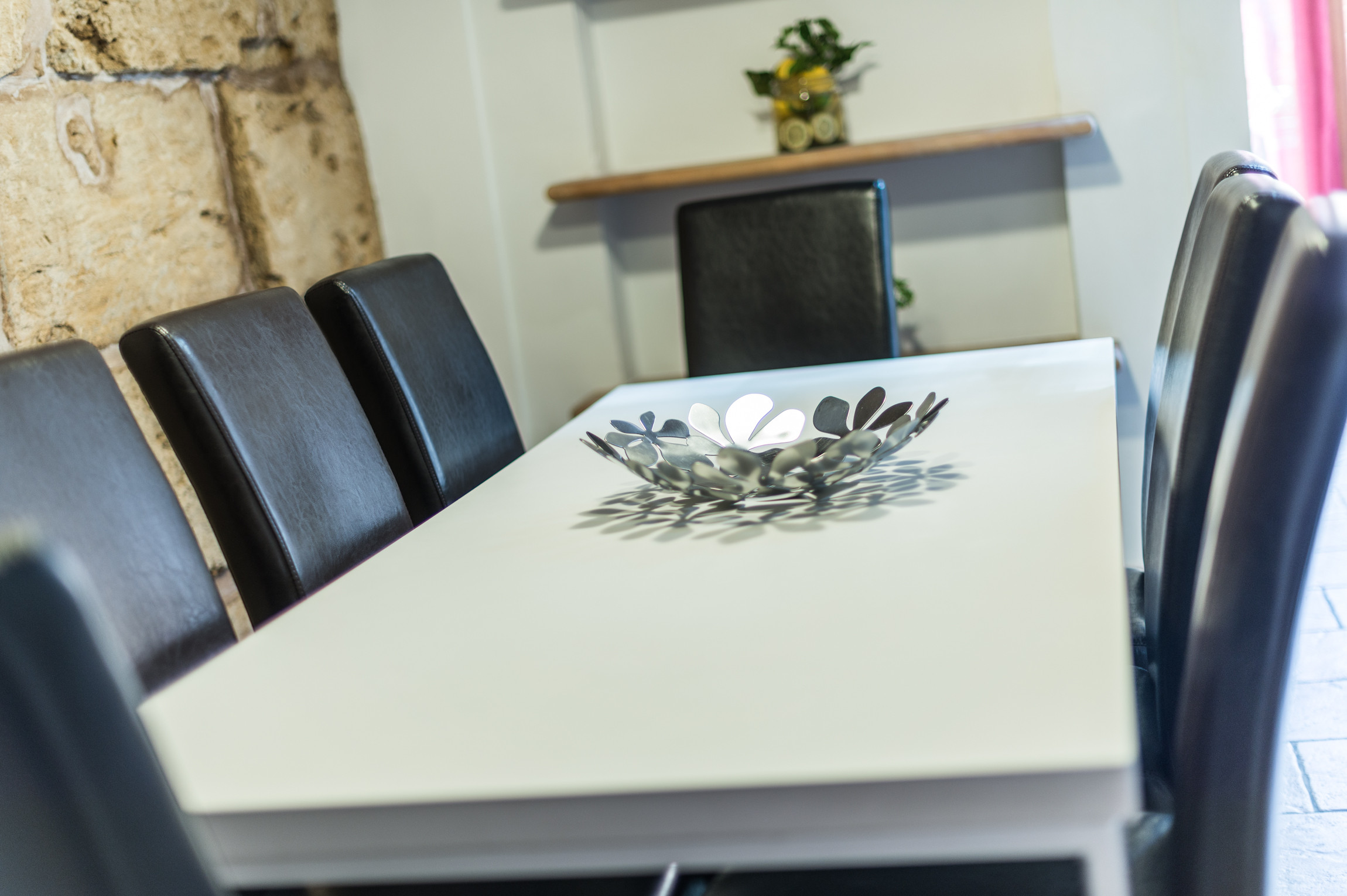 On the ground floor there is a cosy living room and a large kitchen and dining room with access to the patio where we will find a outside dining area and a beautiful pool where we can enjoy the sun during the day.