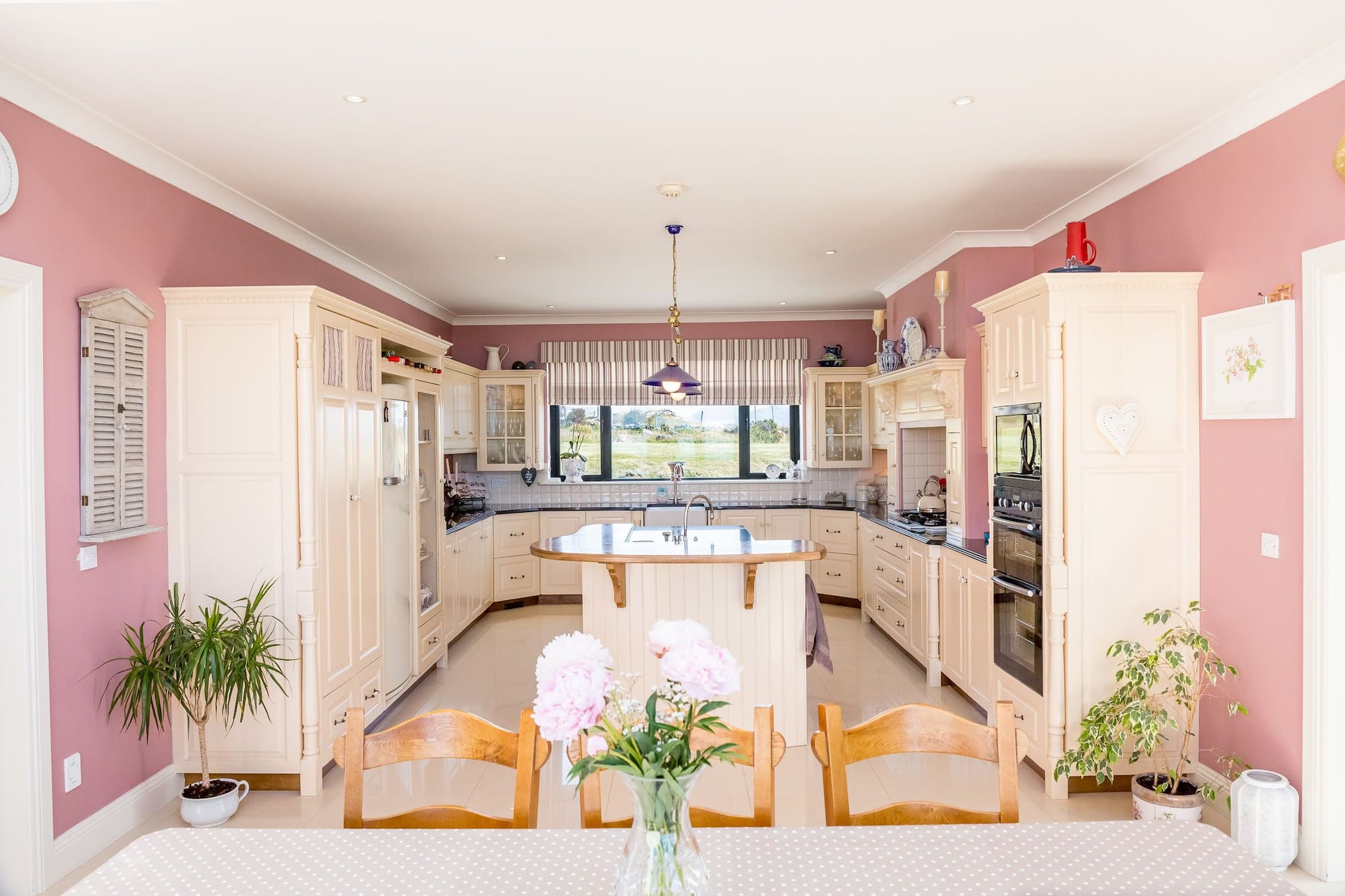 Upon entering the kitchen and dining area you are immediately struck by the spaciousness, high ceilings, natural light and stunning view from the floor to ceiling windows overlooking the Ocean. The kitchen is a gourmets delight as it has everything one might need to cook that perfect meal, fully intergrated, double electric oven, microwave, dishwasher, gas 5 ring hob, large fridge (with freezer box), coffee machine, everything from food processors, to bread making machines to nutri bullet to poaching pans. The dining table seats upto 8 people (extra chairs if required), double doors leading out onto the large patio area.