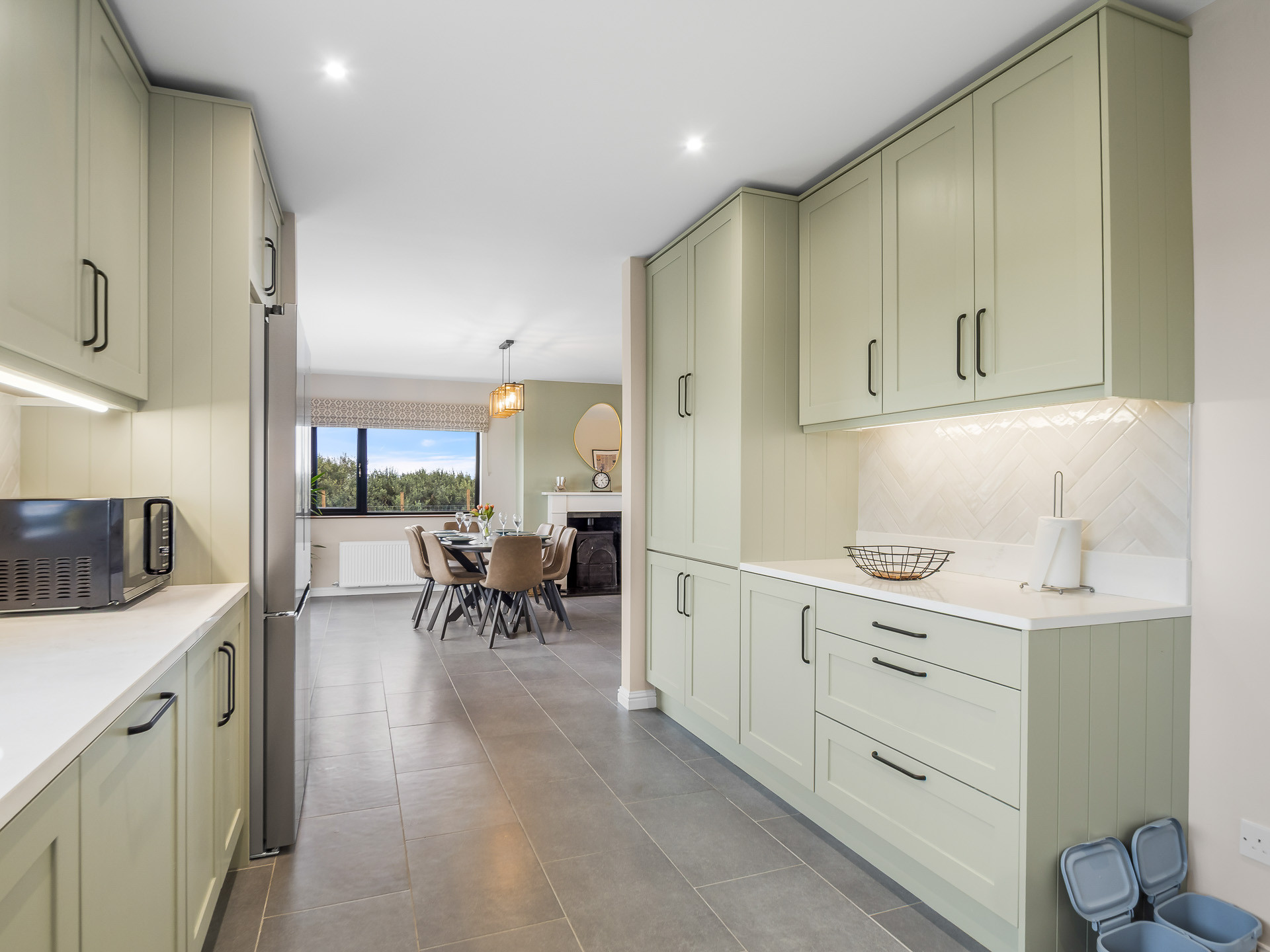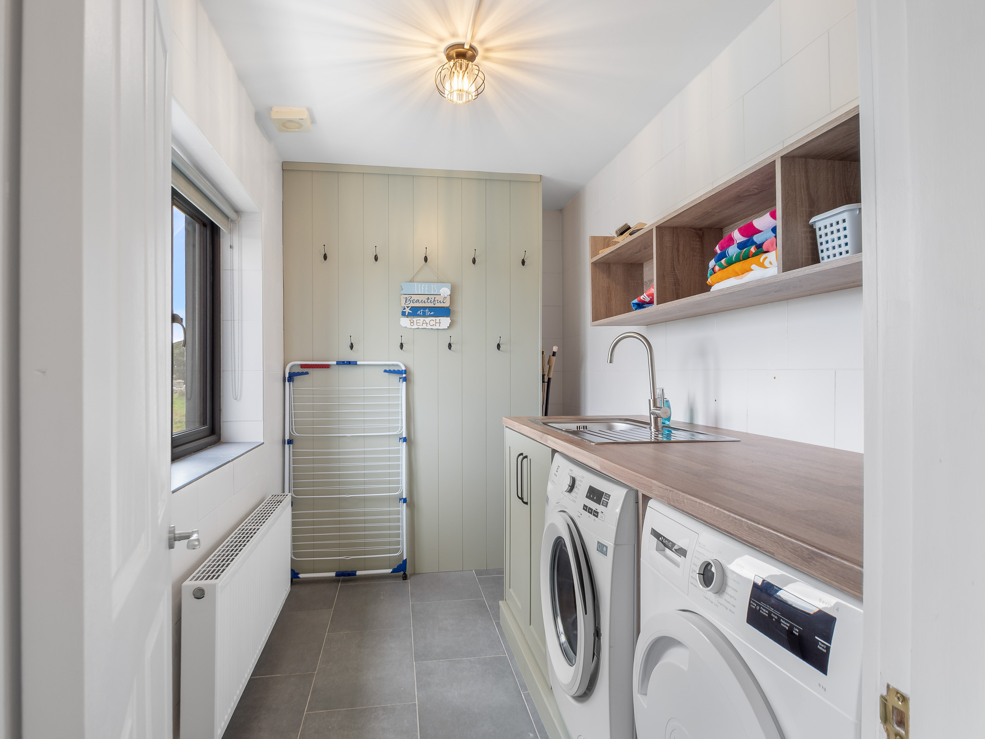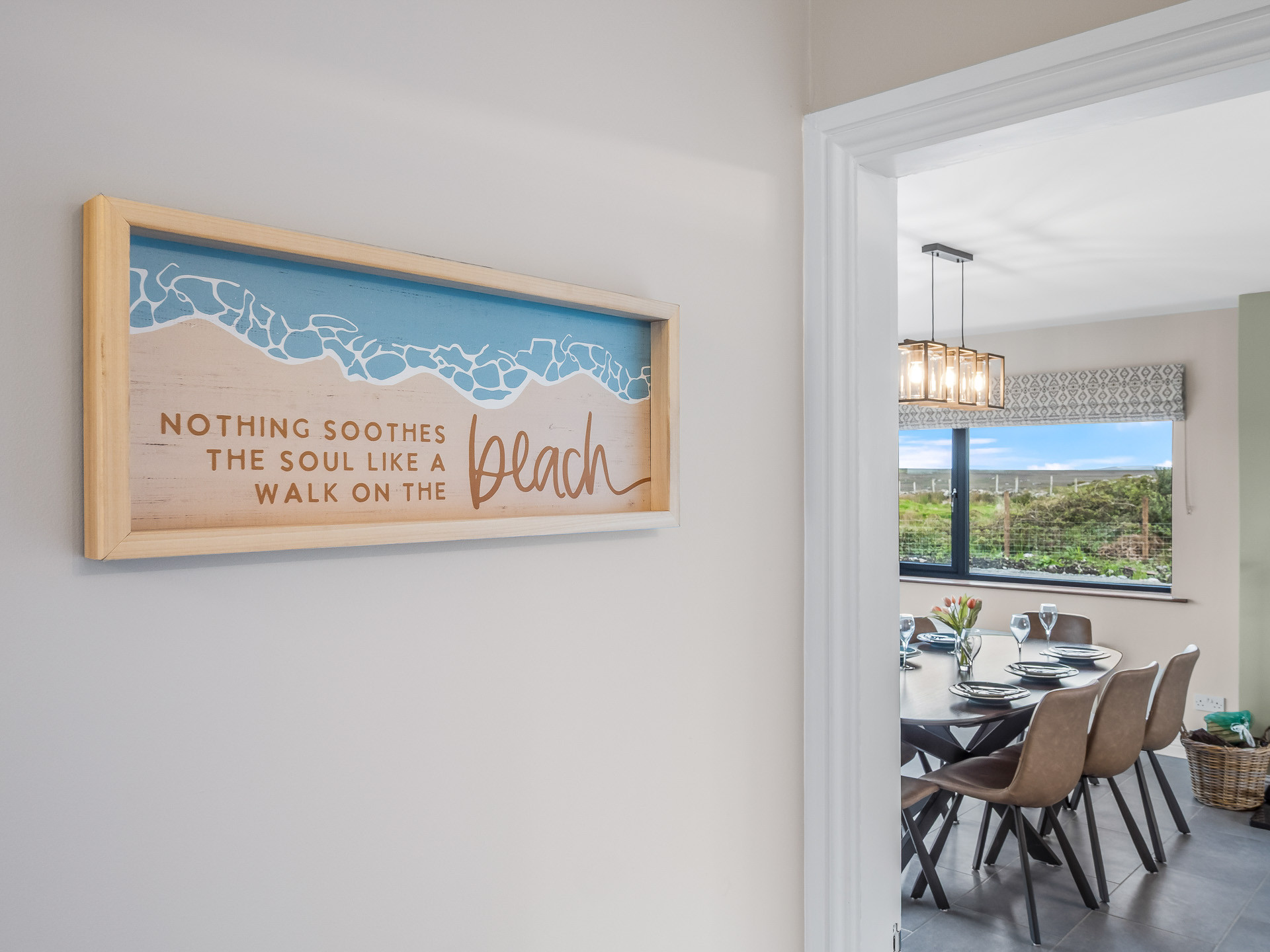 As the day begins, the Connemara landscape greets you: shifting skies, tranquil waters, and a horizon that seems endless. Afternoons might be spent walking the sandy shores of nearby Mannin Bay, cycling along quiet country lanes, or simply watching the light sweep across the mountains from the comfort of the open-plan living area. As evening draws in, gather around the dining table with family and friends, share stories, and let the peace of the place sink in.